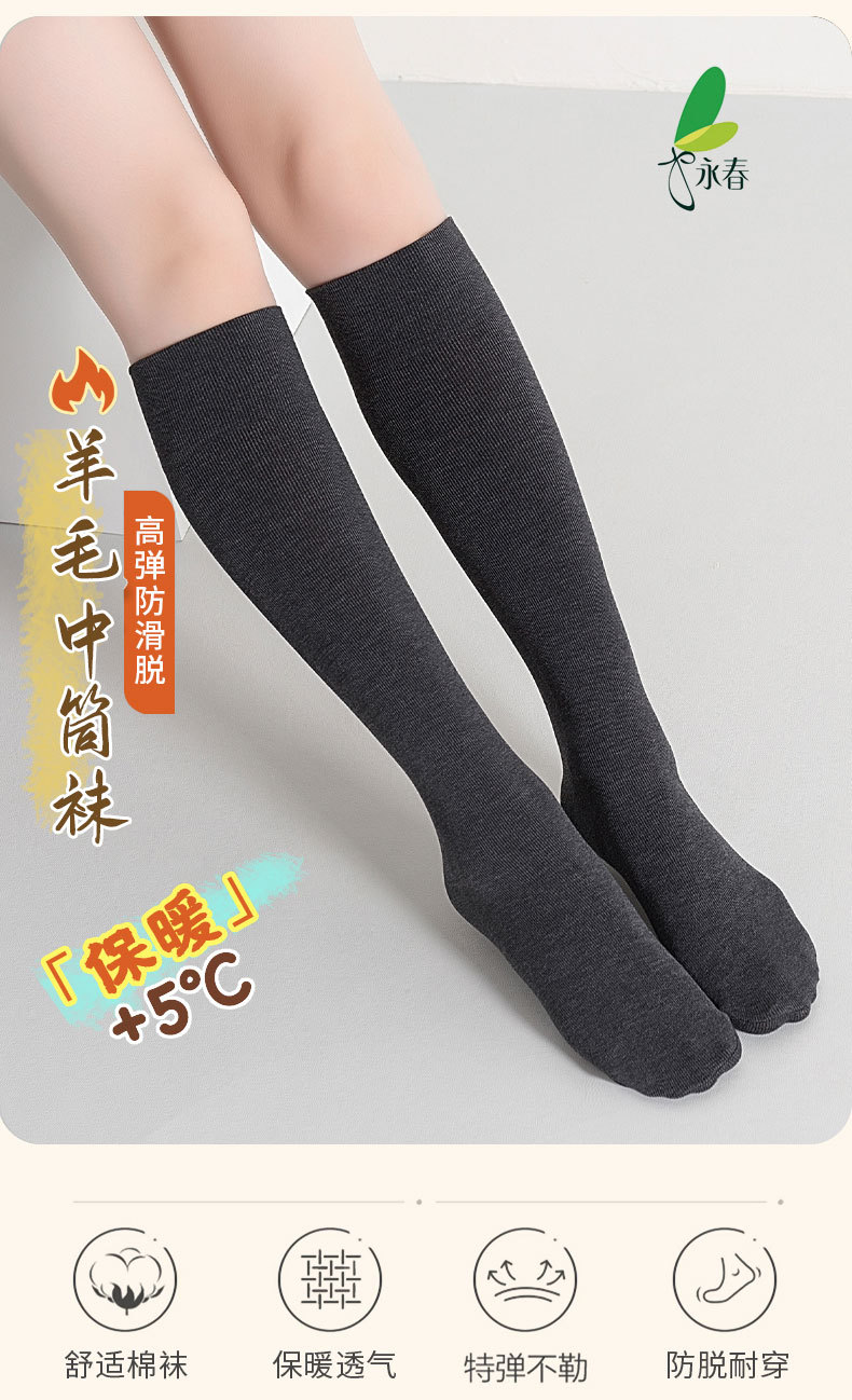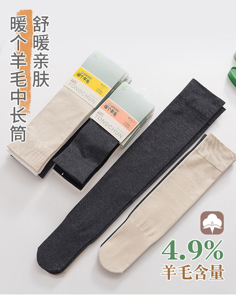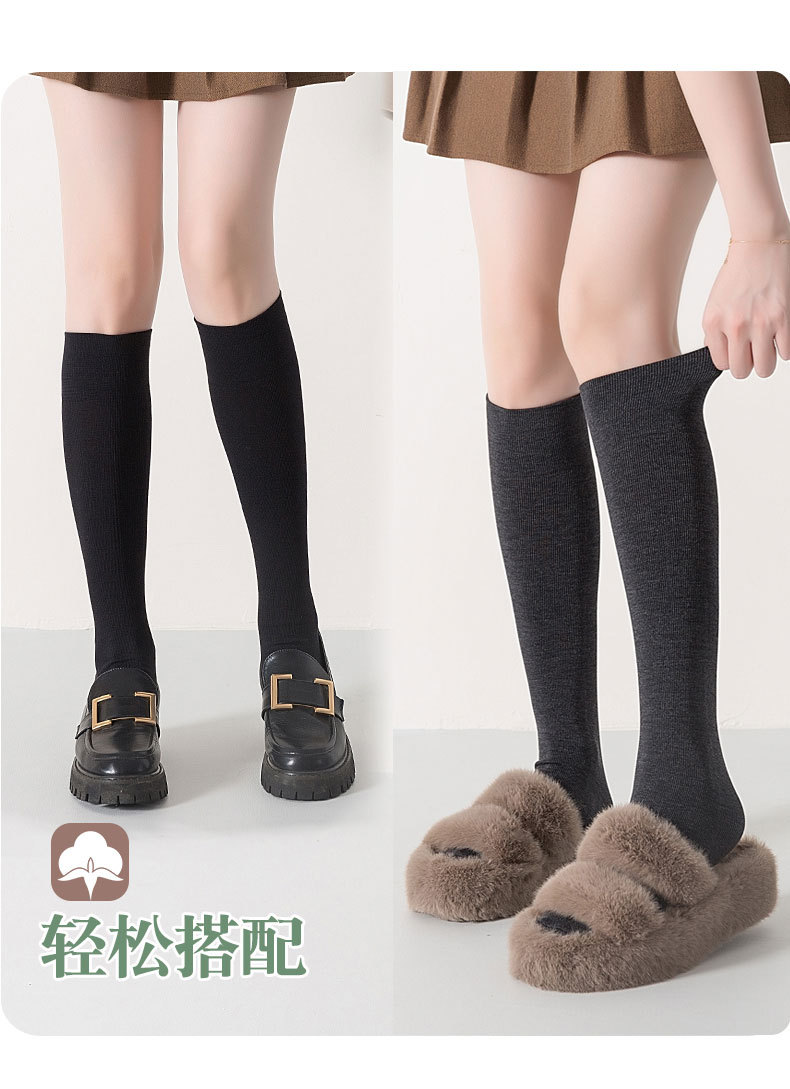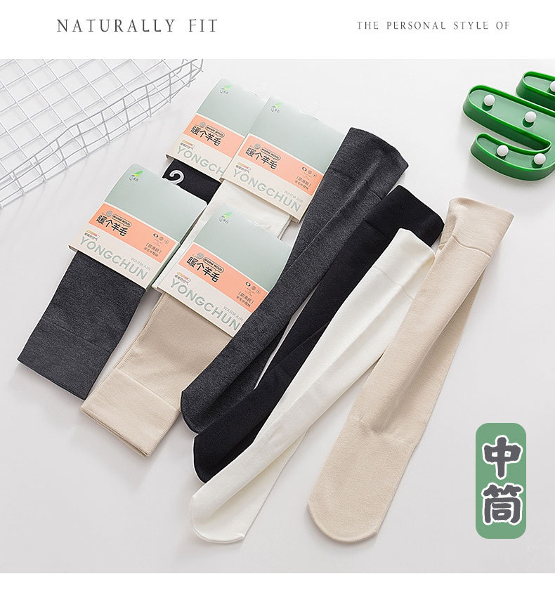 용춘 3532 양말 여성용 양모 무릎 양말 봄과 가을 JK 송아지 양말 흑백 단색 따뜻한 스타킹 튜브 양말스토어 가기