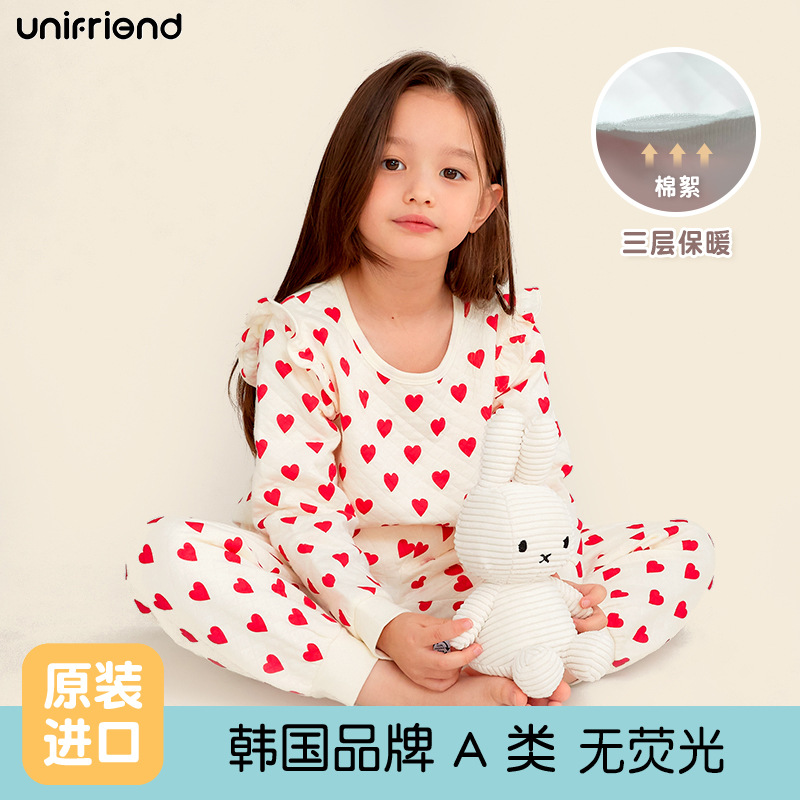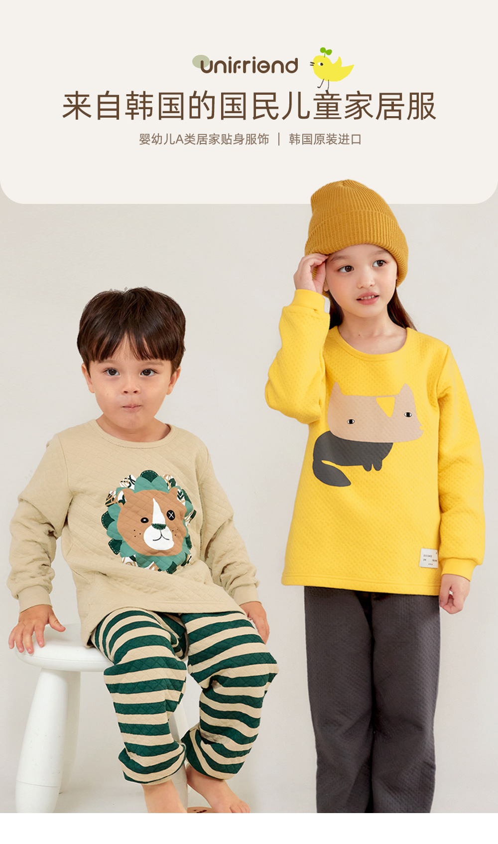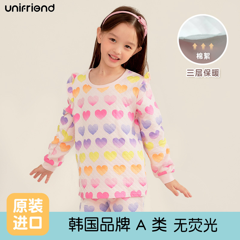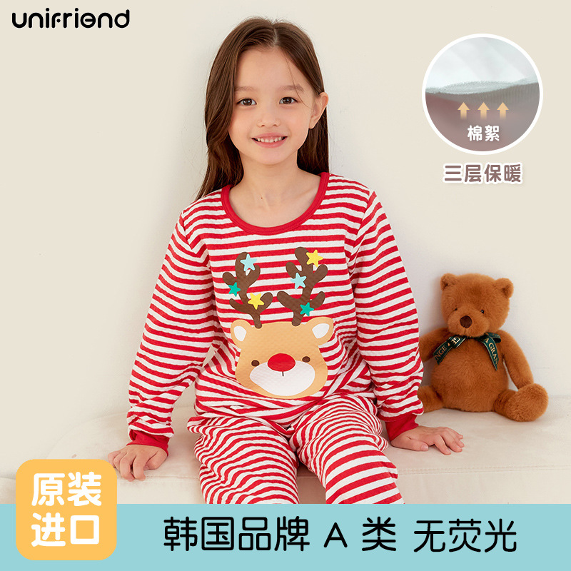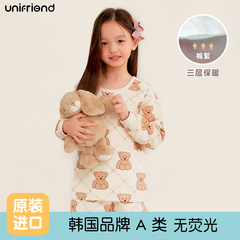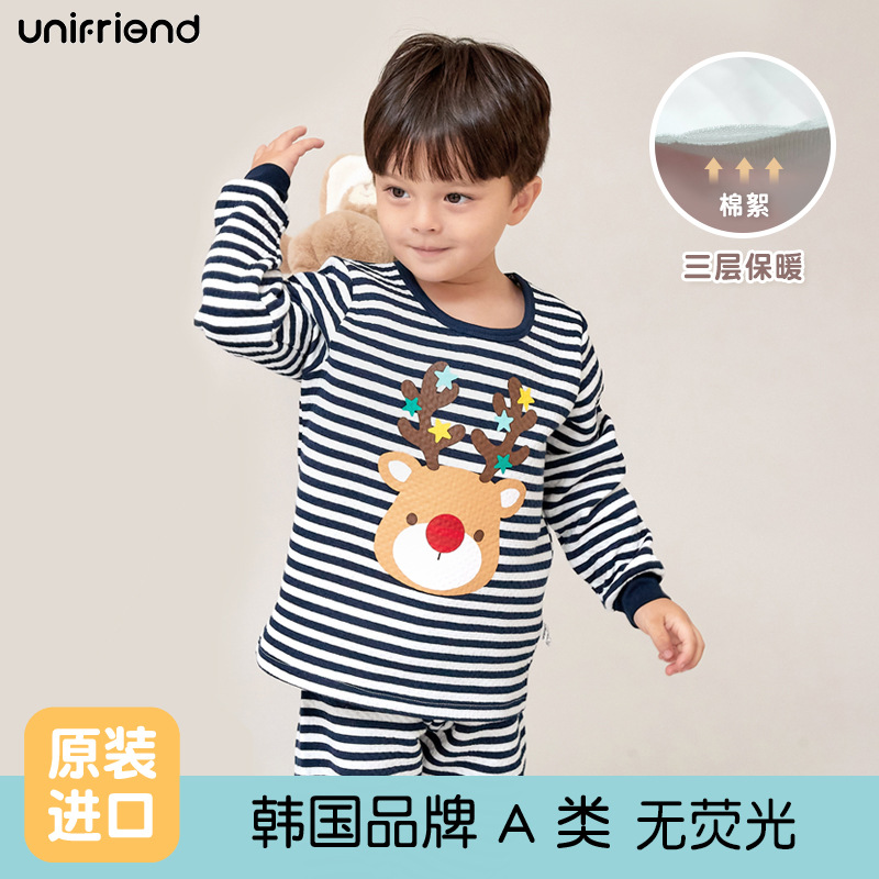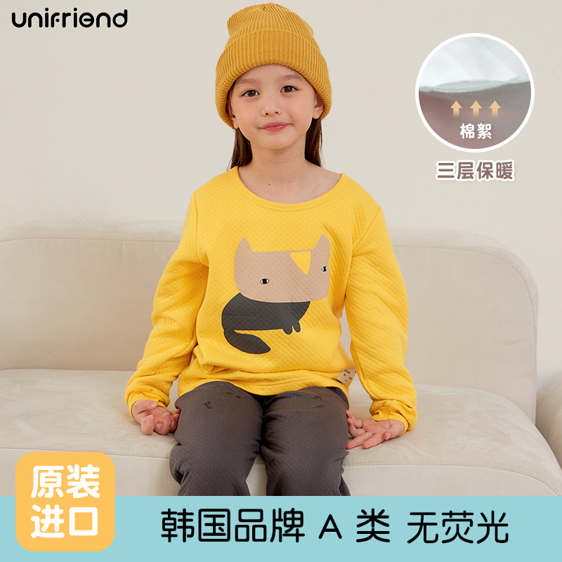 유니프렌드 아동 속옷 3 층 따뜻한 세트 소년 가정복 아기의 따뜻한 여아 가을 옷과 바지스토어 가기