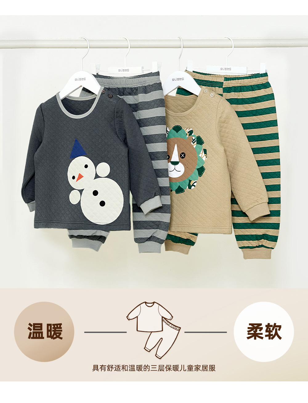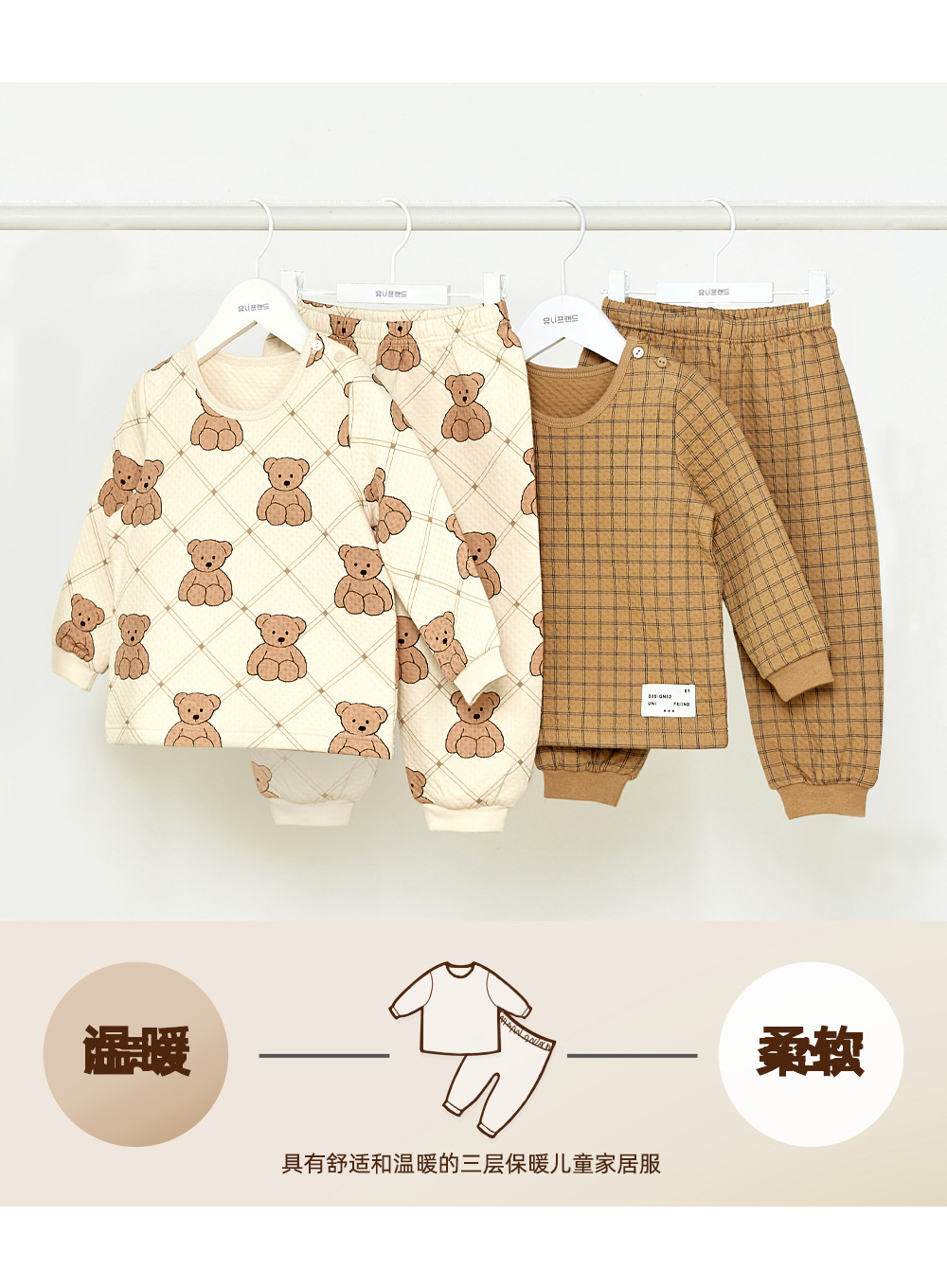 유니프렌드 아동 속옷 3 층 따뜻한 세트 소년 가정복 아기의 따뜻한 여아 가을 옷과 바지
