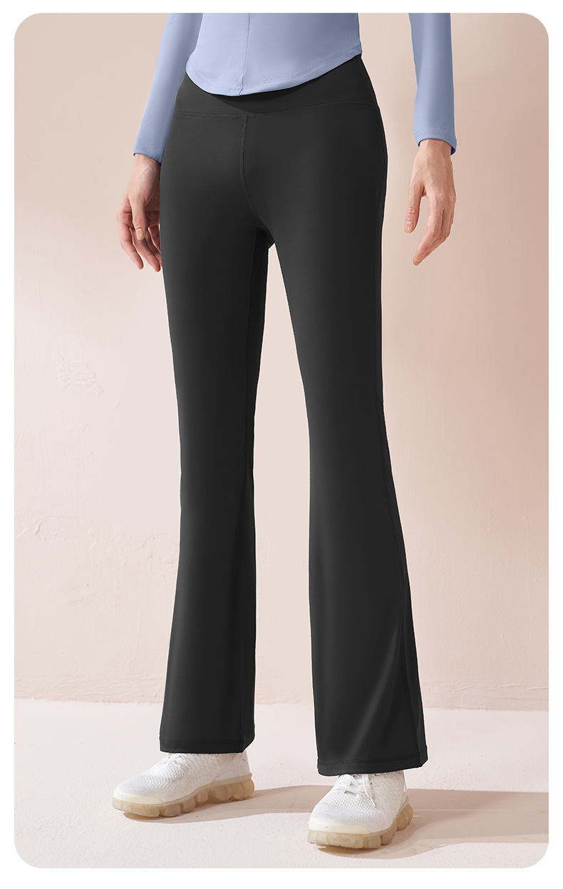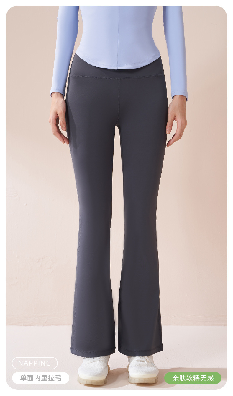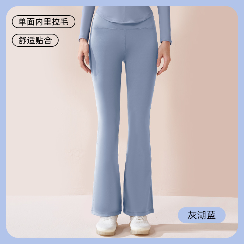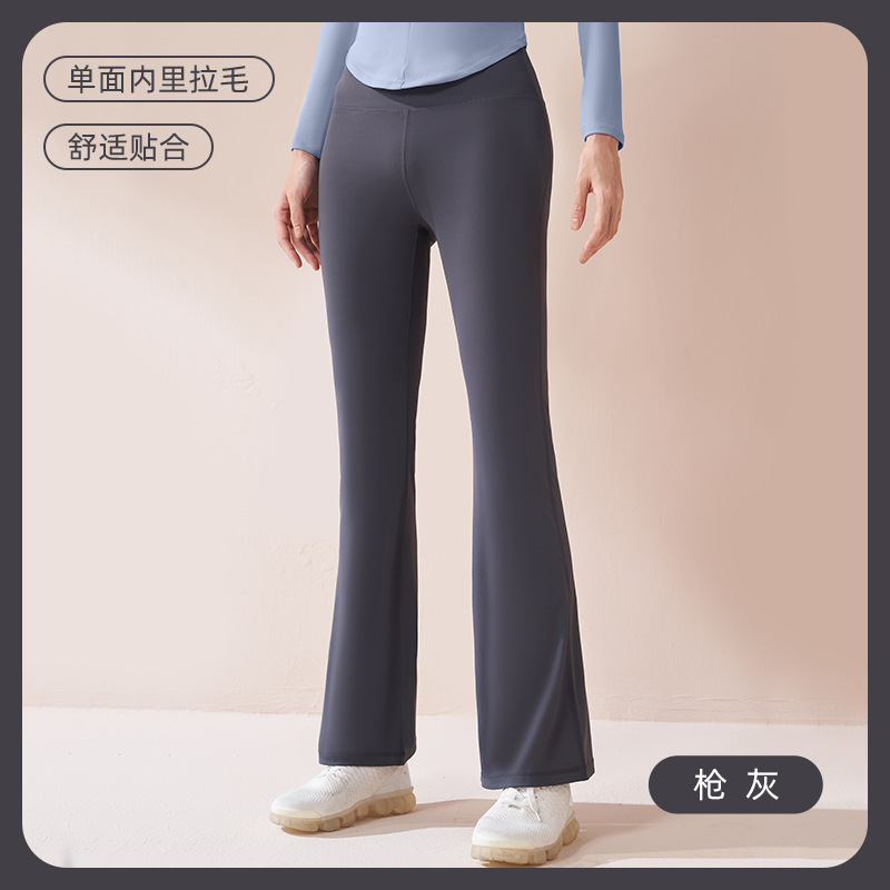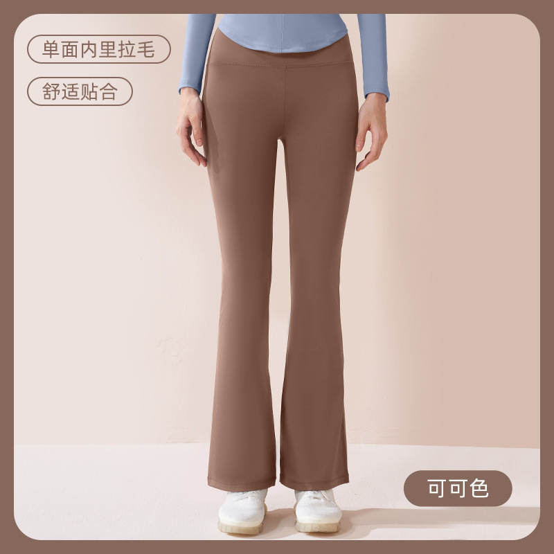 가을과 겨울 새로운 스트레치 슬리밍 하이 웨이스트 엉덩이 기모 플레어 바지 야외 피트니스 레저 스포츠 두꺼운 요가 바지
