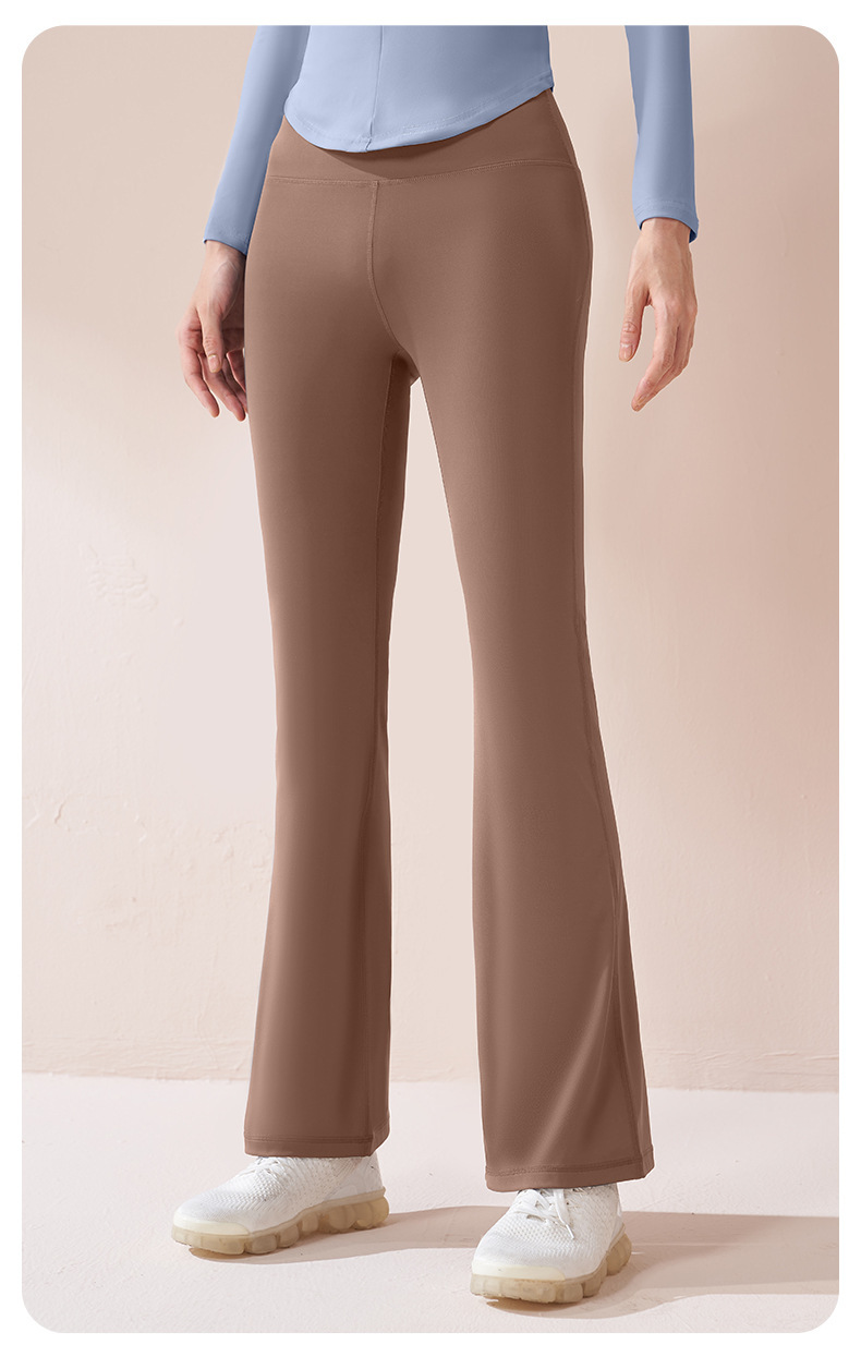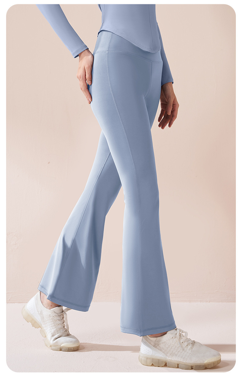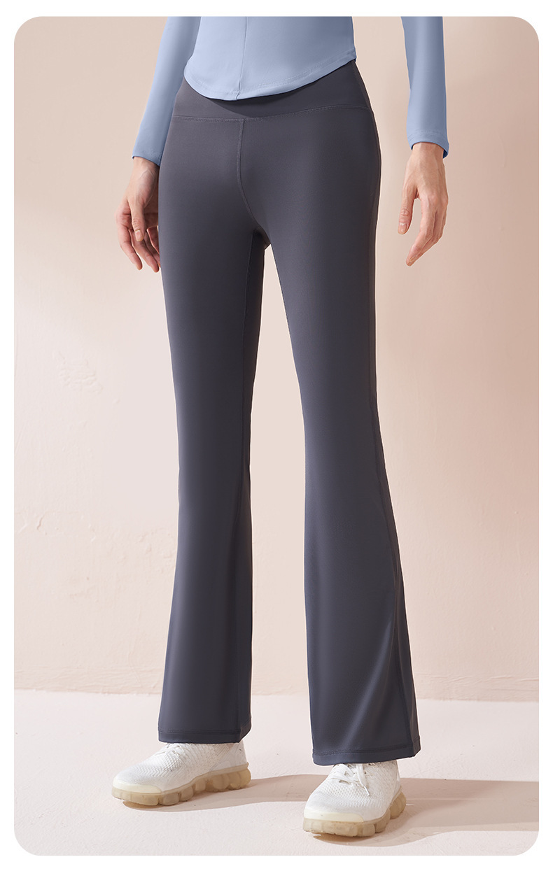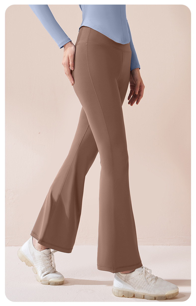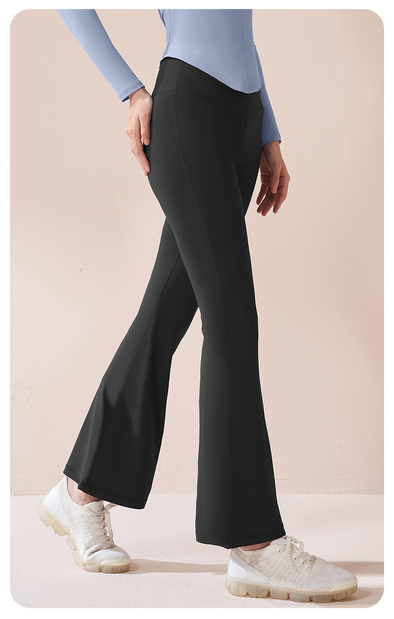 가을과 겨울 새로운 스트레치 슬리밍 하이 웨이스트 엉덩이 기모 플레어 바지 야외 피트니스 레저 스포츠 두꺼운 요가 바지
