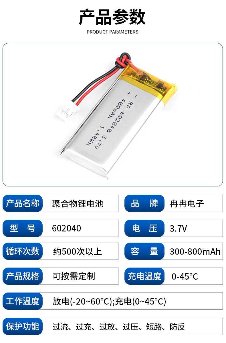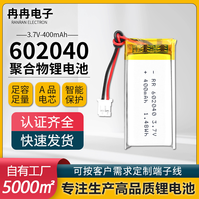 602040 폴리머 리튬 배터리 400mAh 용량 전자 헤드폰 손난로 눈 마사지기 충전식 배터리