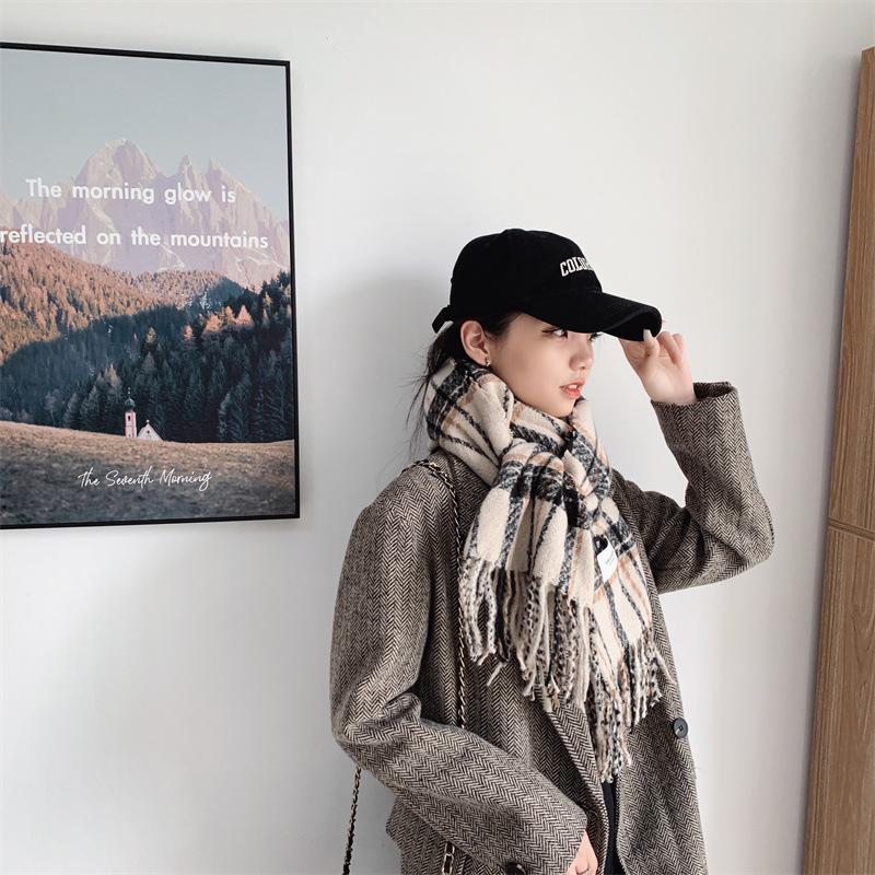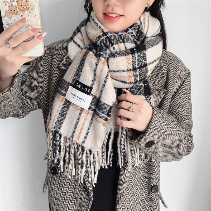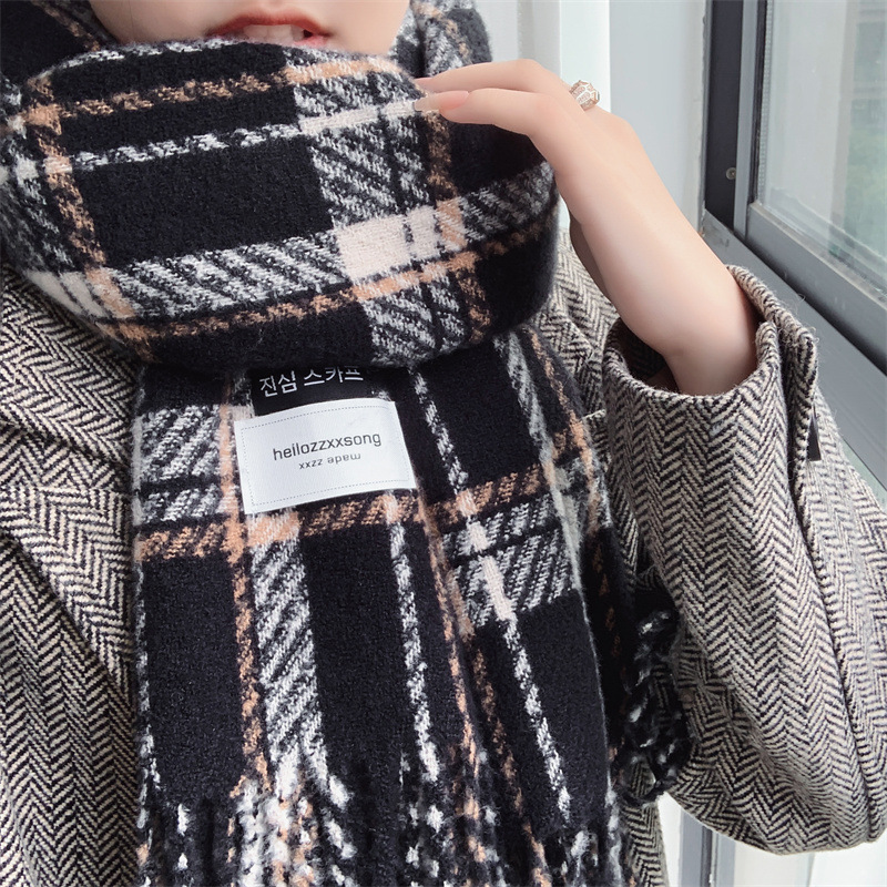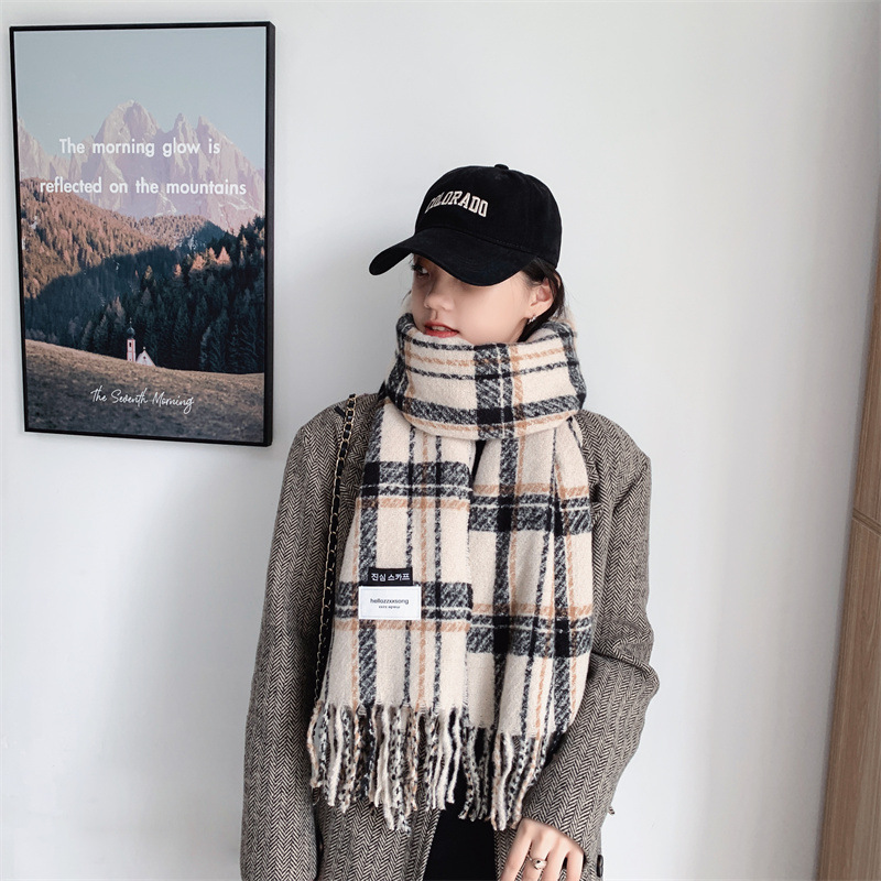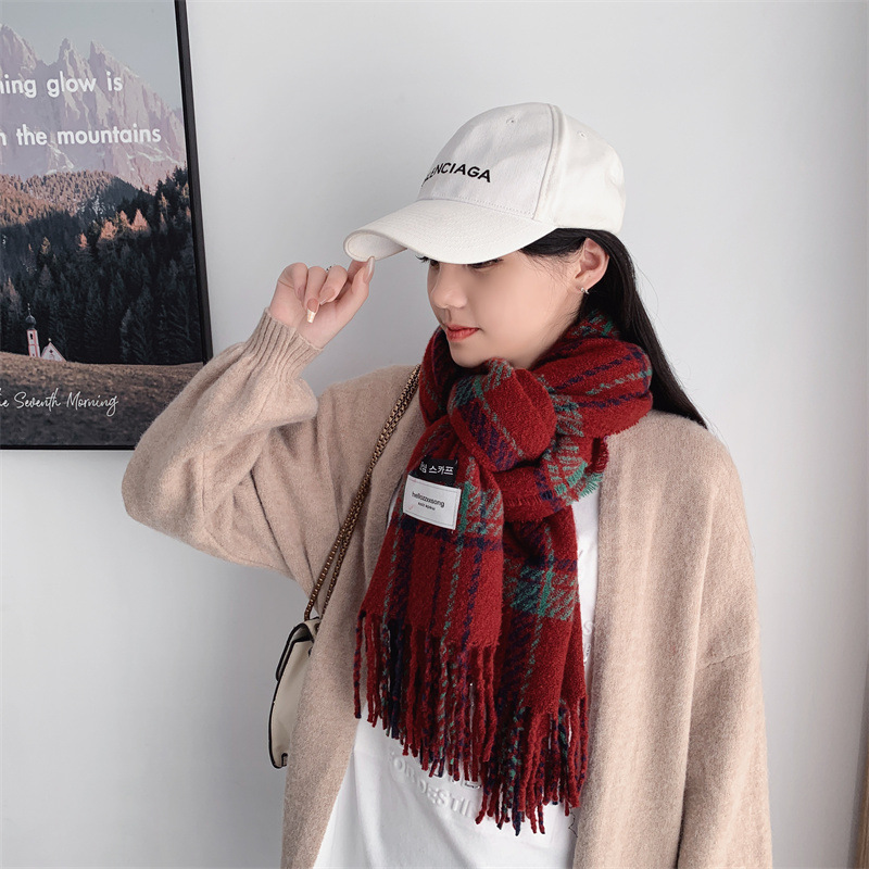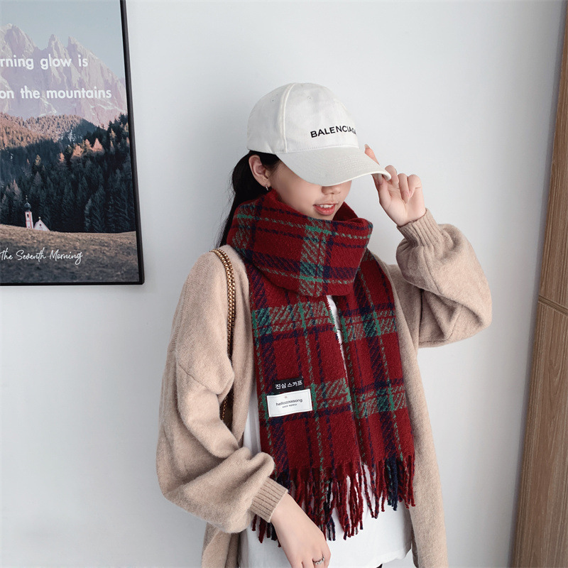 새로운 빨간 격자 무늬 스카프 여성용 겨울 복고풍 한국 스타일 모든 일치 두꺼운 따뜻한 숄 학생을위한 고급 감각 스카프