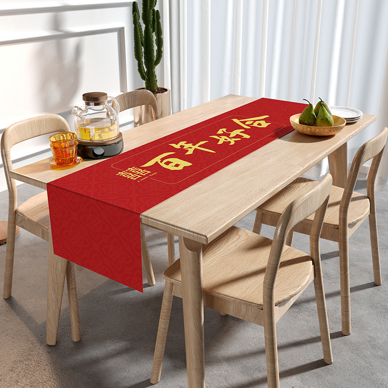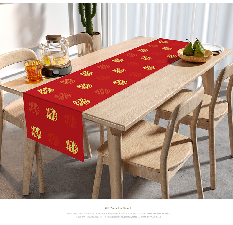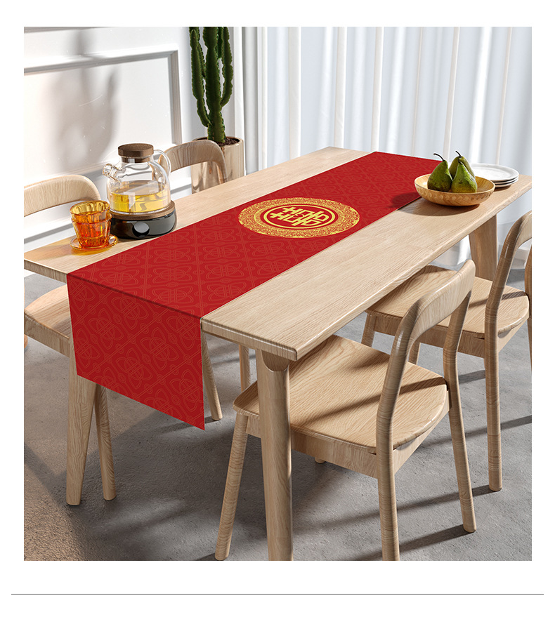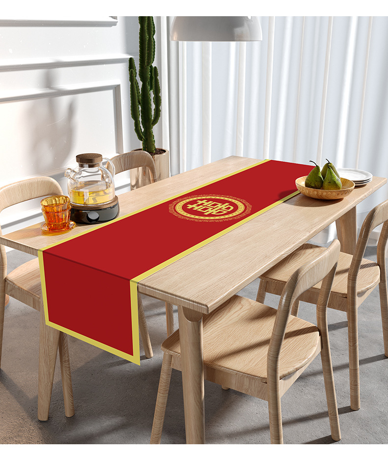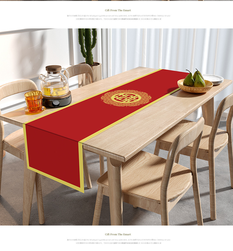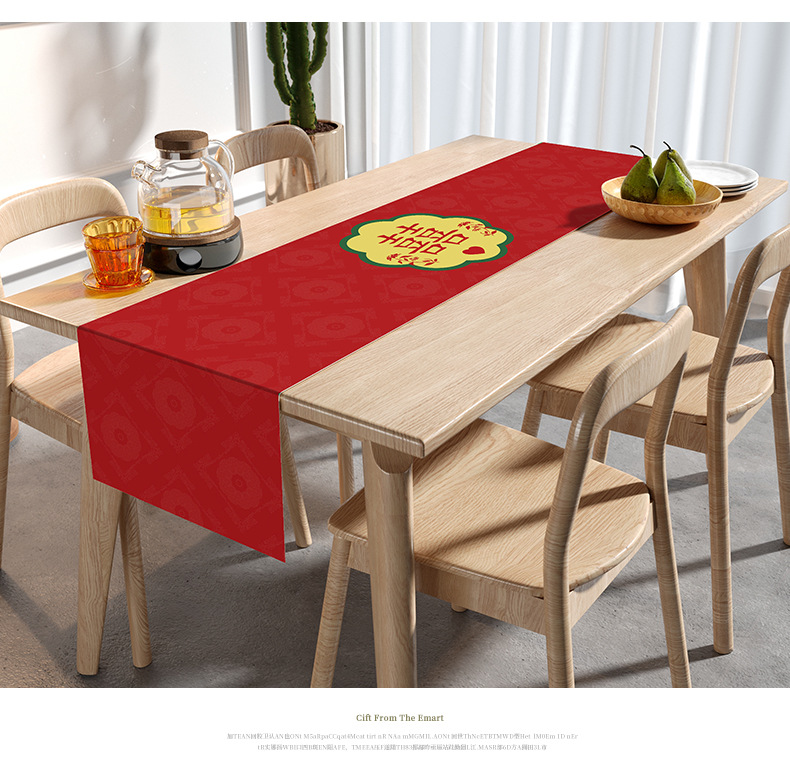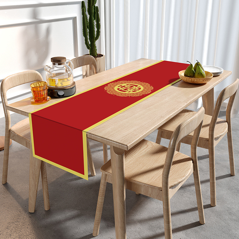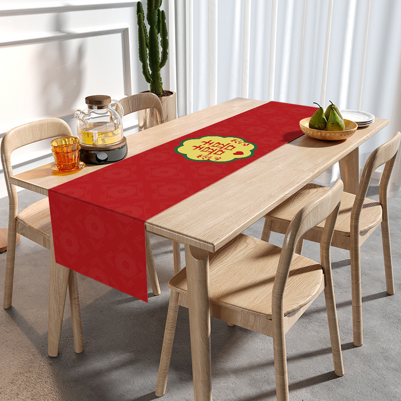 웨딩 테이블 러너 레드 해피 캐릭터 테이블 매트 축제 축제 약혼 웨딩 장식 식탁 커피 테이블 웨딩 식탁보