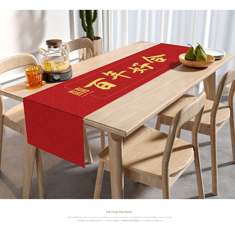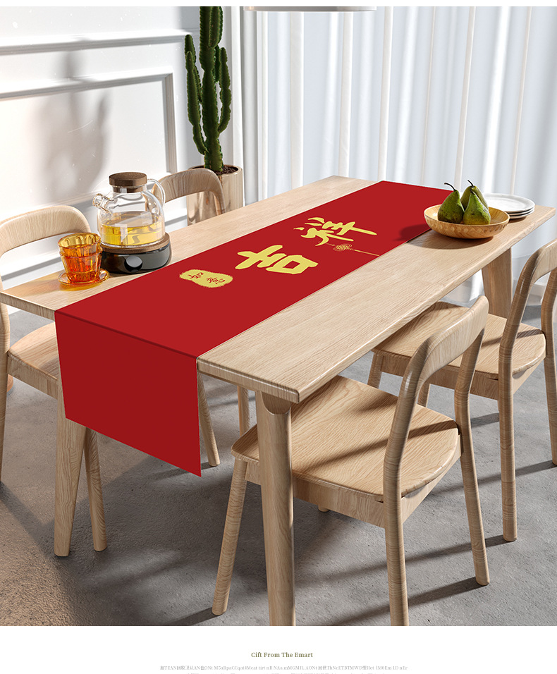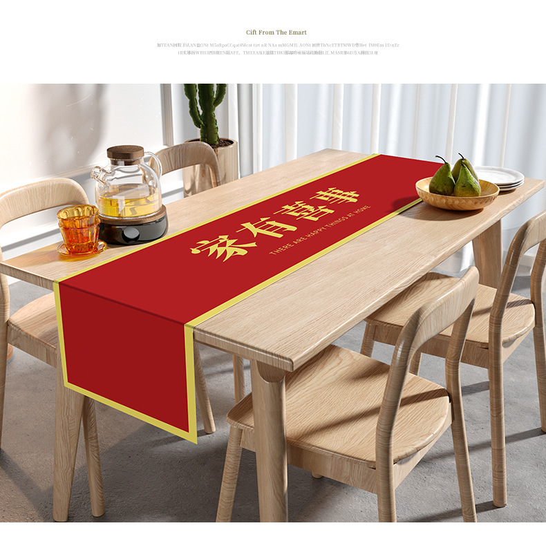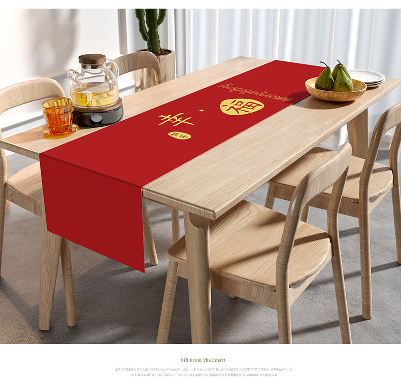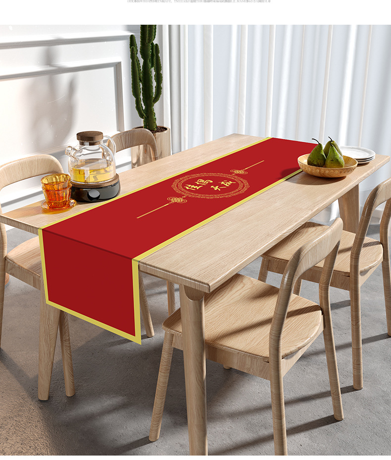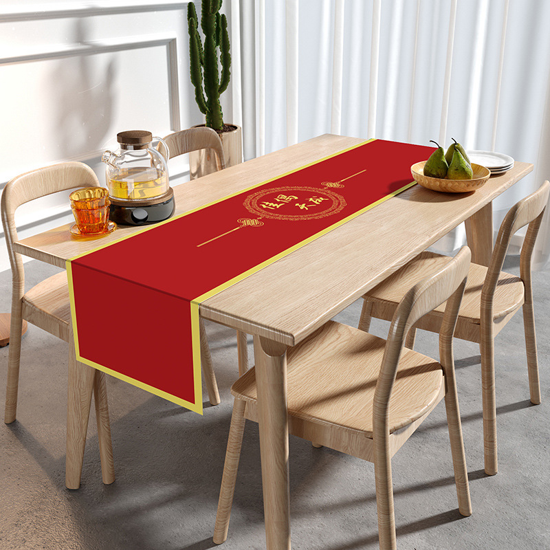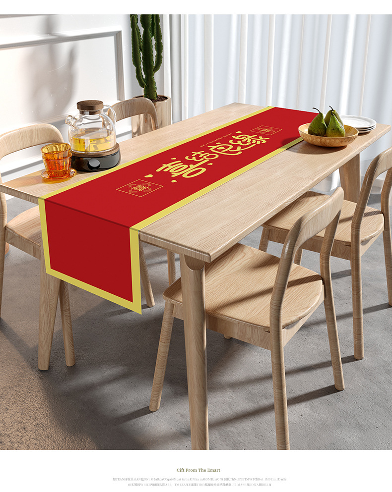 웨딩 테이블 러너 레드 해피 캐릭터 테이블 매트 축제 축제 약혼 웨딩 장식 식탁 커피 테이블 웨딩 식탁보