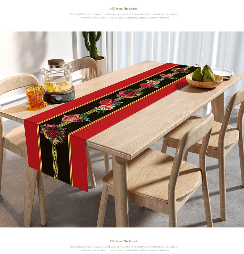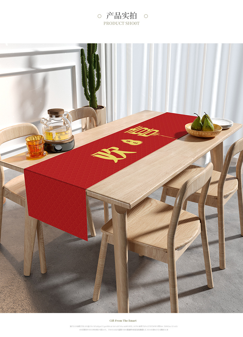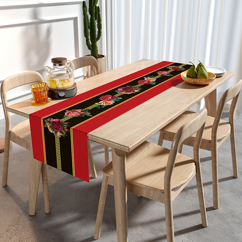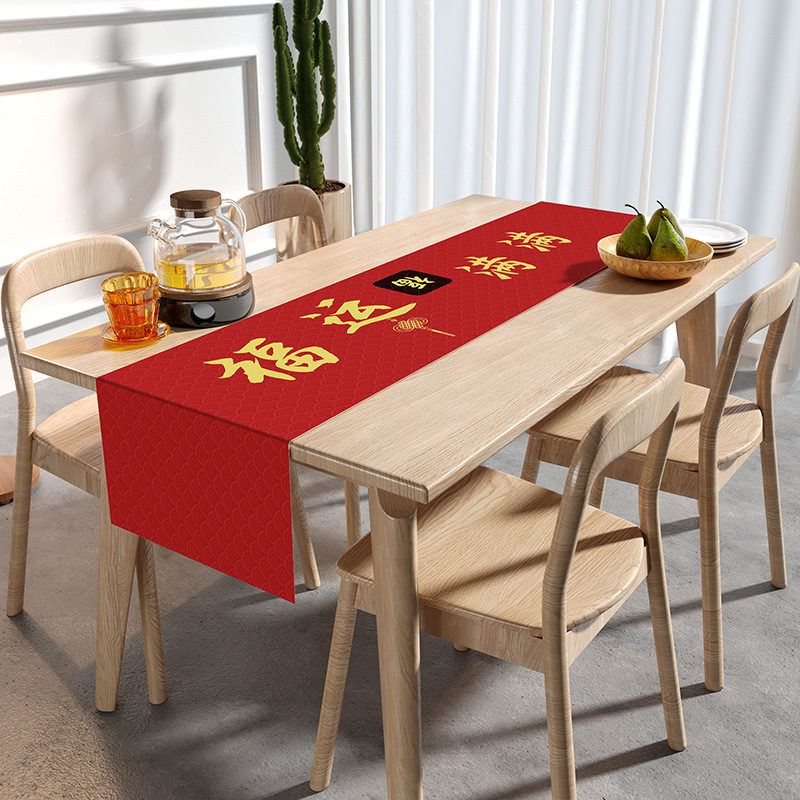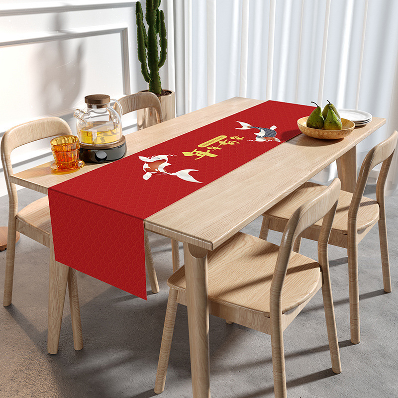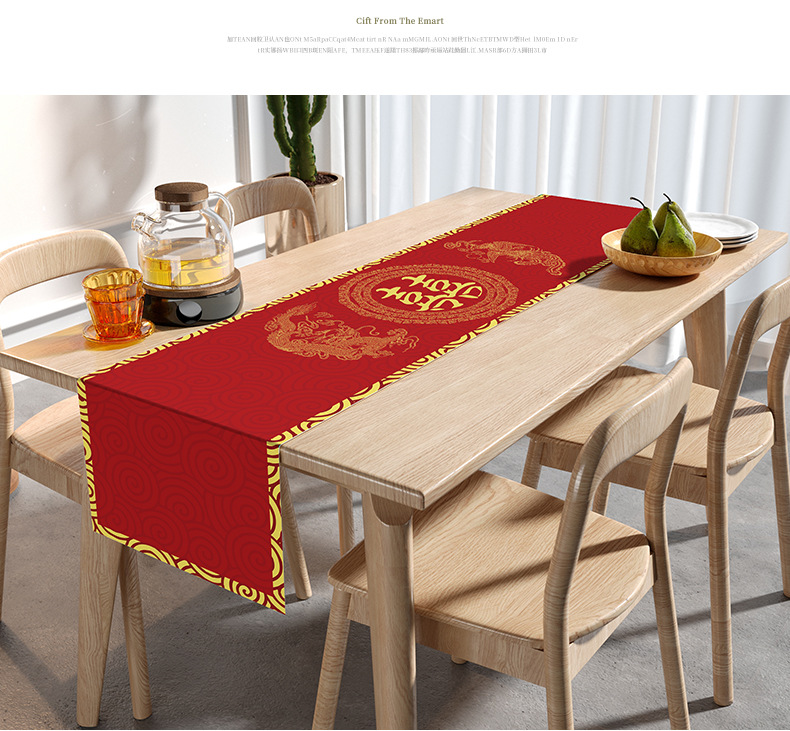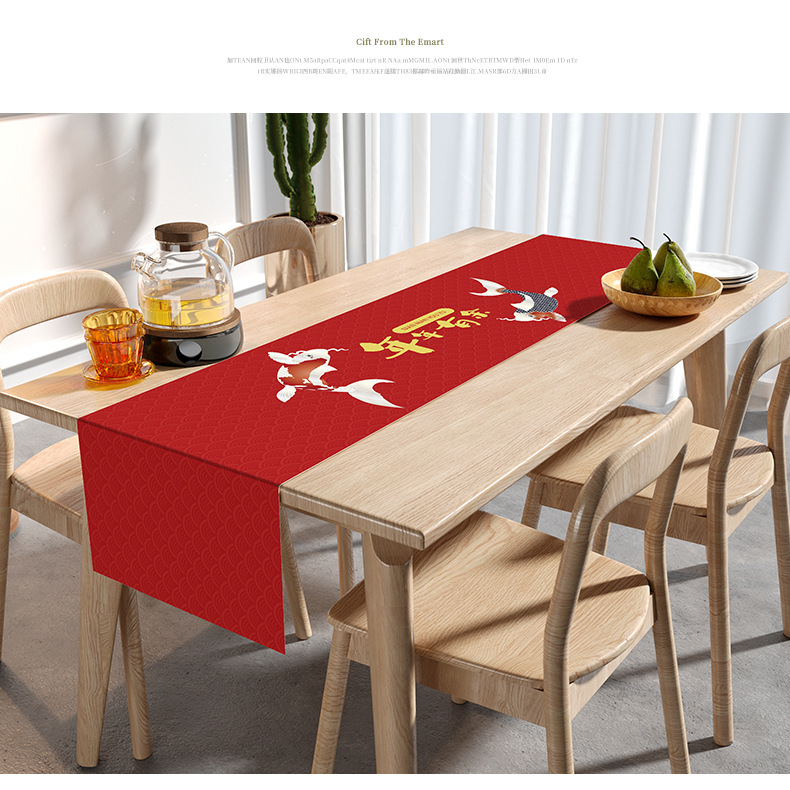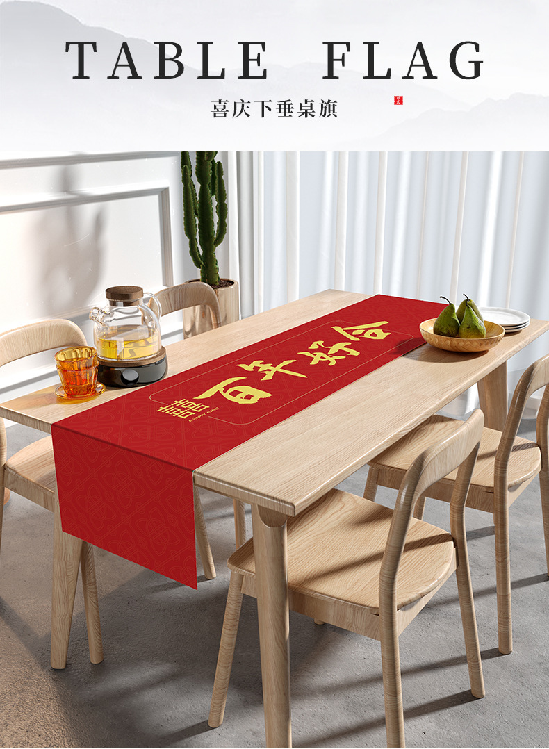 웨딩 테이블 러너 레드 해피 캐릭터 테이블 매트 축제 축제 약혼 웨딩 장식 식탁 커피 테이블 웨딩 식탁보