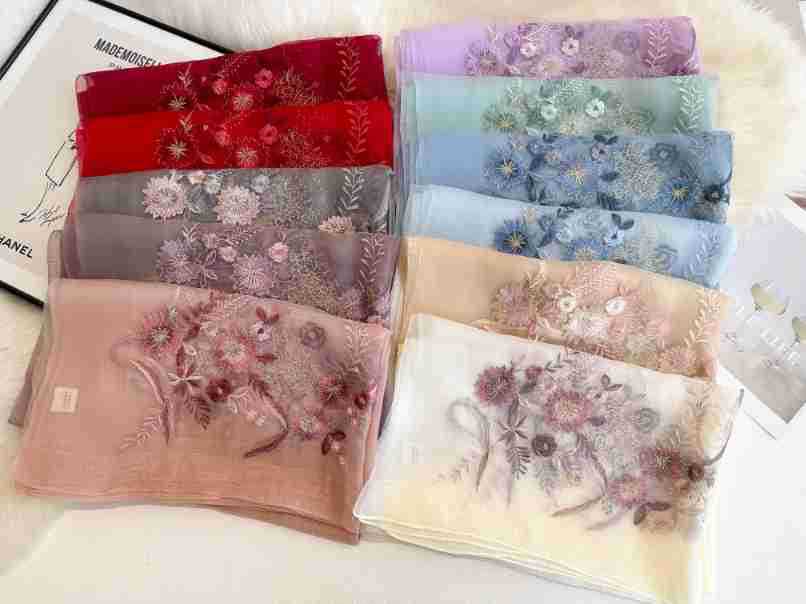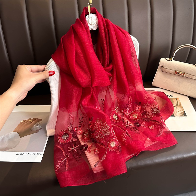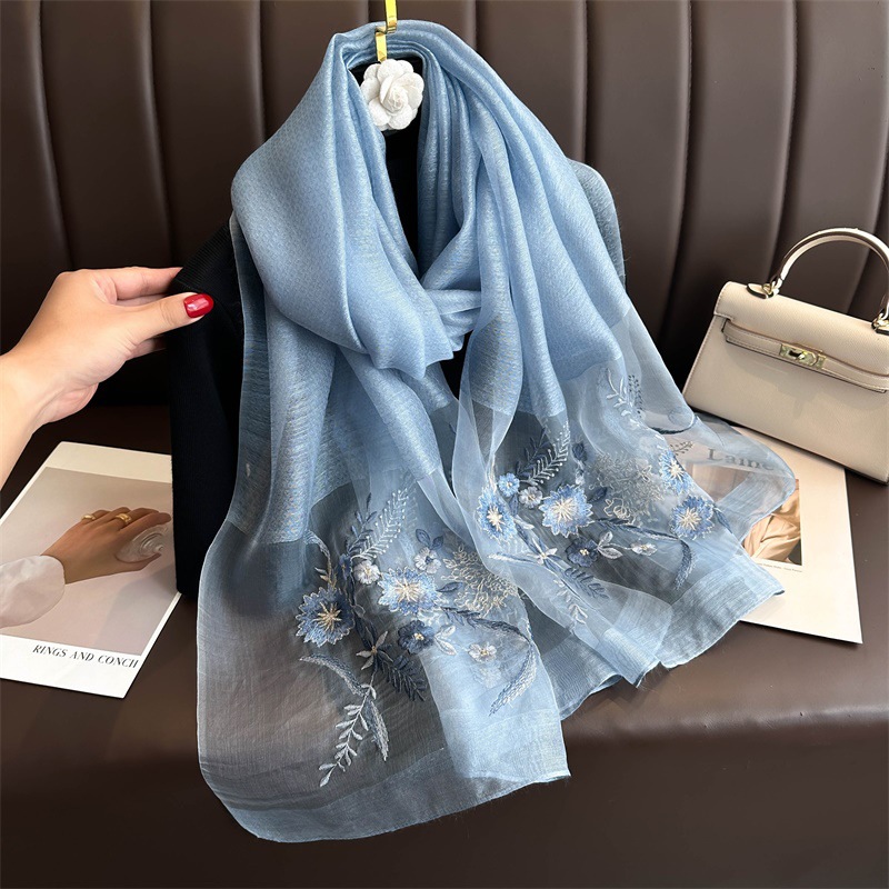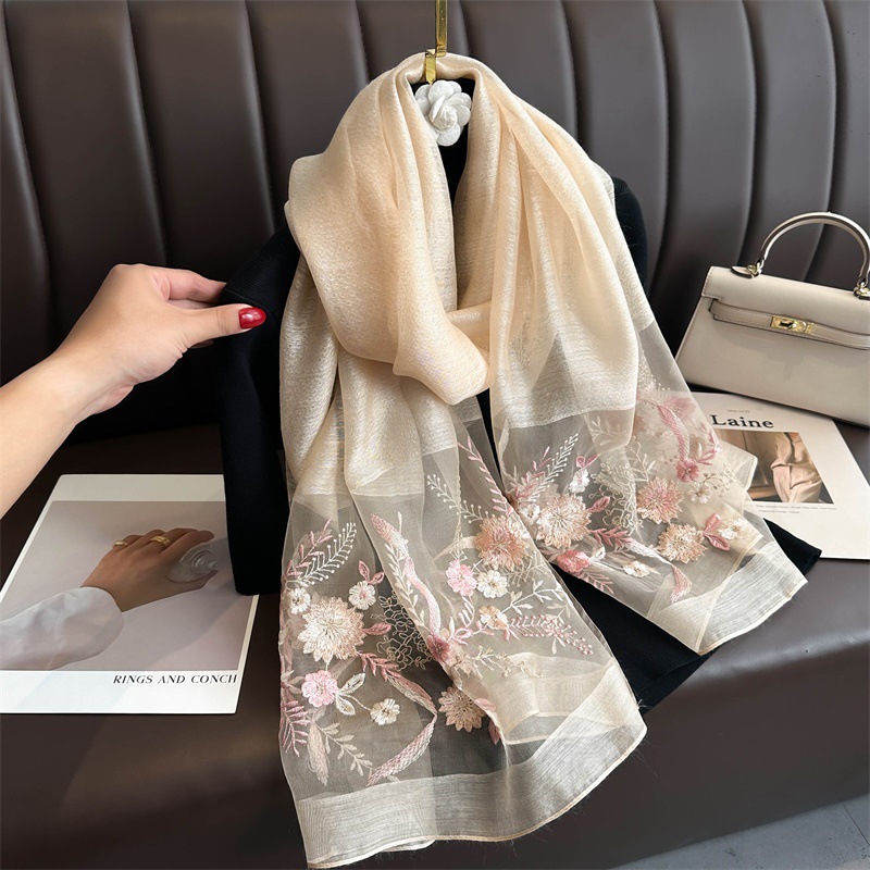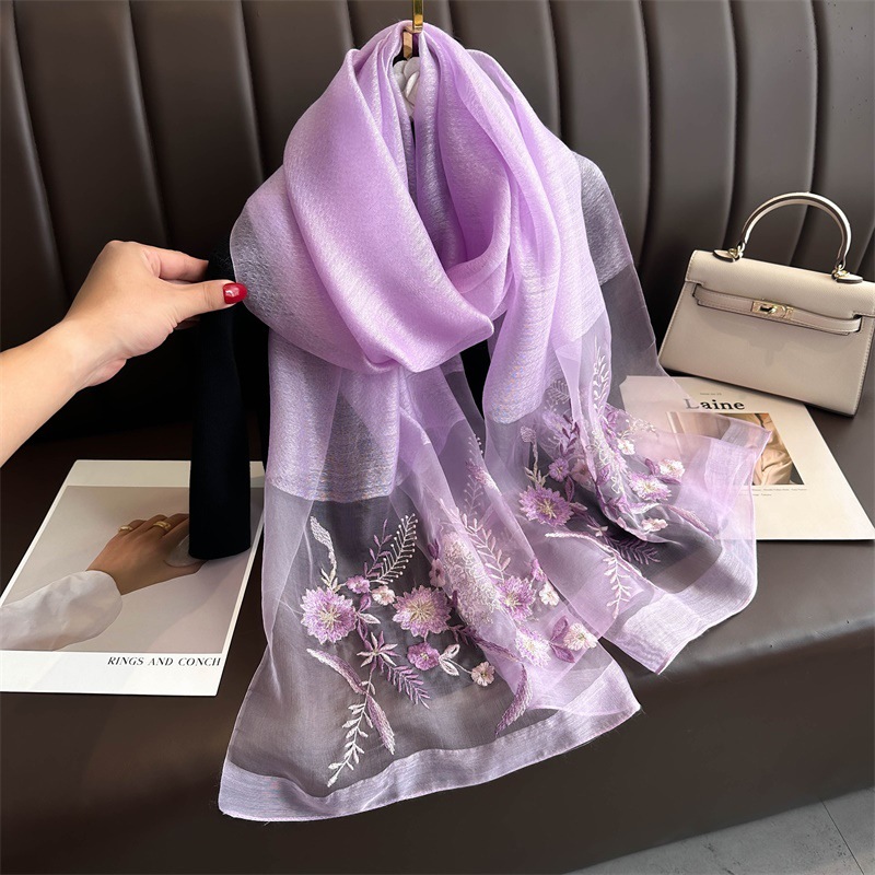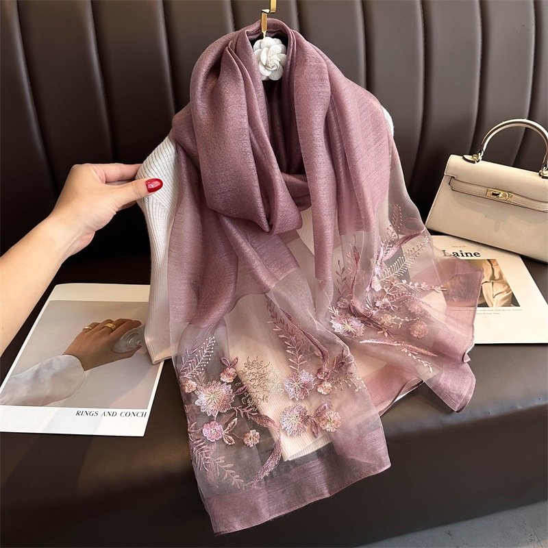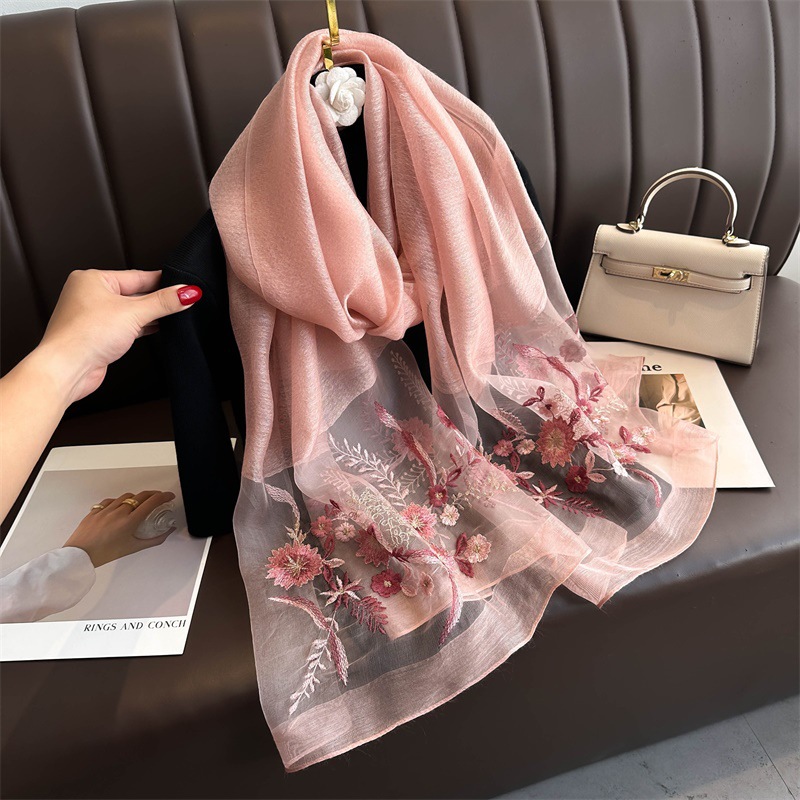재고 실크 수제 자수 스카프 봄과 가을 새로운 뽕나무 실크 자수 스카프 우아한 쉬운 착용 장식 숄