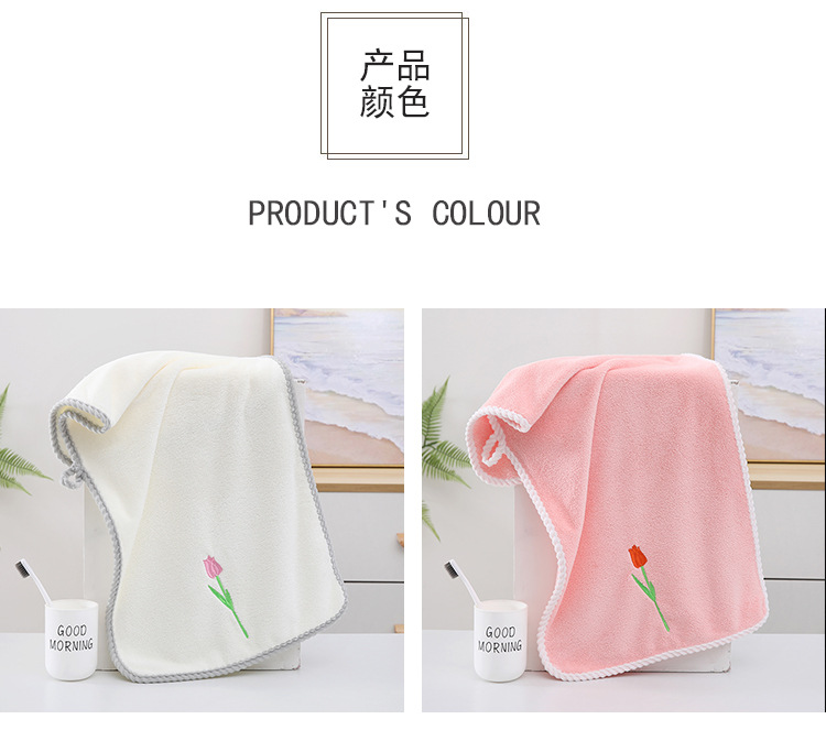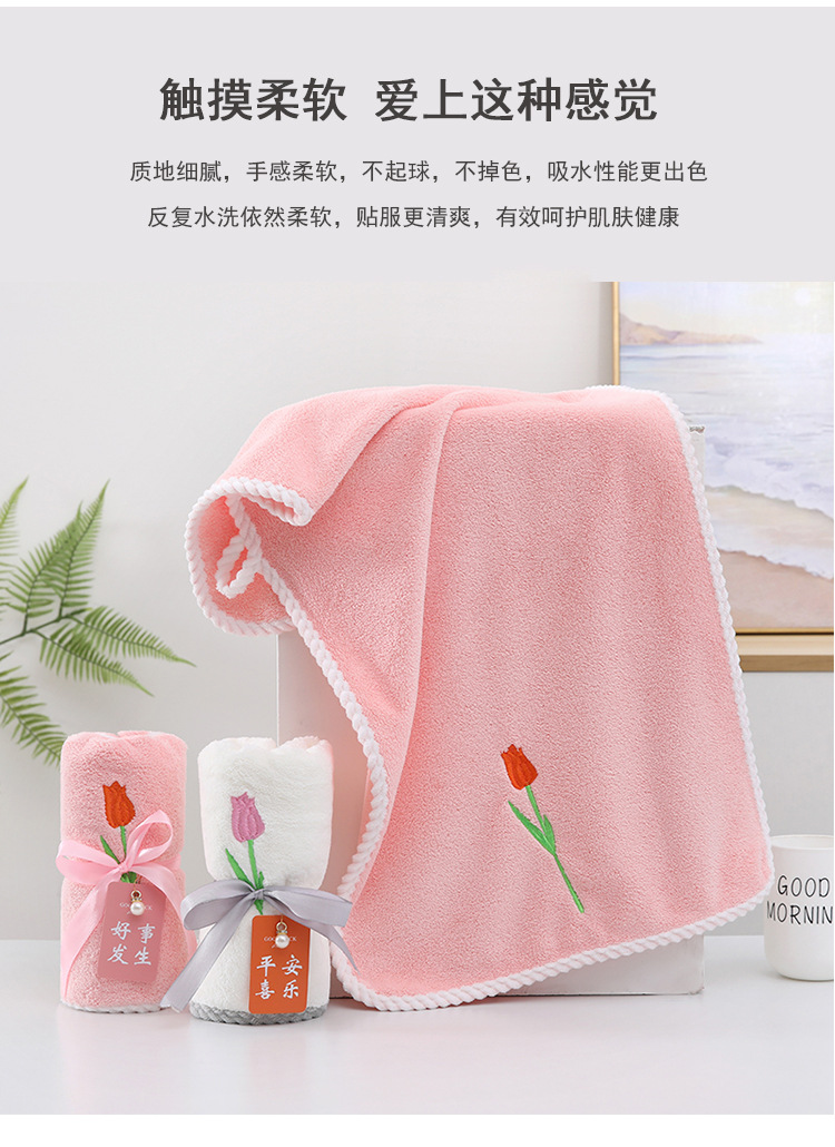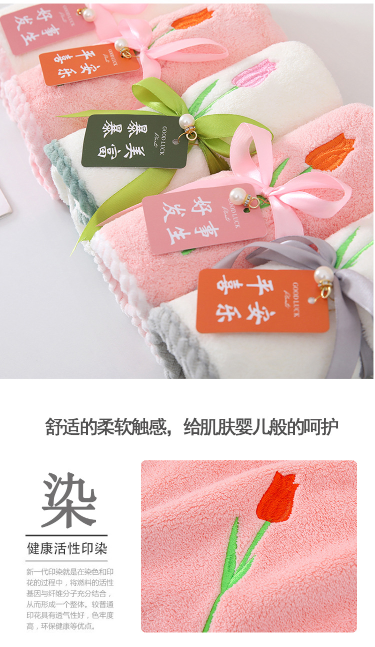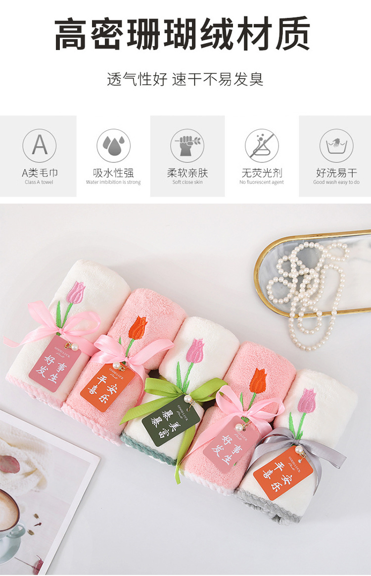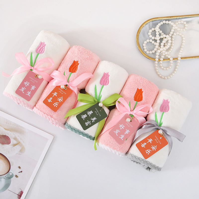 튤립 자수 타월 산호 양털 리본 태그 진주 타월 성인 타월 손 선물 웨딩 타월