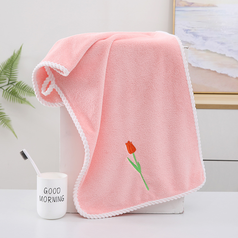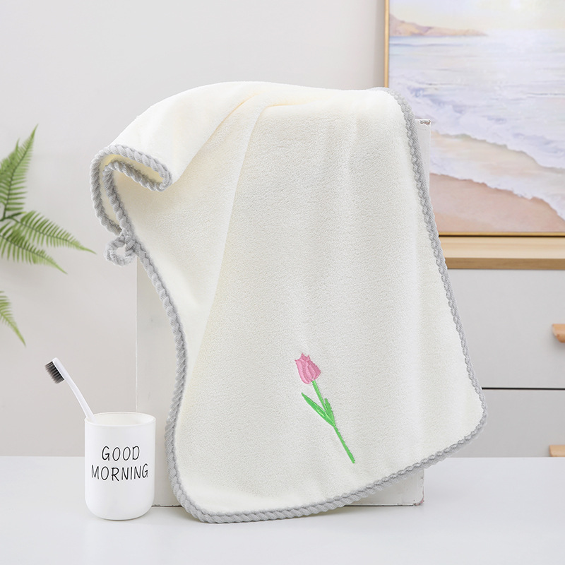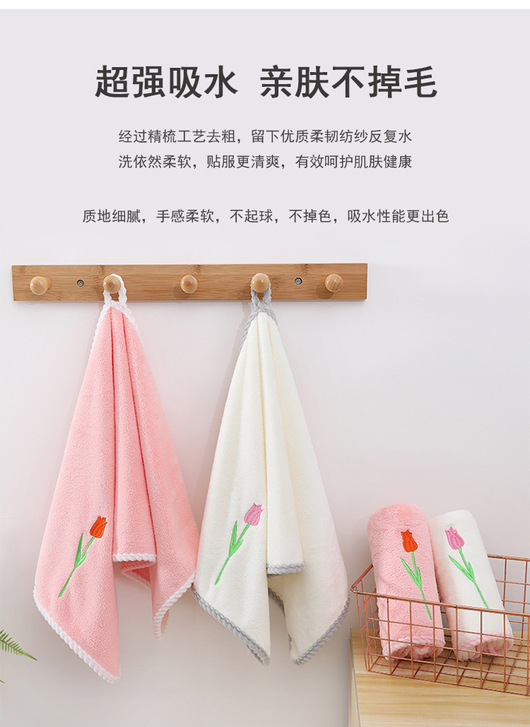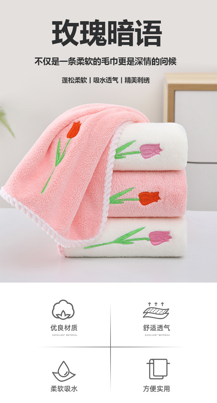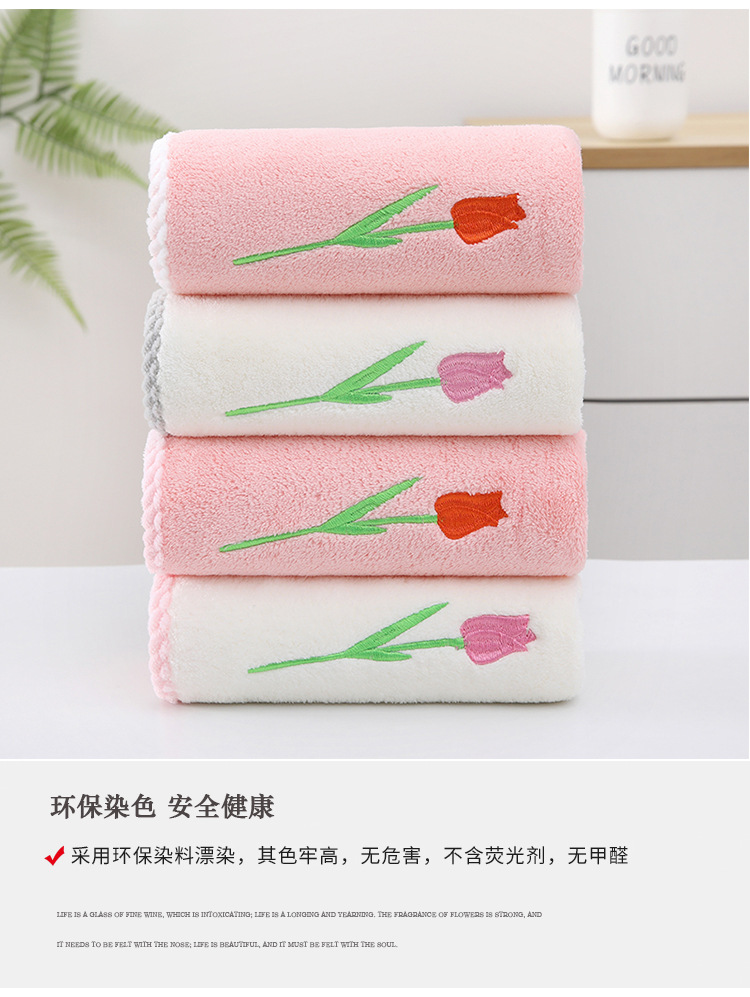 튤립 자수 타월 산호 양털 리본 태그 진주 타월 성인 타월 손 선물 웨딩 타월