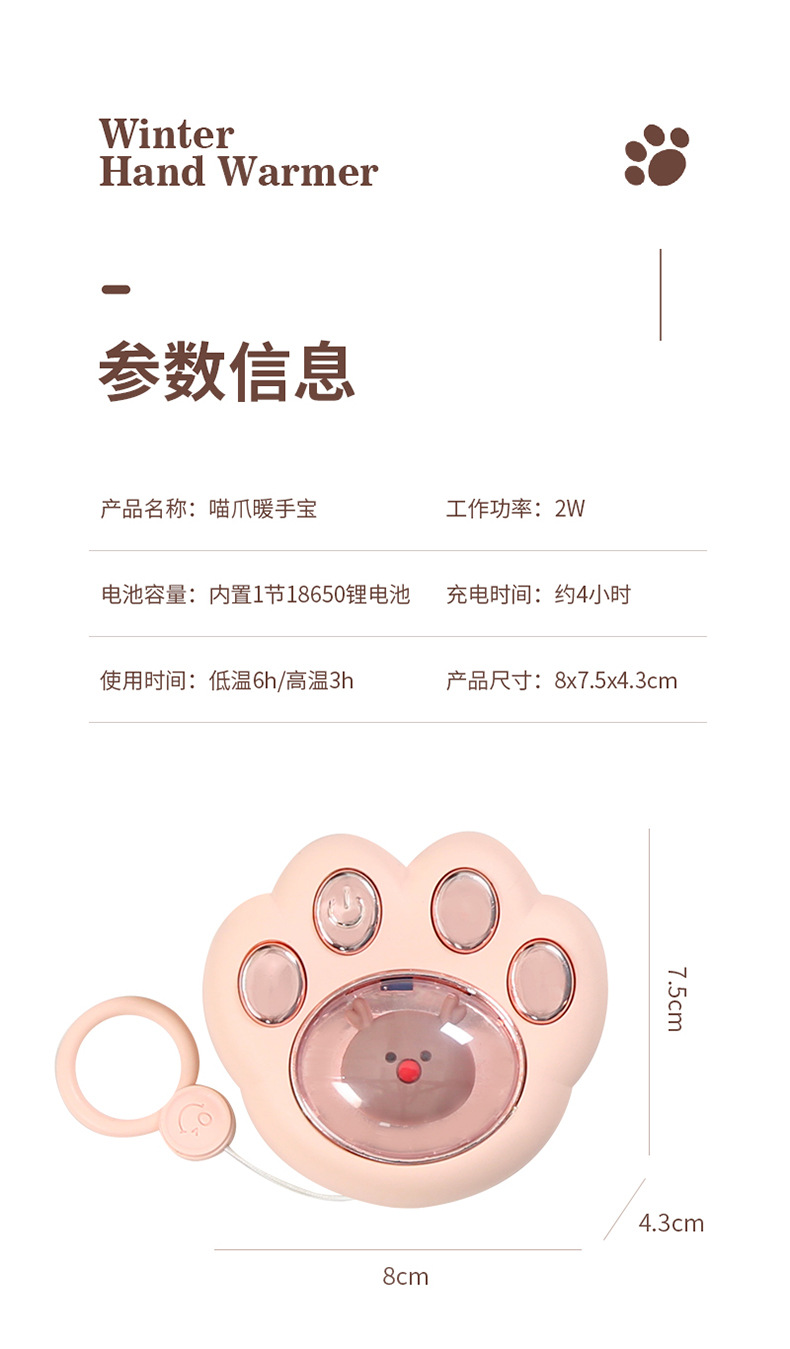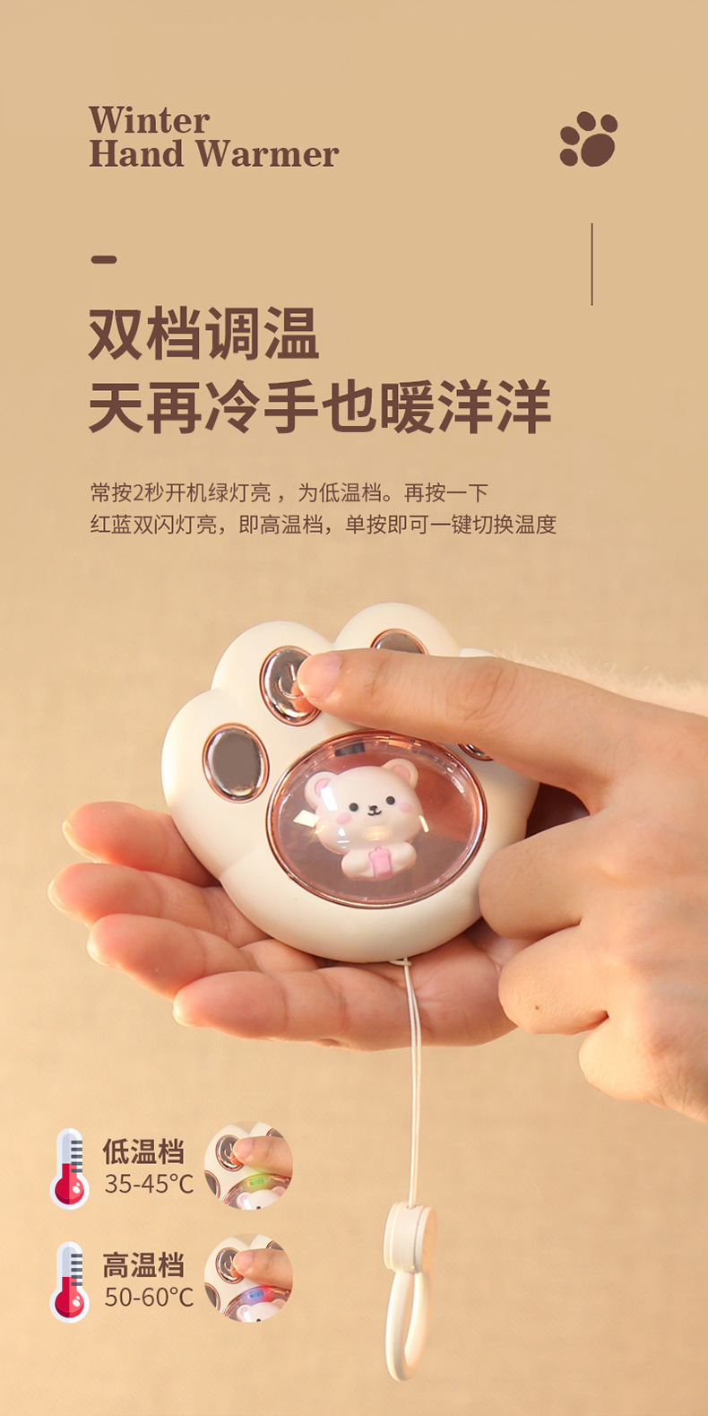 귀여운 고양이 발톱 곰 발톱 발자국 USB 충전 핸드 워머 휴대용 펜던트 빠른 난방 아기 전기 히터 공장스토어 가기