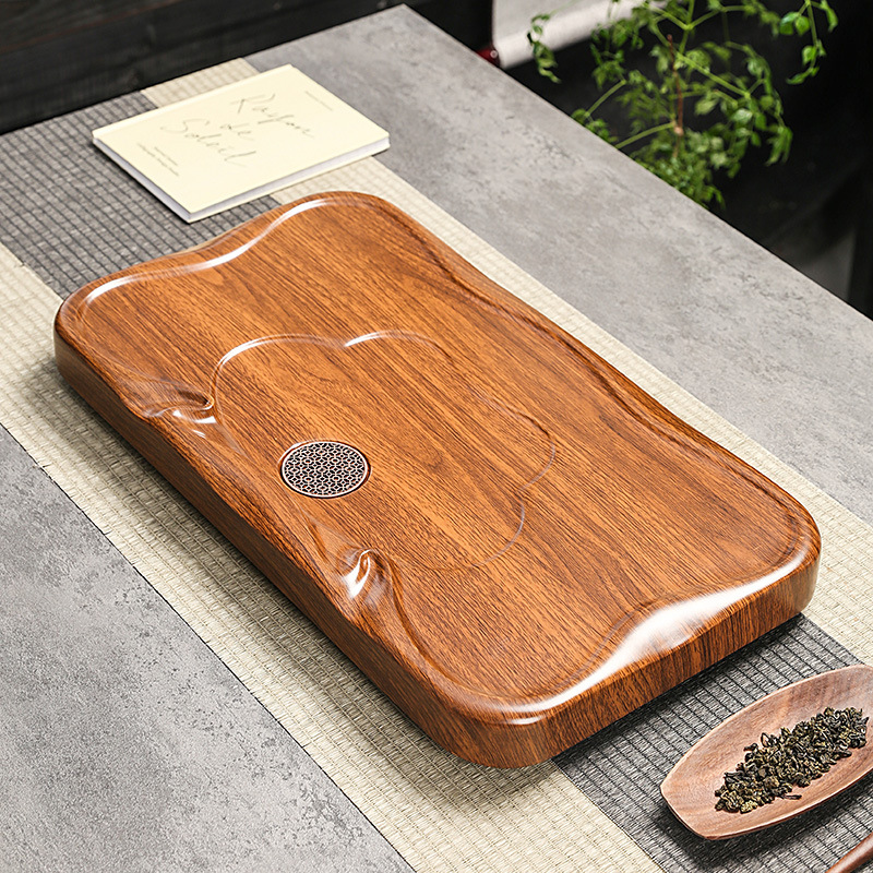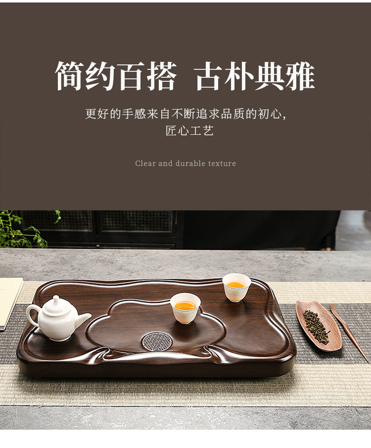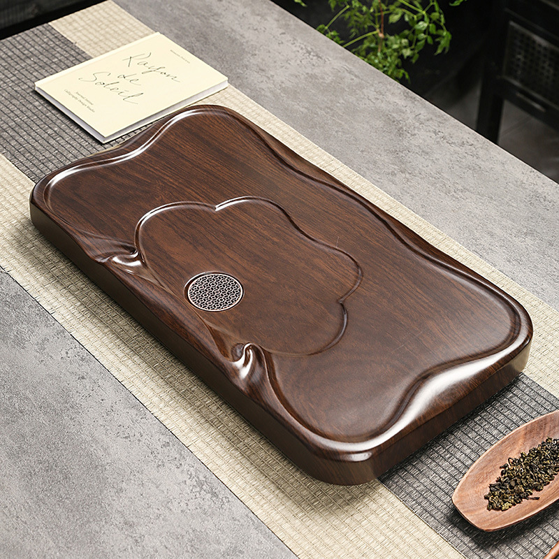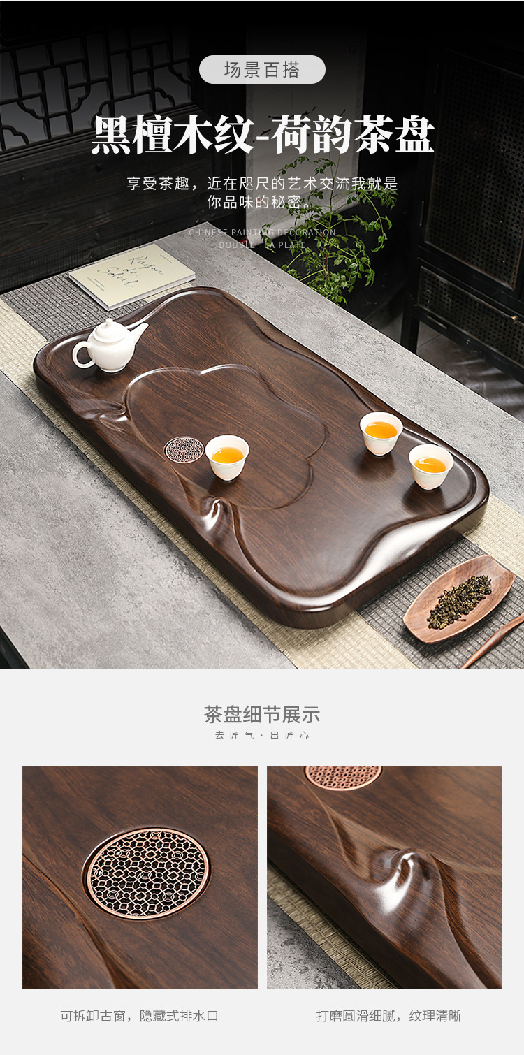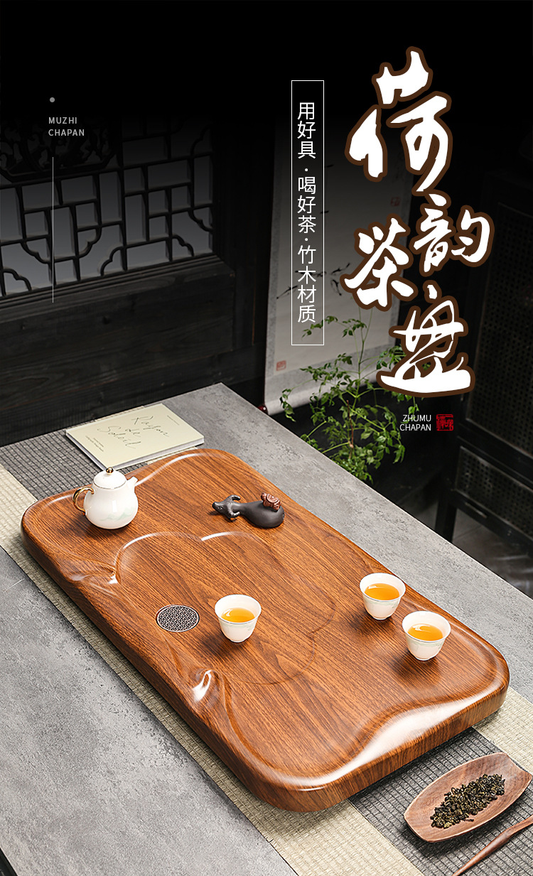 대나무 차 트레이 흑단 무늬 차 세트 트레이 연꽃 무늬 차 테이블 차 트레이 중국풍 배수 디자인