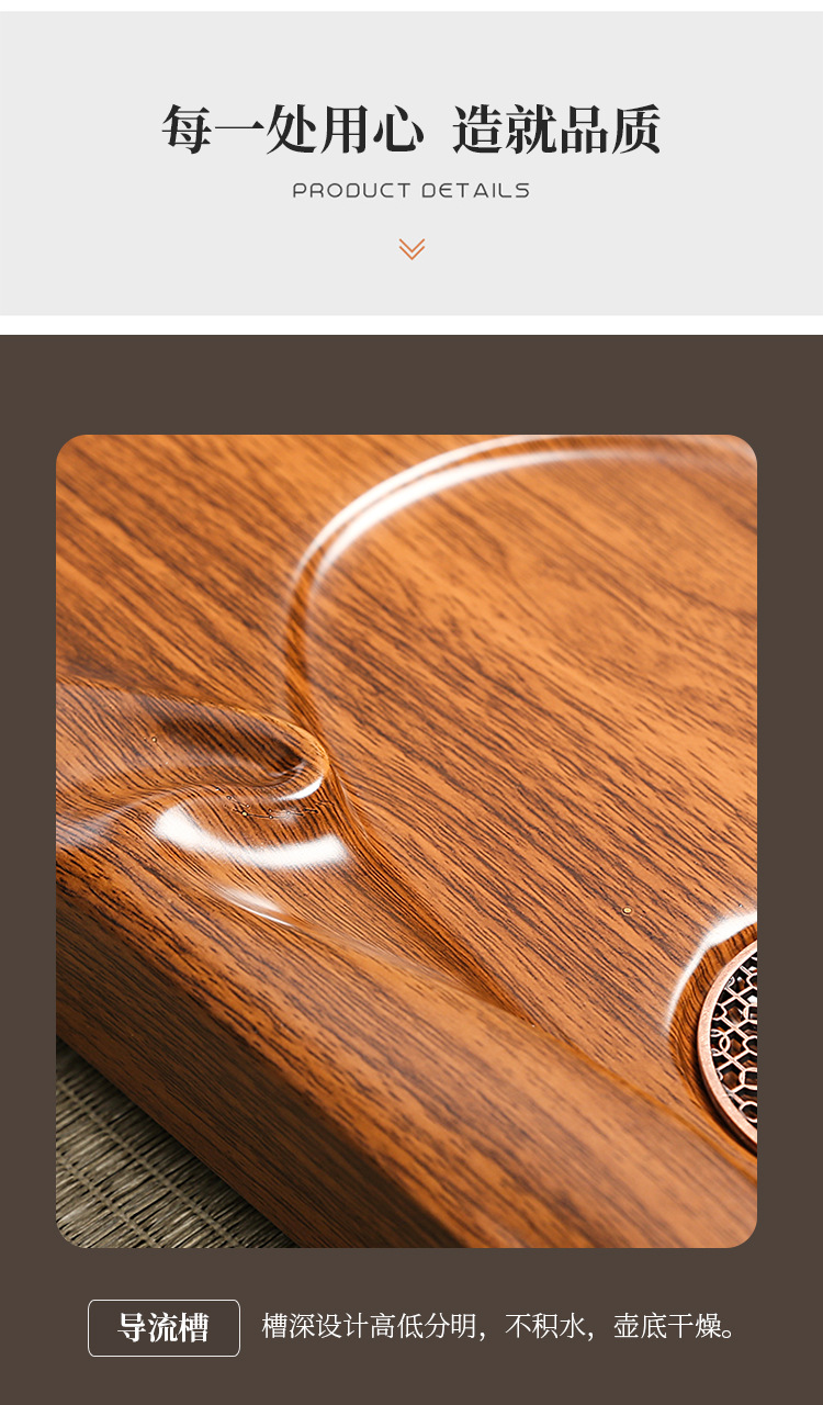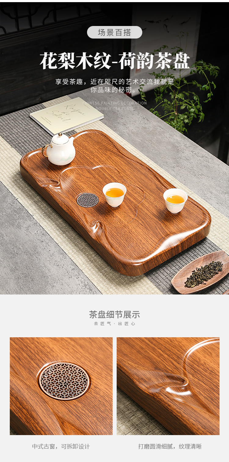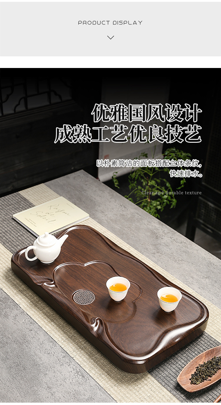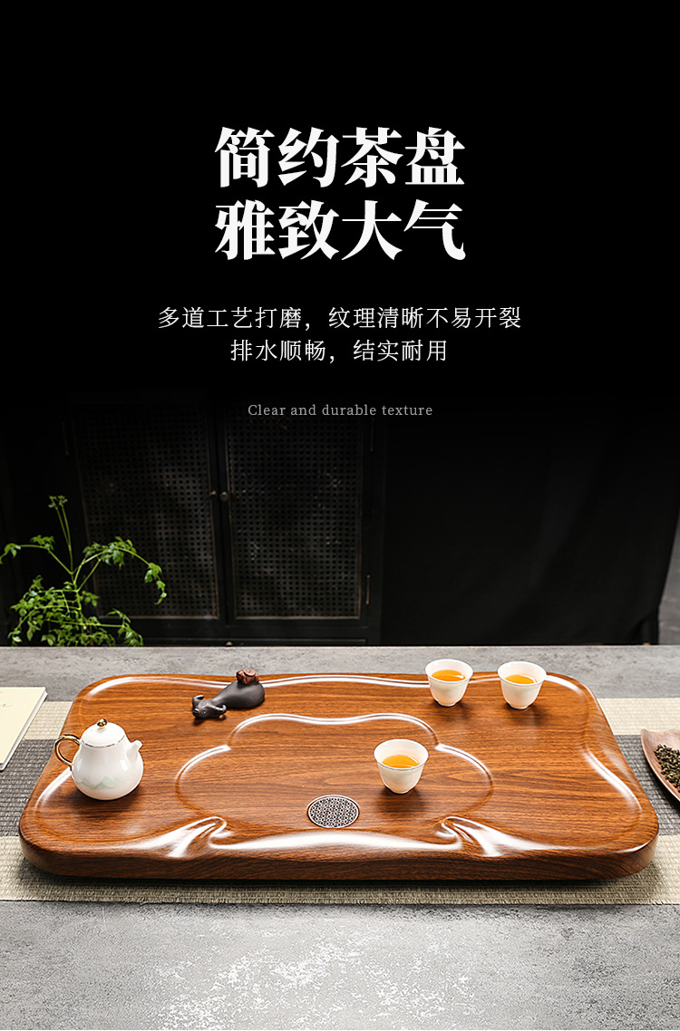 대나무 차 트레이 흑단 무늬 차 세트 트레이 연꽃 무늬 차 테이블 차 트레이 중국풍 배수 디자인