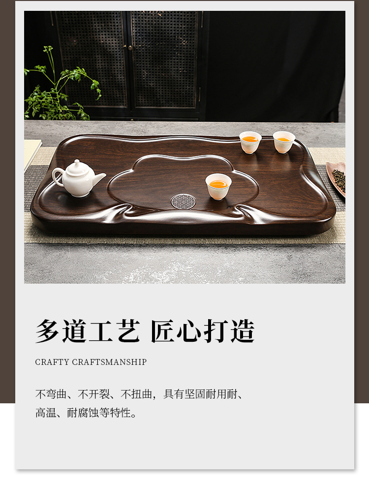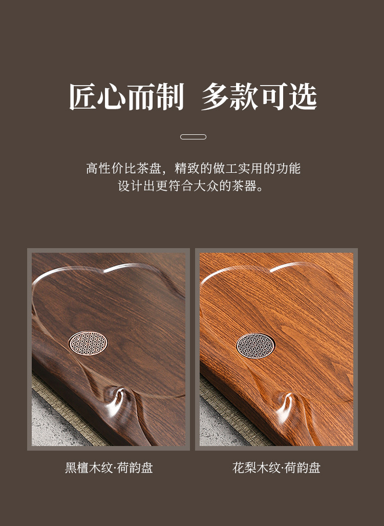 대나무 차 트레이 흑단 무늬 차 세트 트레이 연꽃 무늬 차 테이블 차 트레이 중국풍 배수 디자인스토어 가기