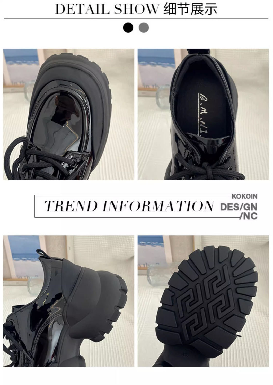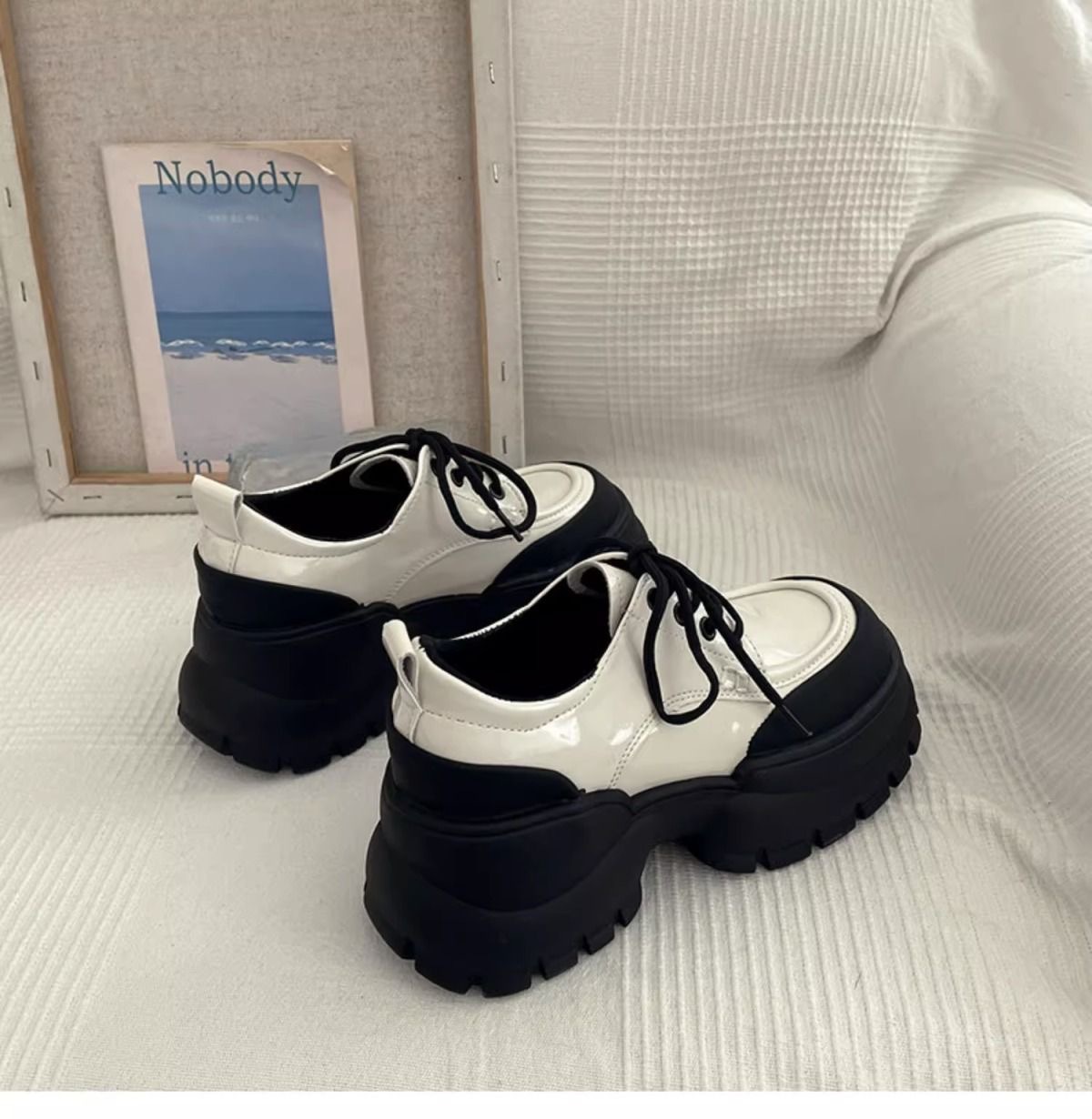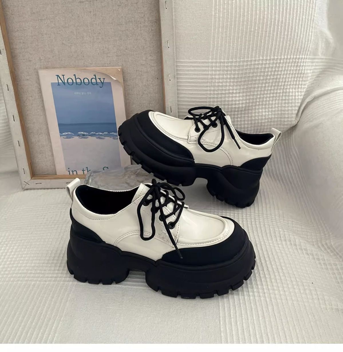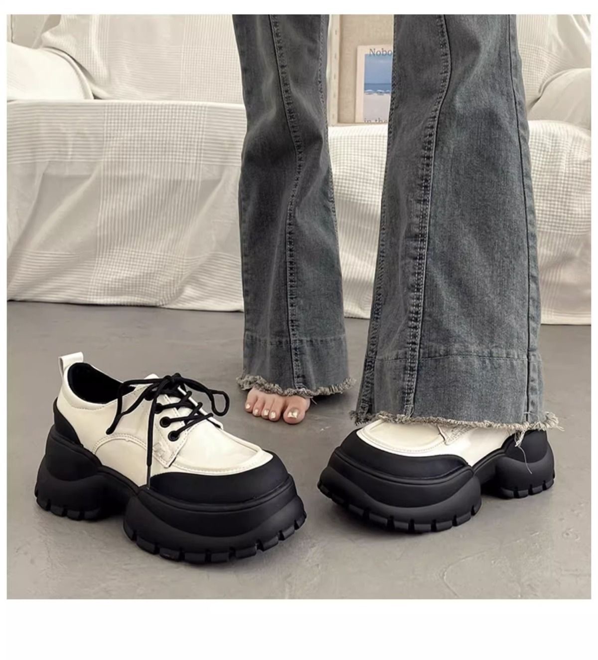 여성용 두꺼운 굽 싱글 슈즈 블랙 2024 봄 새로운 패션 다목적 두꺼운 밑창 작은 캐주얼 패션 여성용 작은 가죽 신발스토어 가기