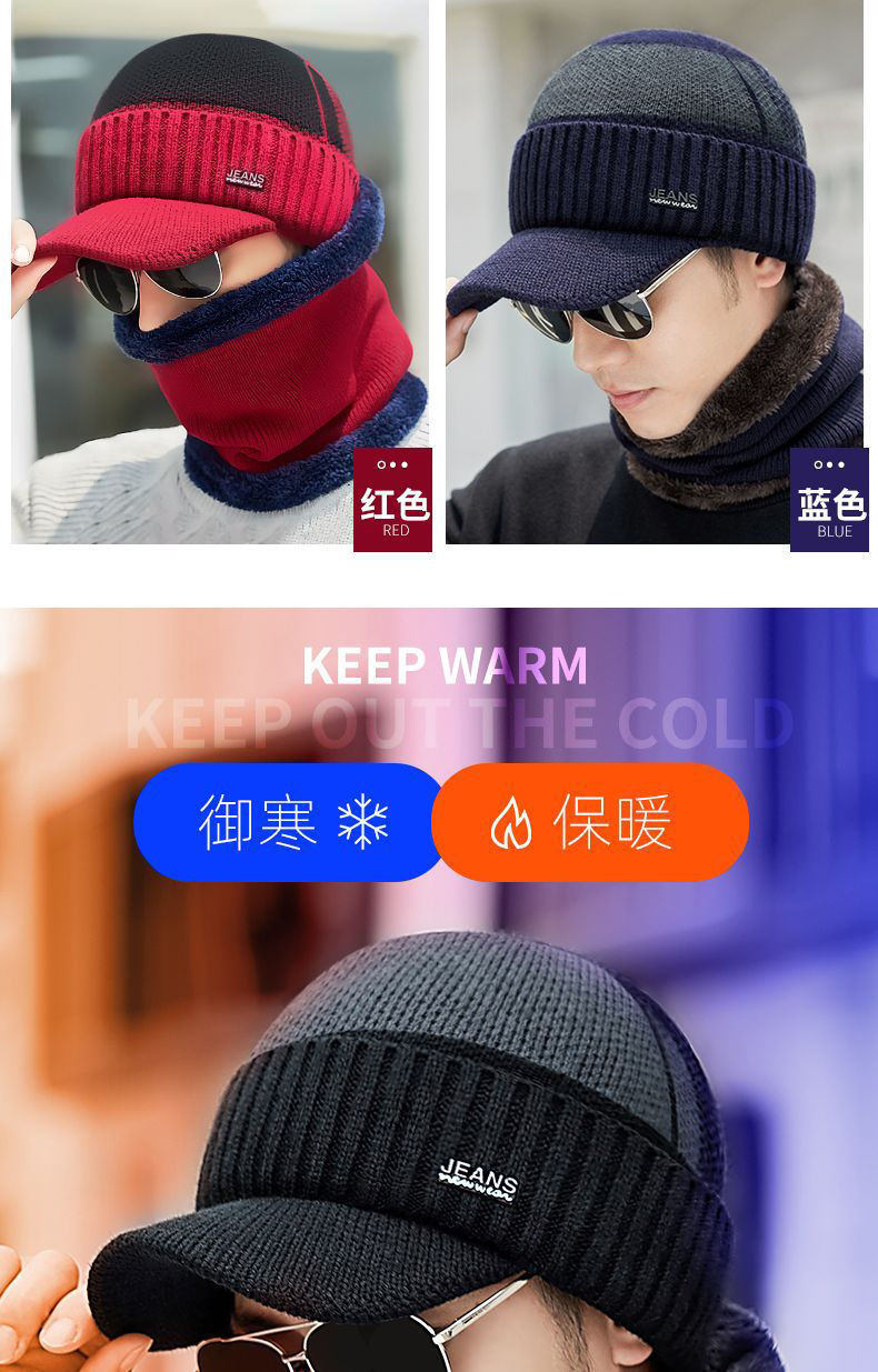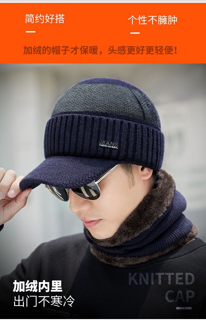 모자 남자의 겨울 오리 혀 울 모자 기모 두꺼운 자전거 방풍 감기 따뜻한 귀 보호 니트 모자