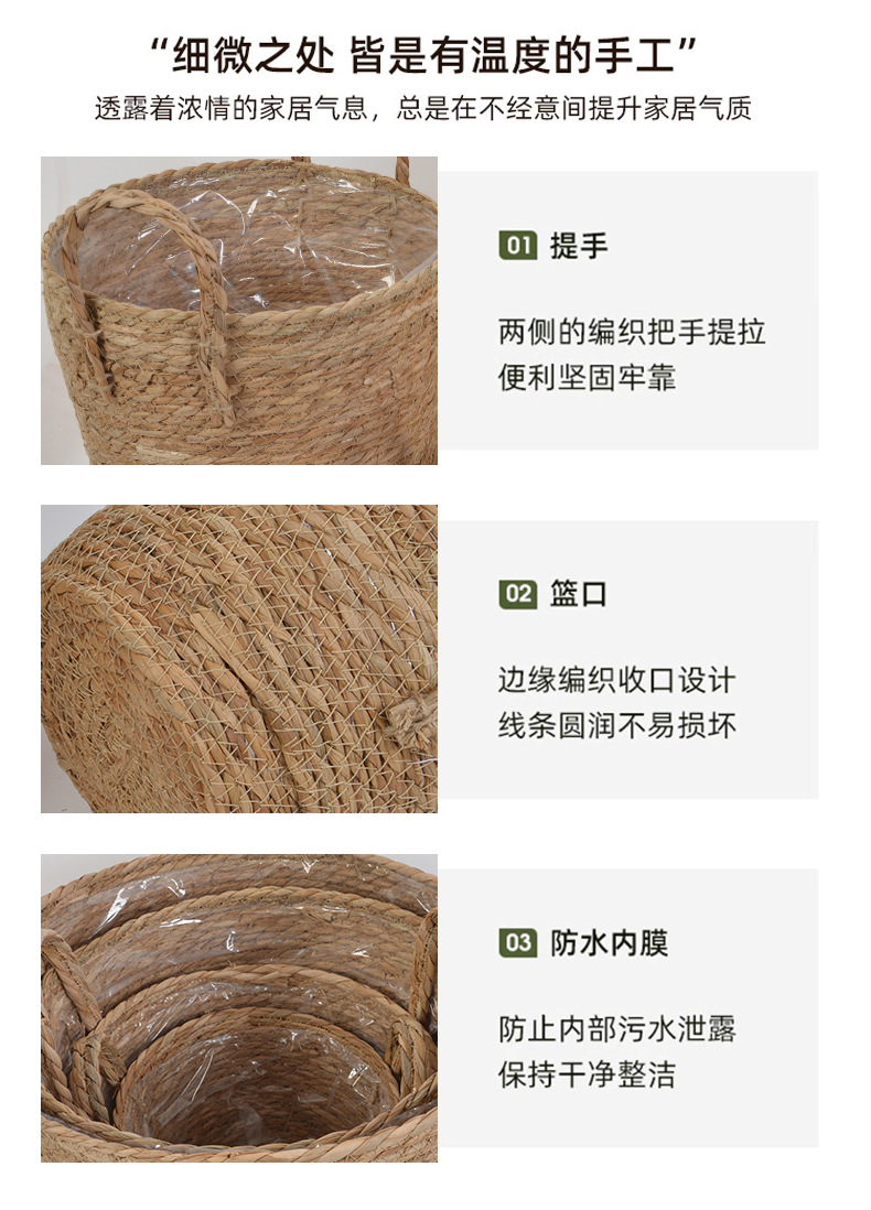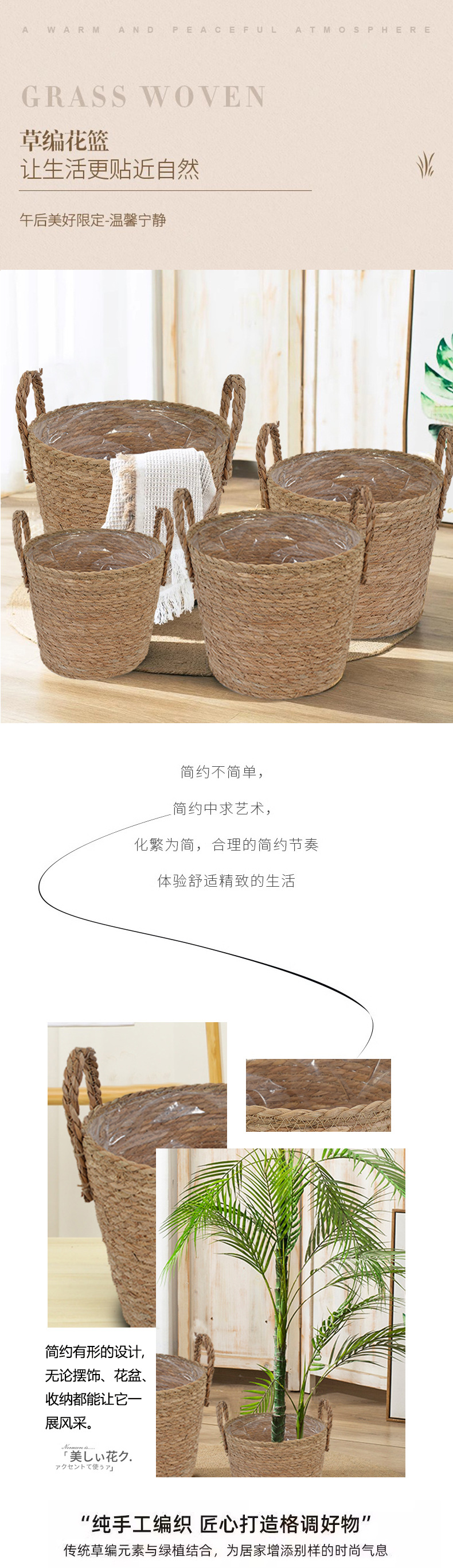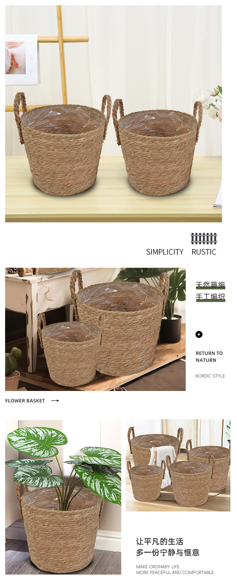 국경 간 북유럽 스타일 밀짚 꽃 냄비 해초 화분 화분 짠 꽃 바구니 바구니 수제 꽃 냄비 대나무 짠 등나무 짠 바구니스토어 가기