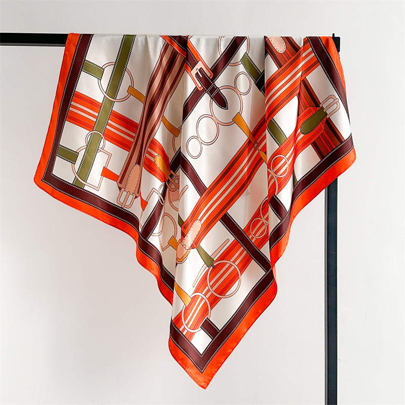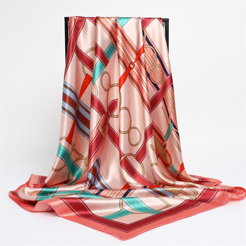 빈티지 링 인쇄 실크 스카프 고급 스카프 숄 여행 선 스크린 대형 사각 스카프 90 새틴 모조 실크 터번 여성용스토어 가기