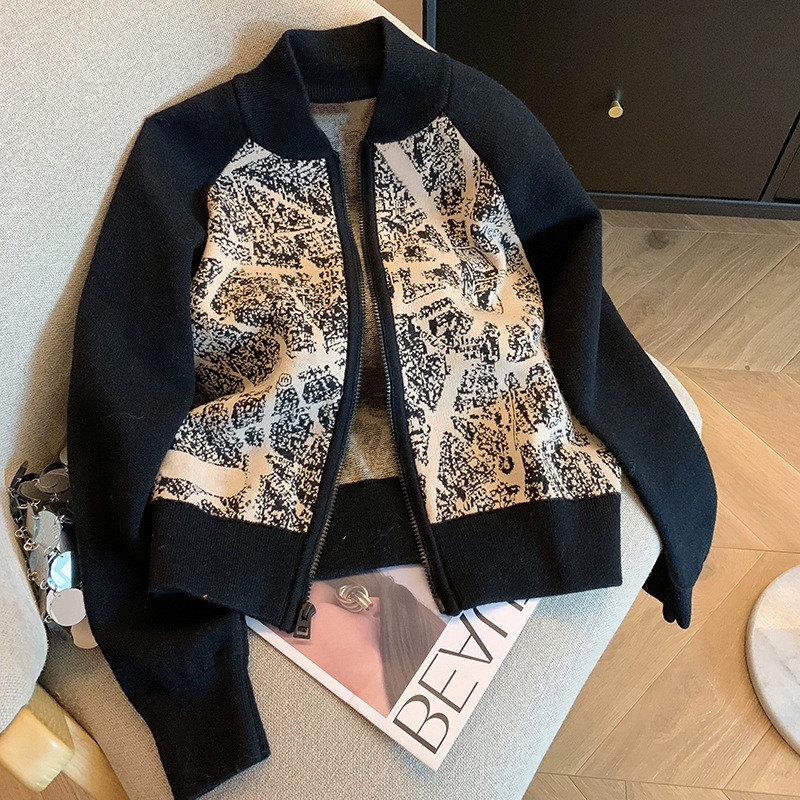 대비 무거운 자수 세로 칼라 지퍼 스웨터 카디건 여성의 느슨한 캐주얼 두꺼운 니트 재킷 가을 2023