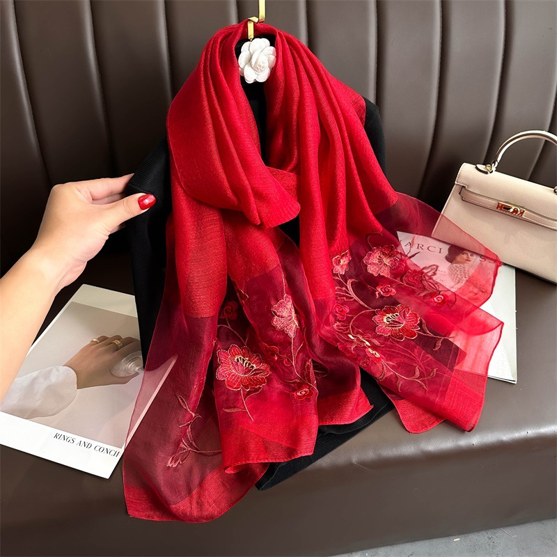 실크 수제 자수 스카프 가을과 겨울 새로운 뽕나무 실크 자수 스카프 기질 만들기 쉬운 장식 목도리 도매