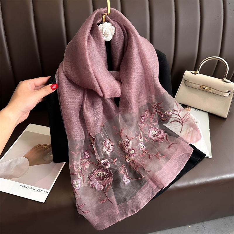 실크 수제 자수 스카프 가을과 겨울 새로운 뽕나무 실크 자수 스카프 기질 만들기 쉬운 장식 목도리 도매스토어 가기