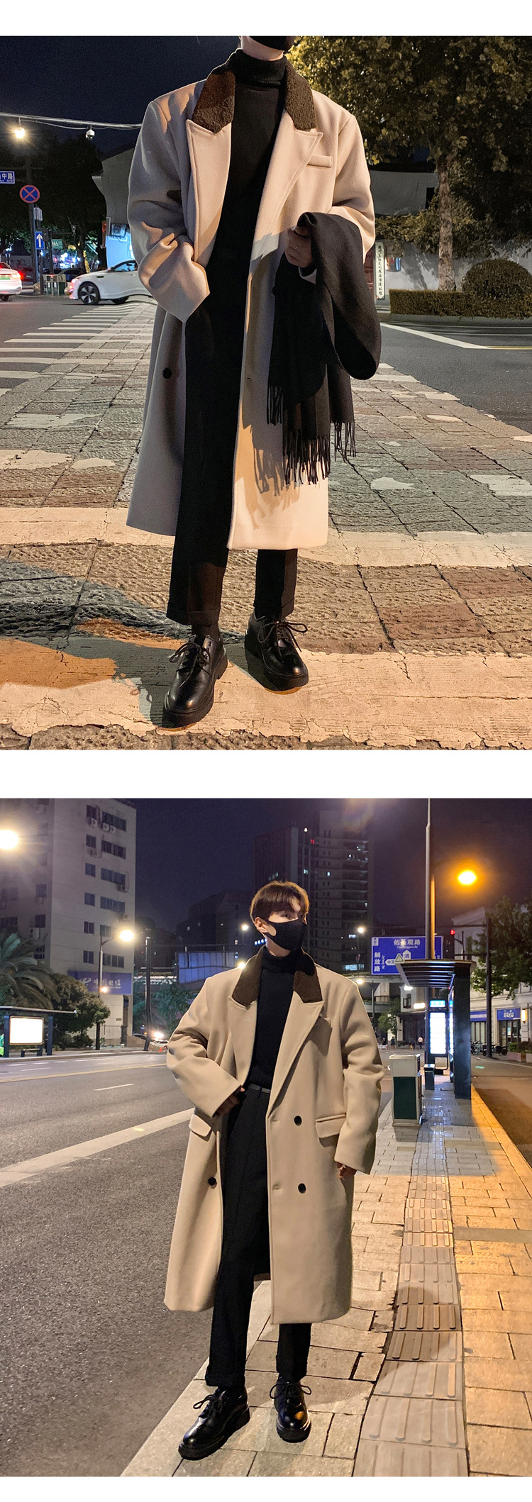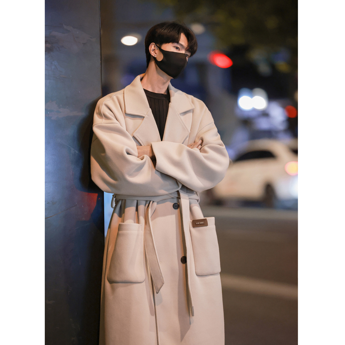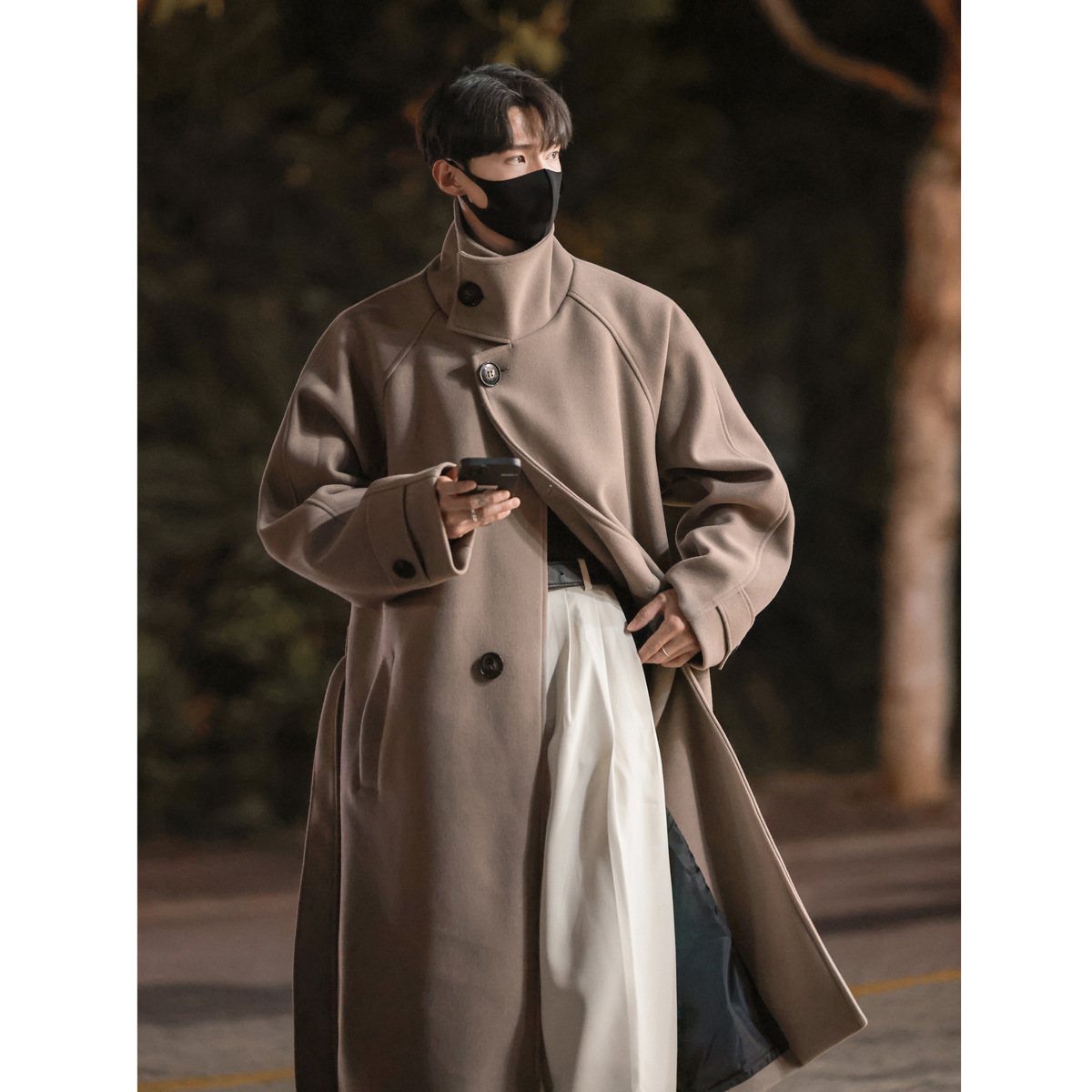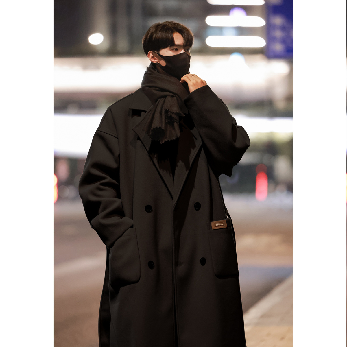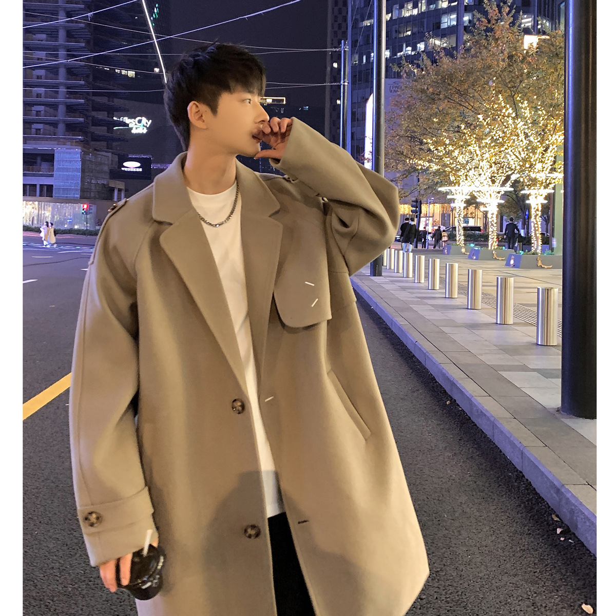 가을과 겨울 코트 남성과 여성의 무릎 길이 모직 코트 중간 길이 겨울 고급 모직 코트 남성용 트렌디 탑스토어 가기