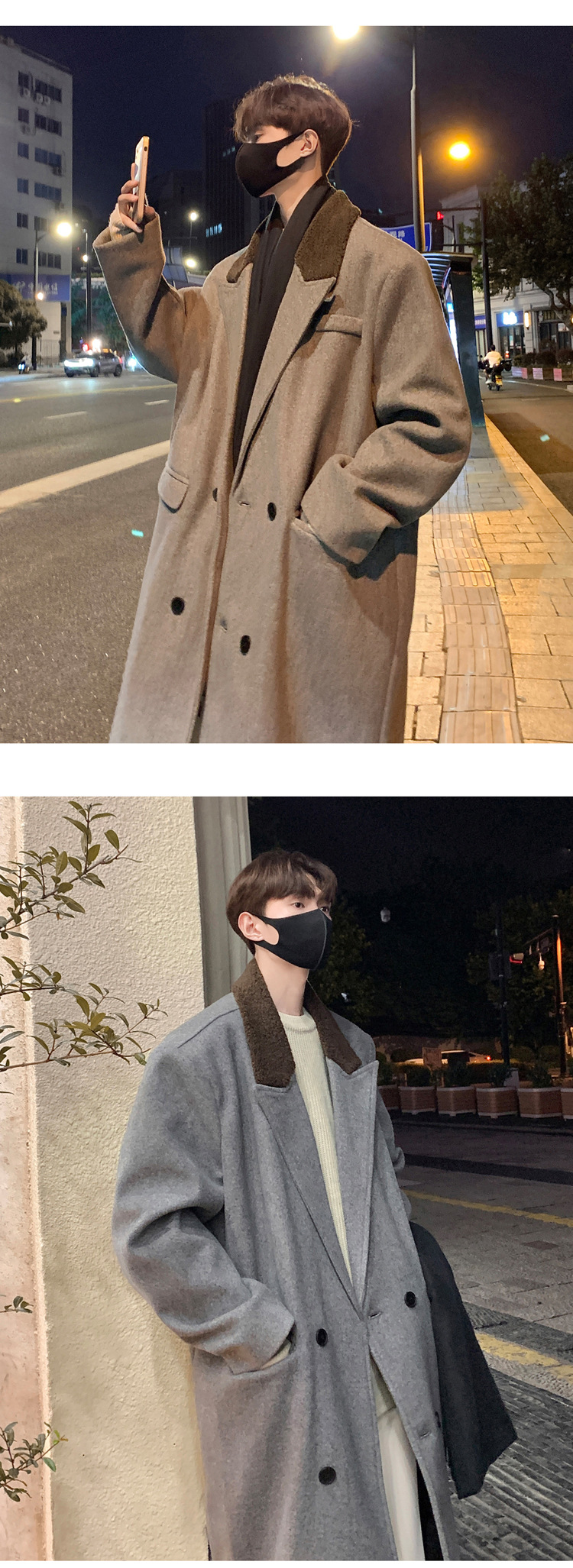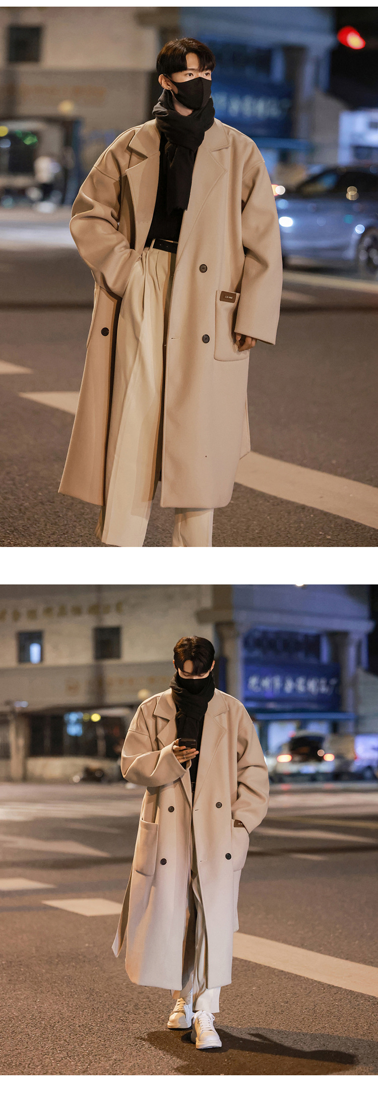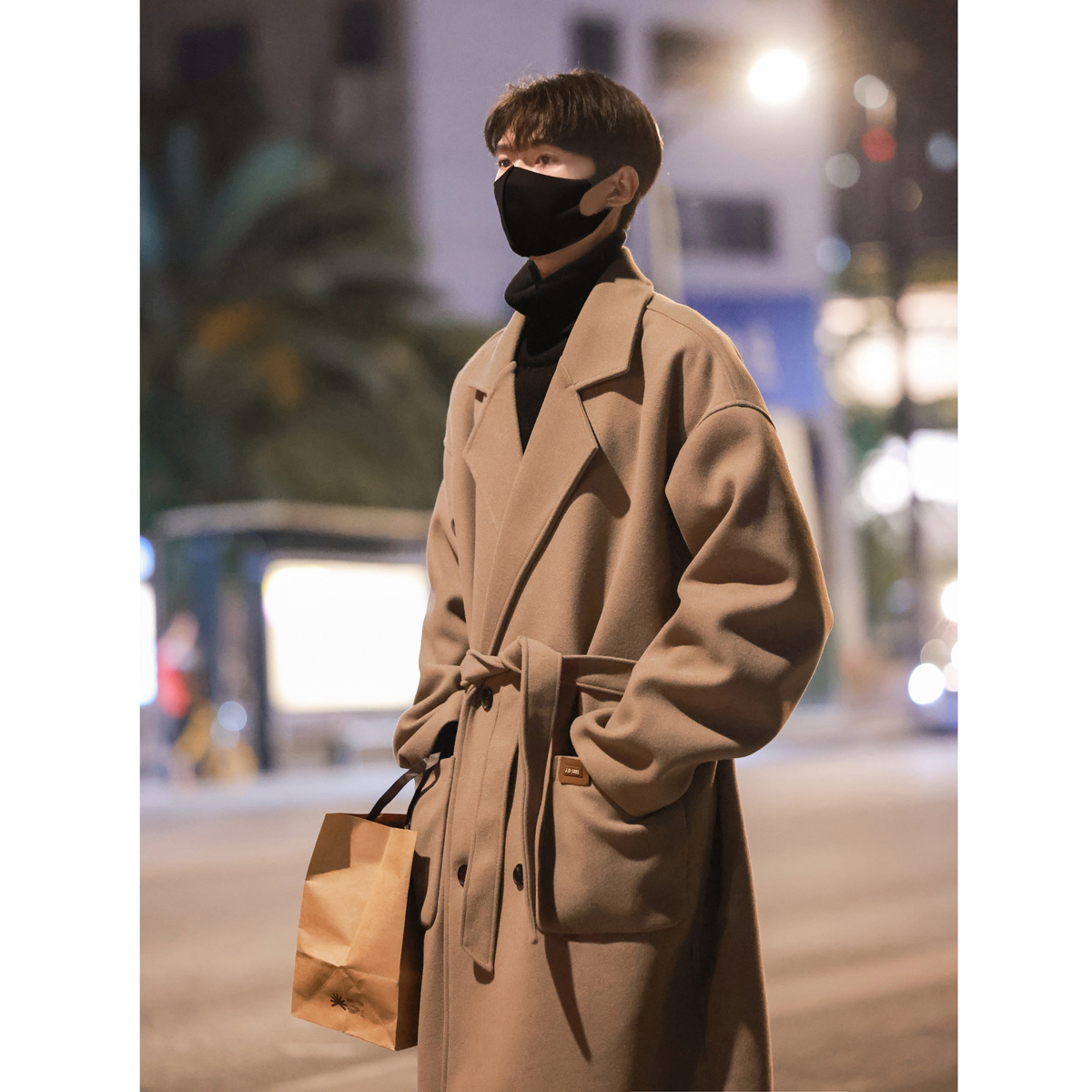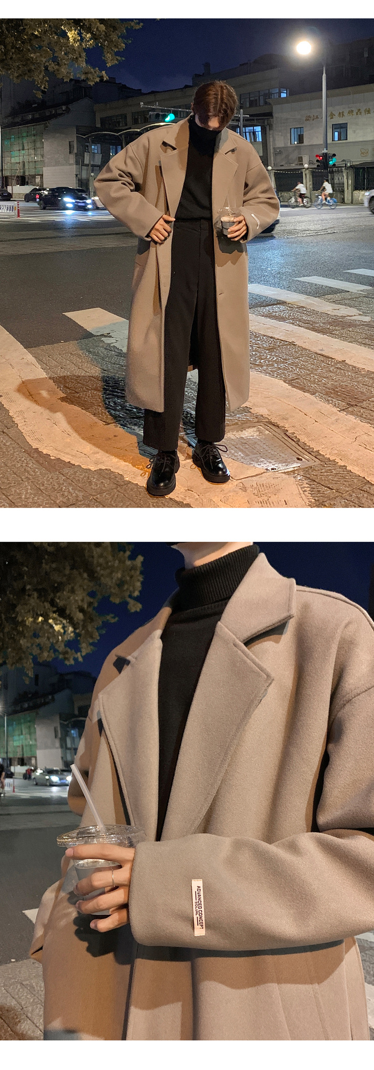 가을과 겨울 코트 남성과 여성의 무릎 길이 모직 코트 중간 길이 겨울 고급 모직 코트 남성용 트렌디 탑스토어 가기