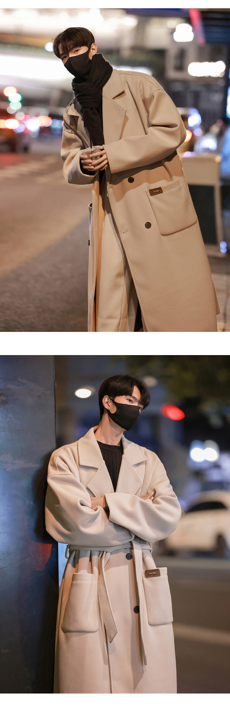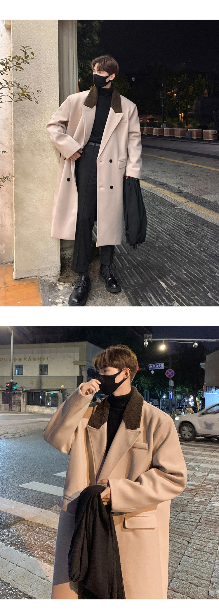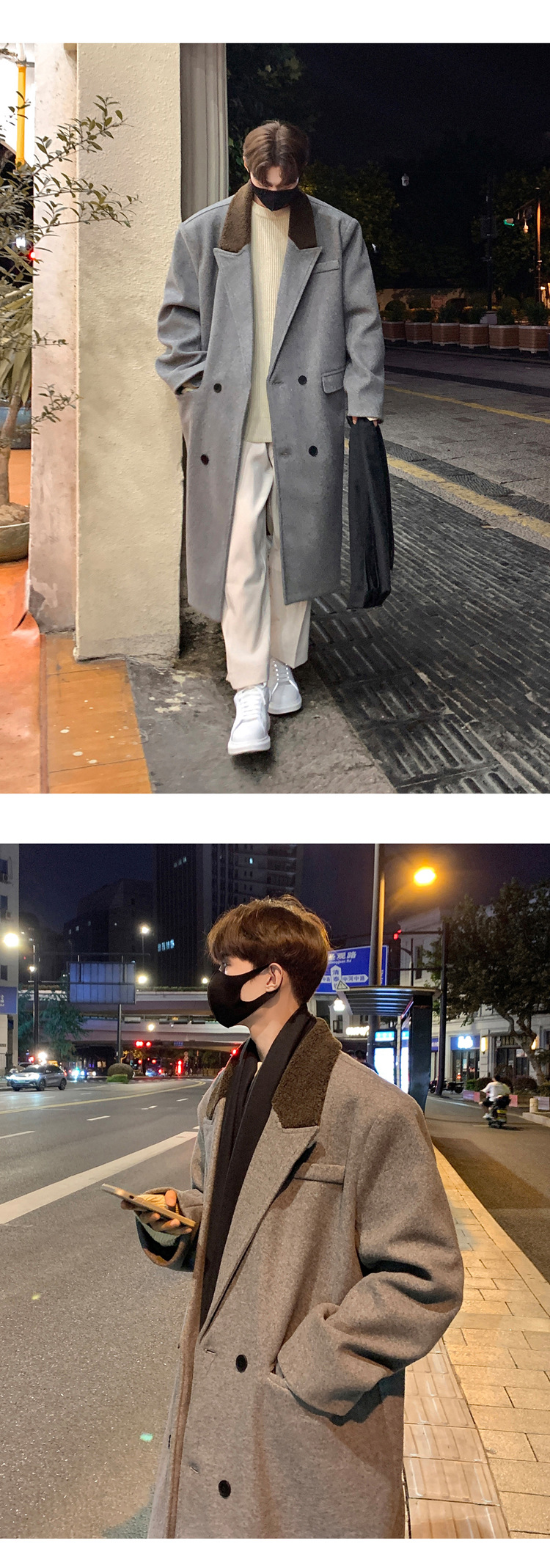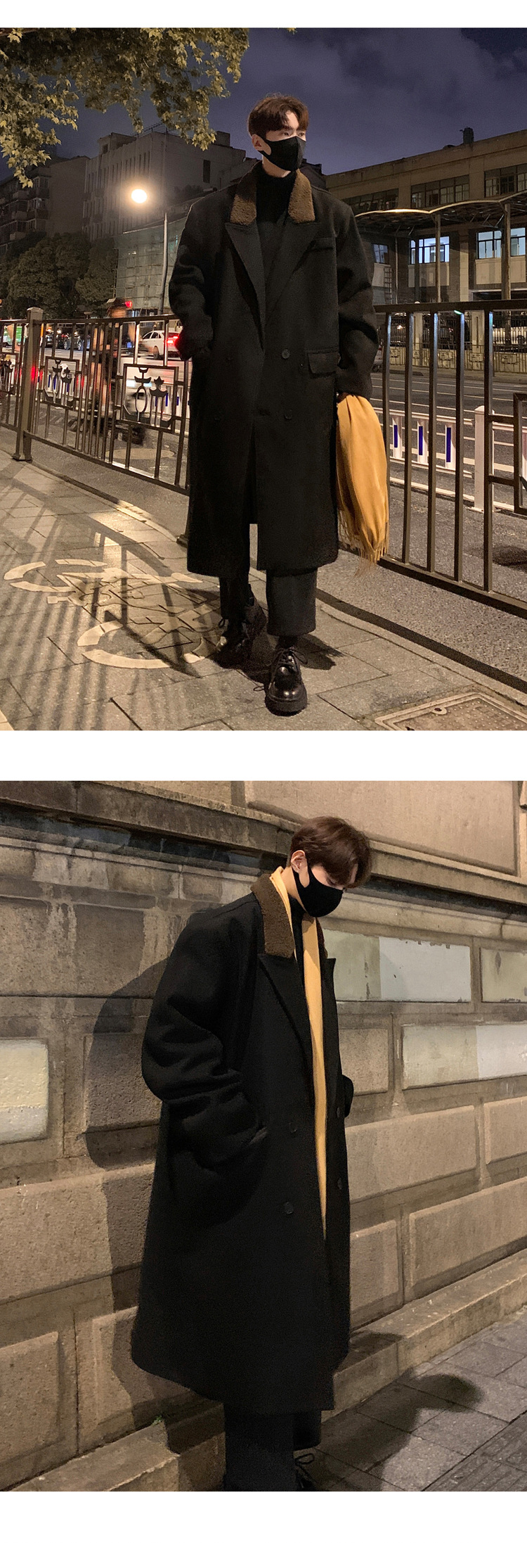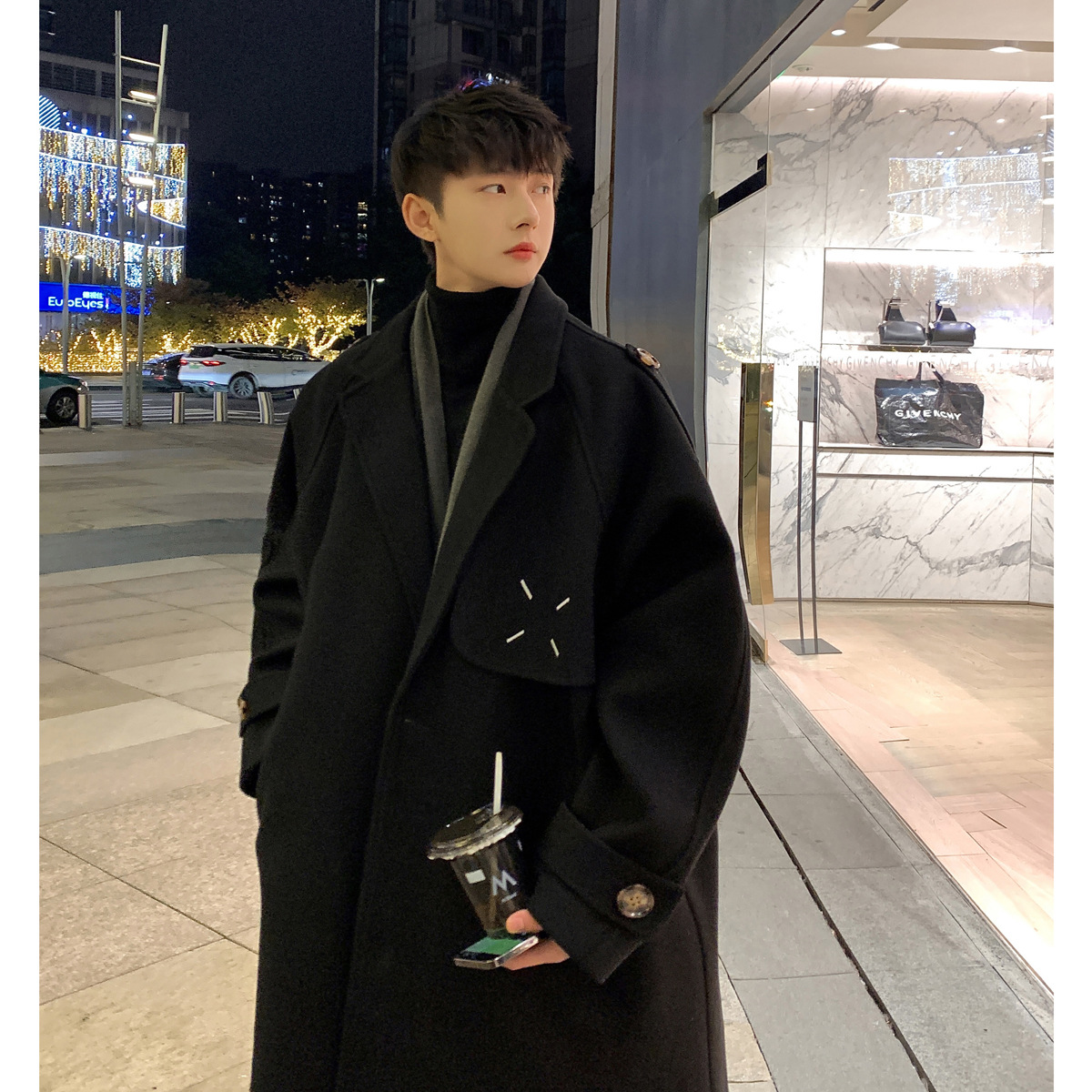 가을과 겨울 코트 남성과 여성의 무릎 길이 모직 코트 중간 길이 겨울 고급 모직 코트 남성용 트렌디 탑스토어 가기