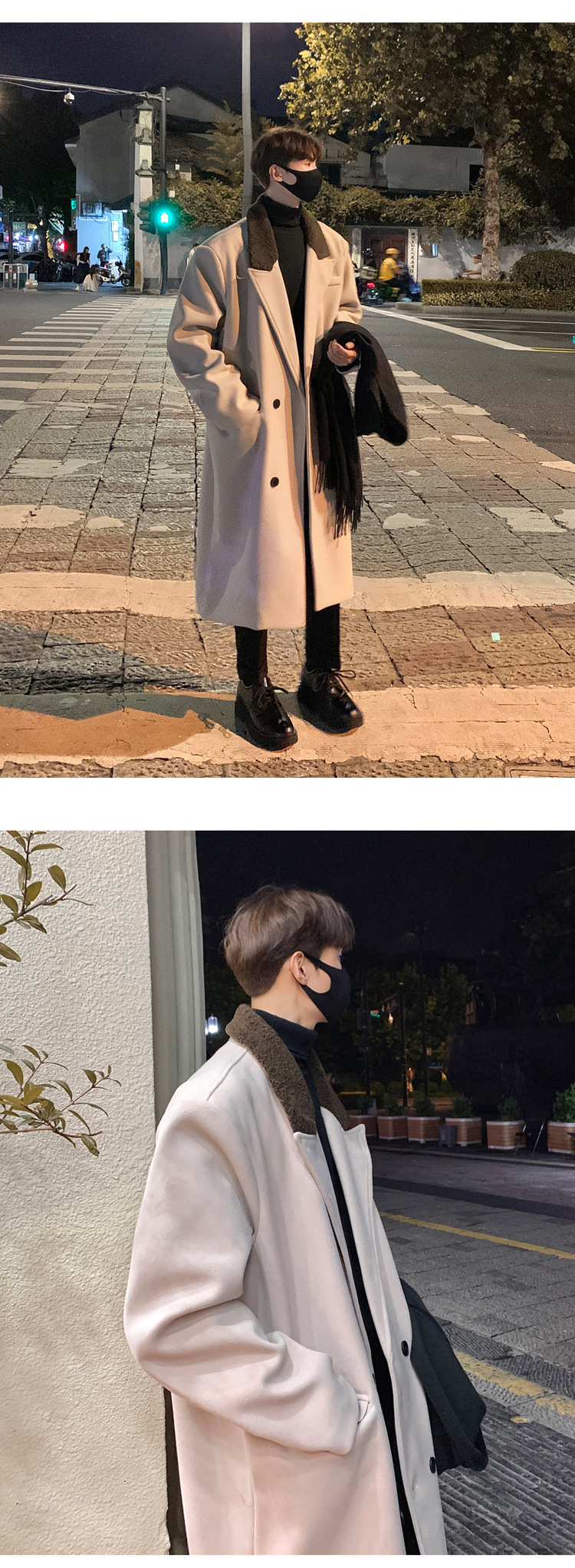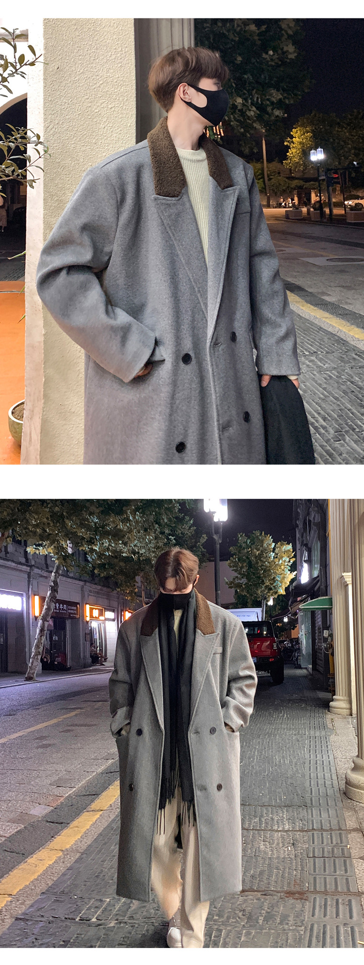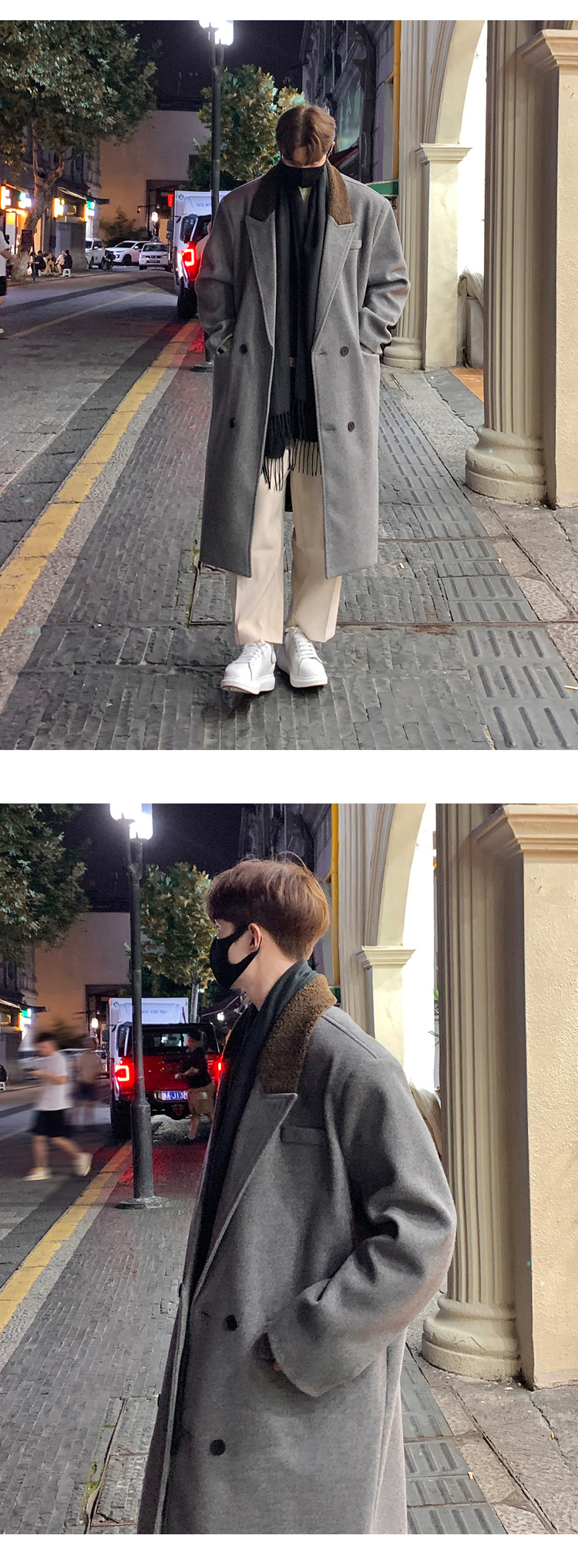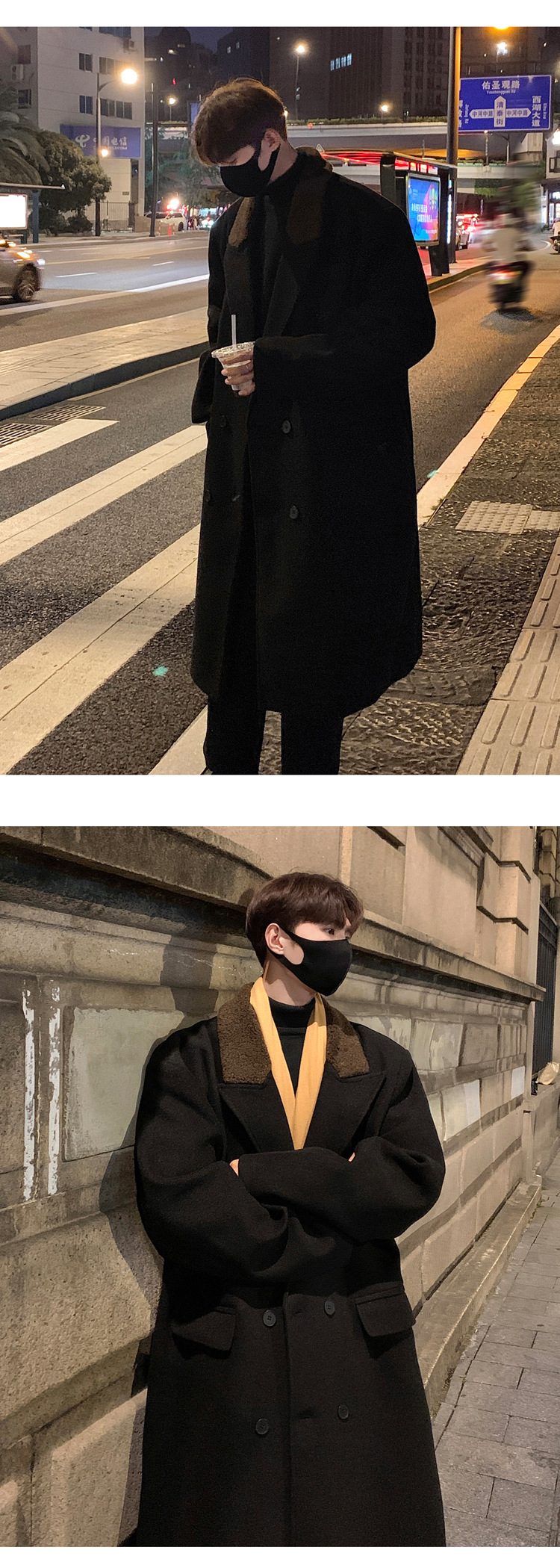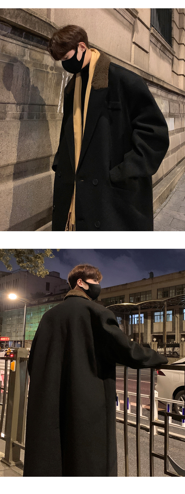 가을과 겨울 코트 남성과 여성의 무릎 길이 모직 코트 중간 길이 겨울 고급 모직 코트 남성용 트렌디 탑스토어 가기