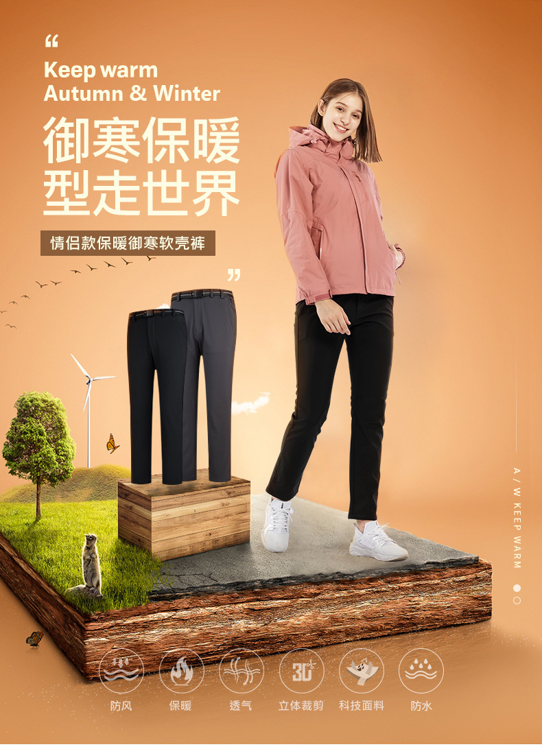 그룹 구매 Daifa 충전 소프트 쉘 바지 가을과 겨울 기모 두꺼운 남성과 여성의 방풍 캐주얼 바지 따뜻한 야외 등산 바지스토어 가기