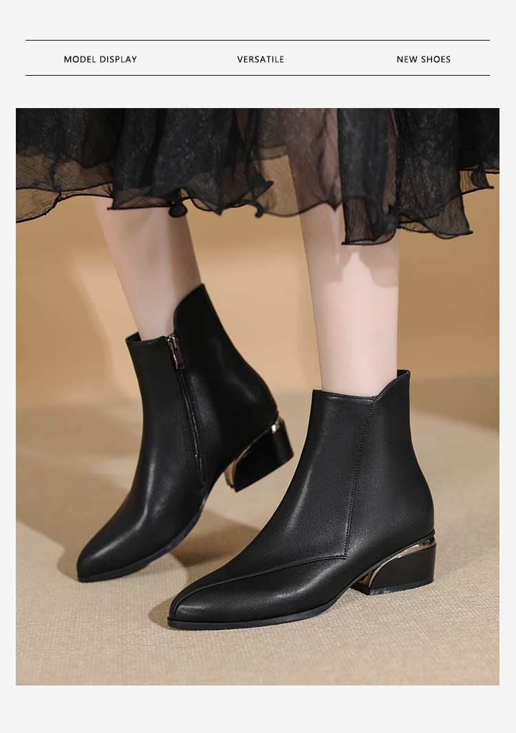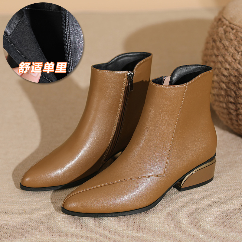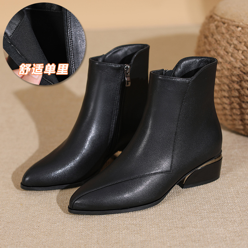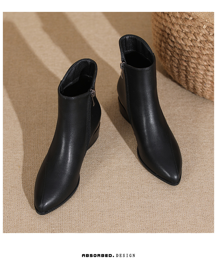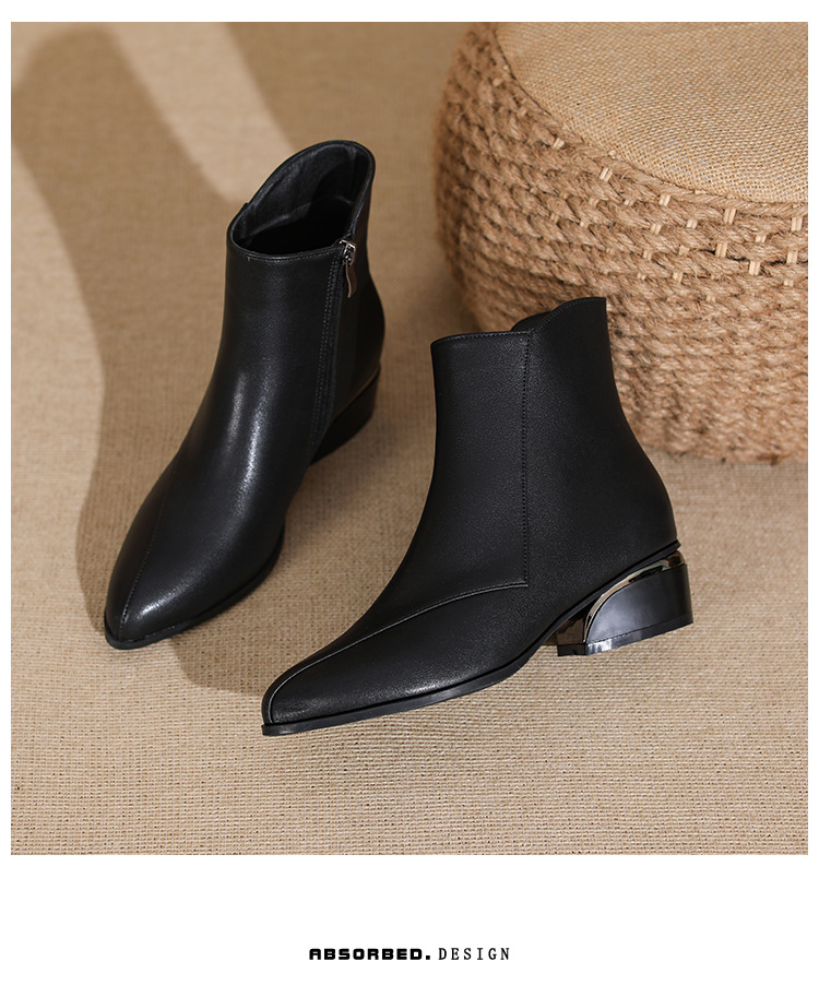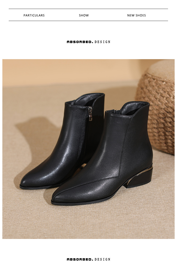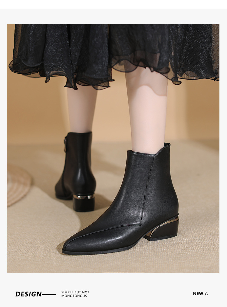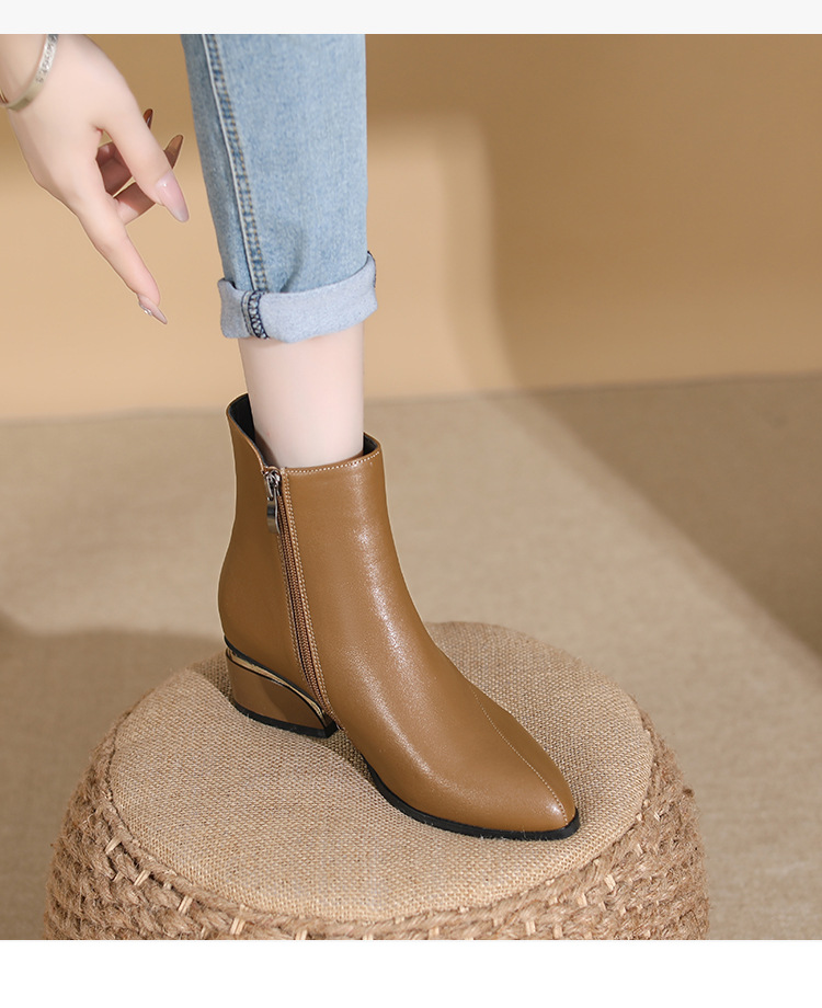 Hui Liya 여성용 짧은 부츠 2025 가을 겨울 새로운 한국 스타일 패션 뾰족한 발가락 낮은 굽 두꺼운 굽 사이드 지퍼 여성용 패션 부츠스토어 가기