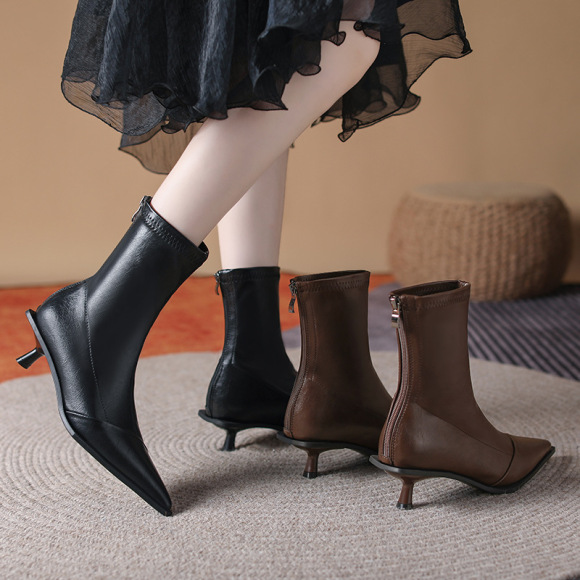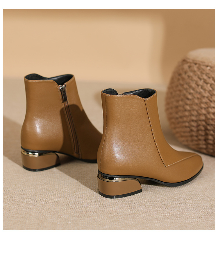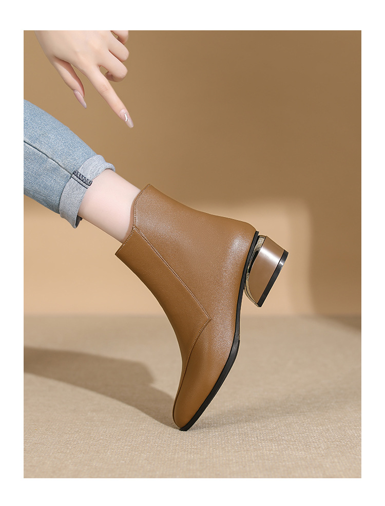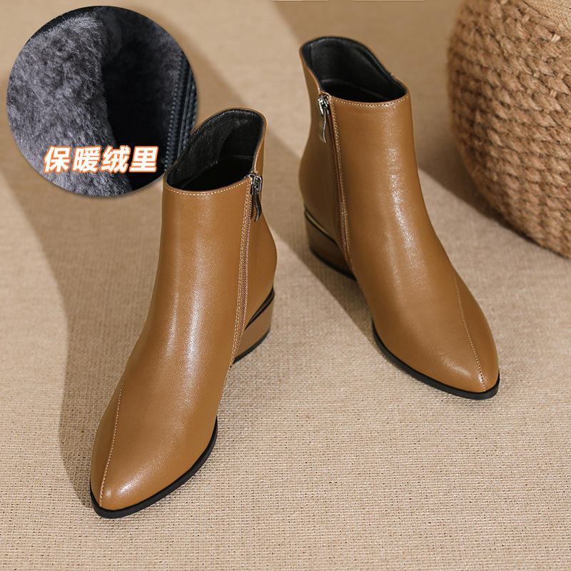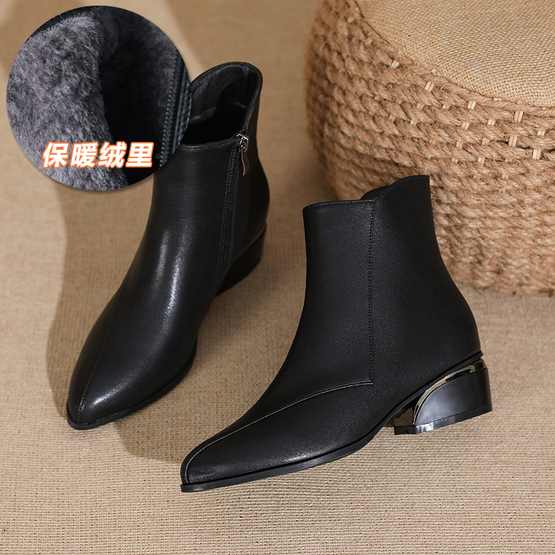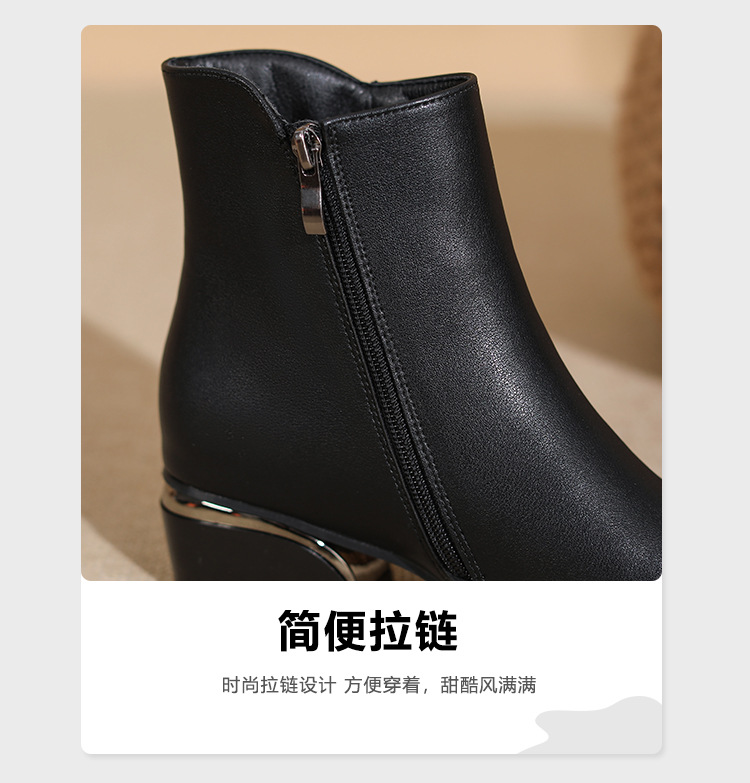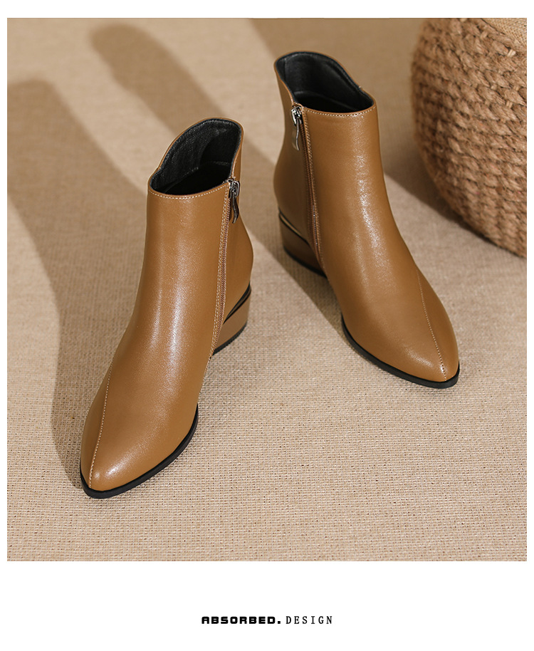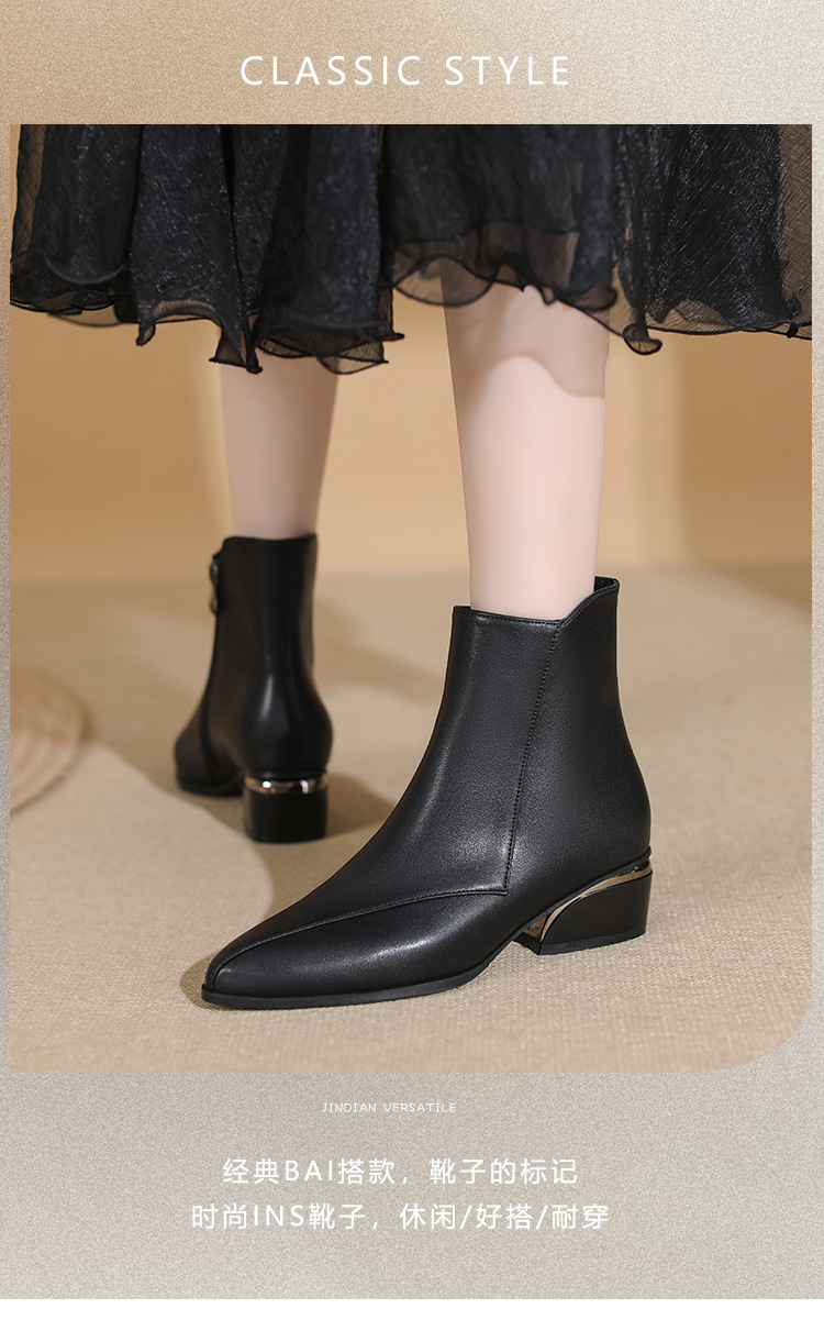 Hui Liya 여성용 짧은 부츠 2025 가을 겨울 새로운 한국 스타일 패션 뾰족한 발가락 낮은 굽 두꺼운 굽 사이드 지퍼 여성용 패션 부츠스토어 가기