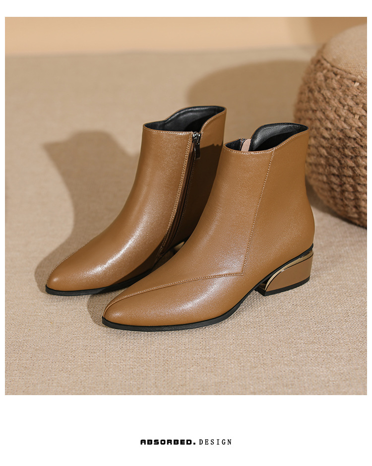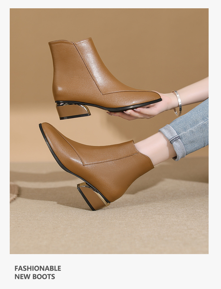 Hui Liya 여성용 짧은 부츠 2025 가을 겨울 새로운 한국 스타일 패션 뾰족한 발가락 낮은 굽 두꺼운 굽 사이드 지퍼 여성용 패션 부츠