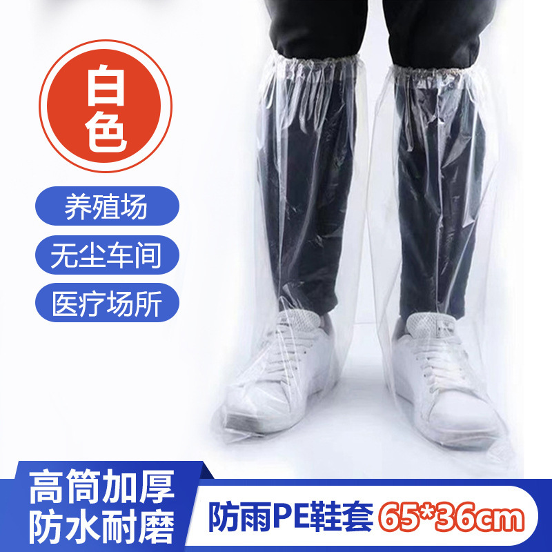 일회용 비 신발 커버 방비 격리 발 커버 성인 긴 두꺼운 투명 신발 커버 방수 비옷 부츠 세트