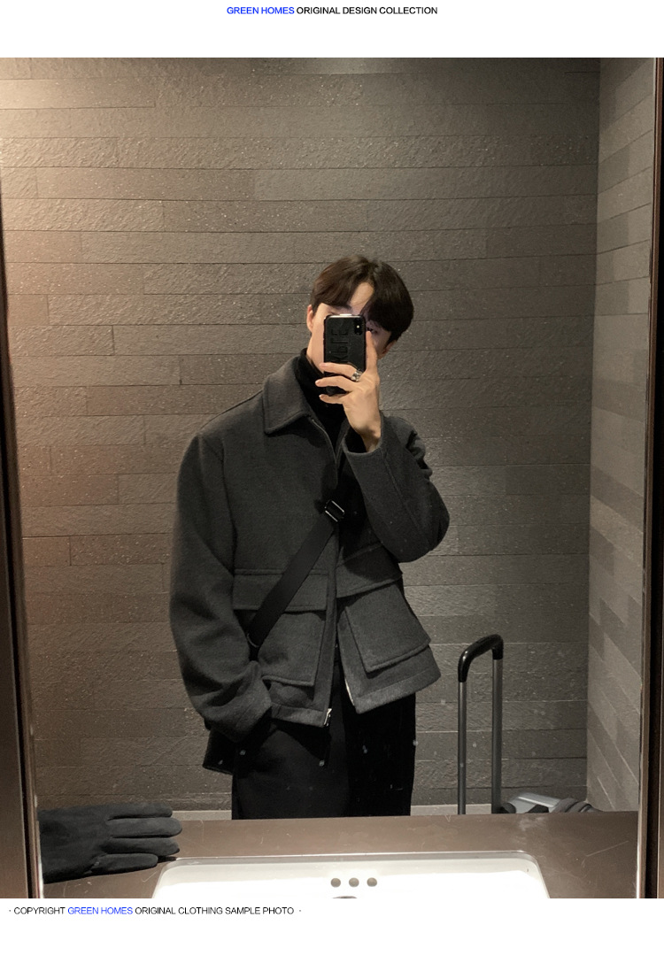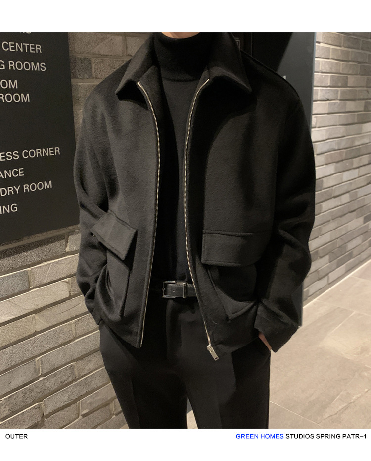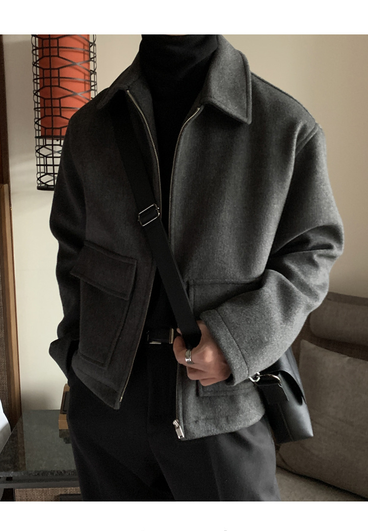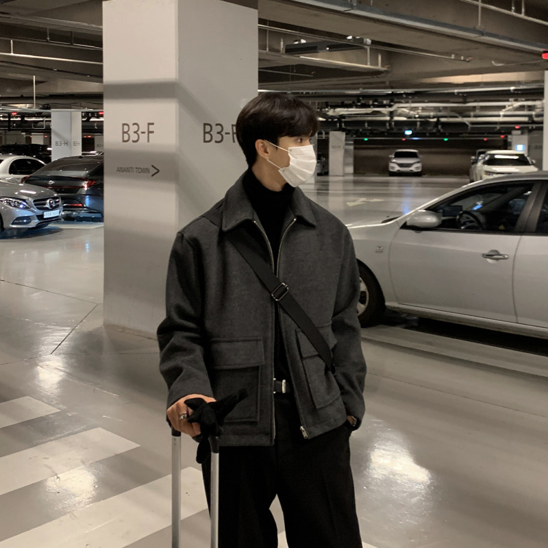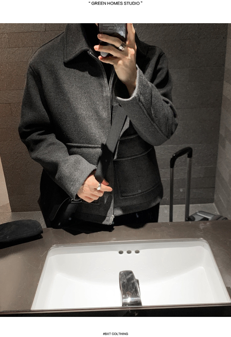 ASCLO 인기 신상 재킷 모직 코트 남성용 짧은 스타일 캐주얼 한국 스타일 작업복 멋진 모직 코트 트렌디스토어 가기