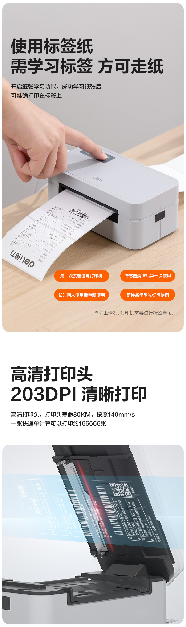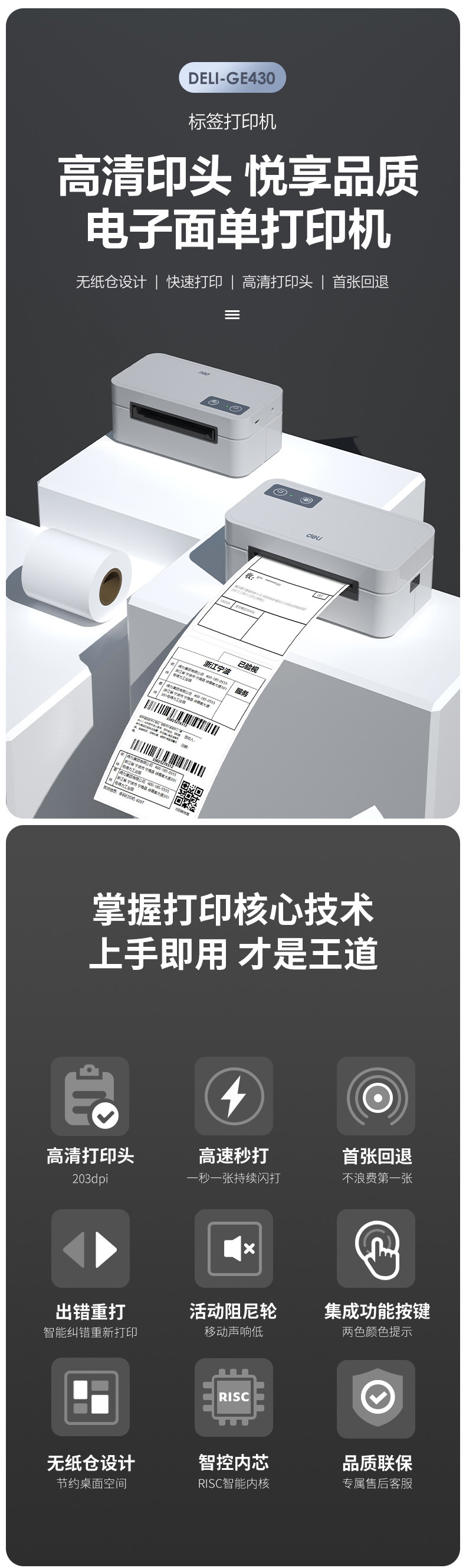 델리 열 라벨 프린터 익스프레스 단일 전자 표면 단일 프린터 종이없는 창고 프린터 GE430