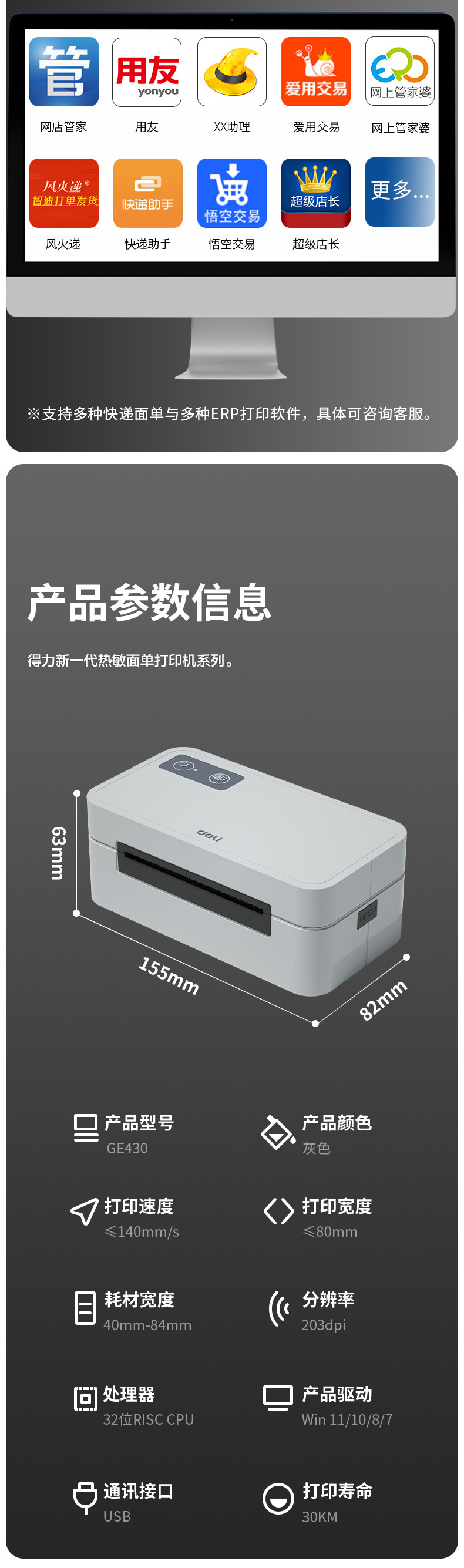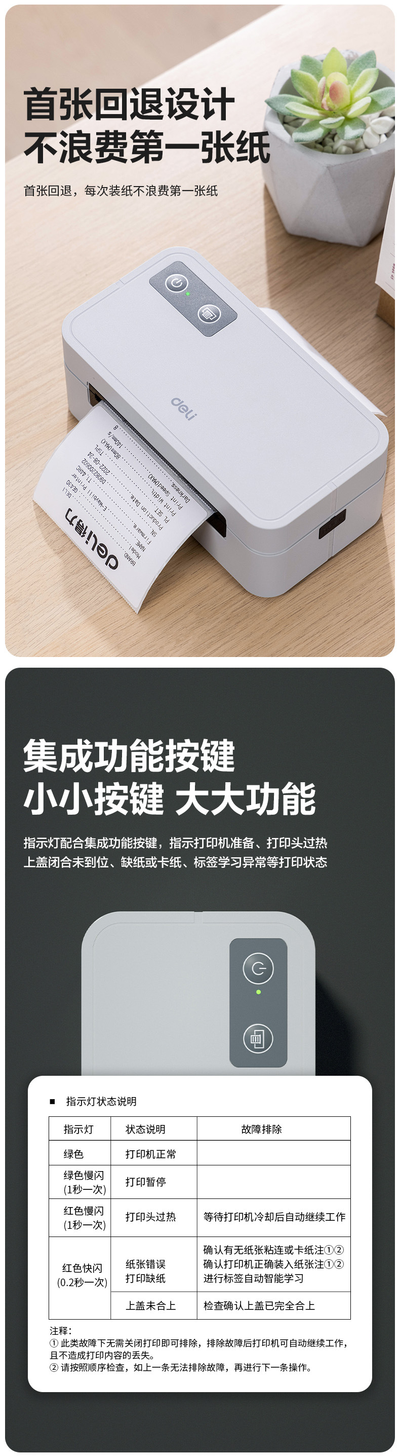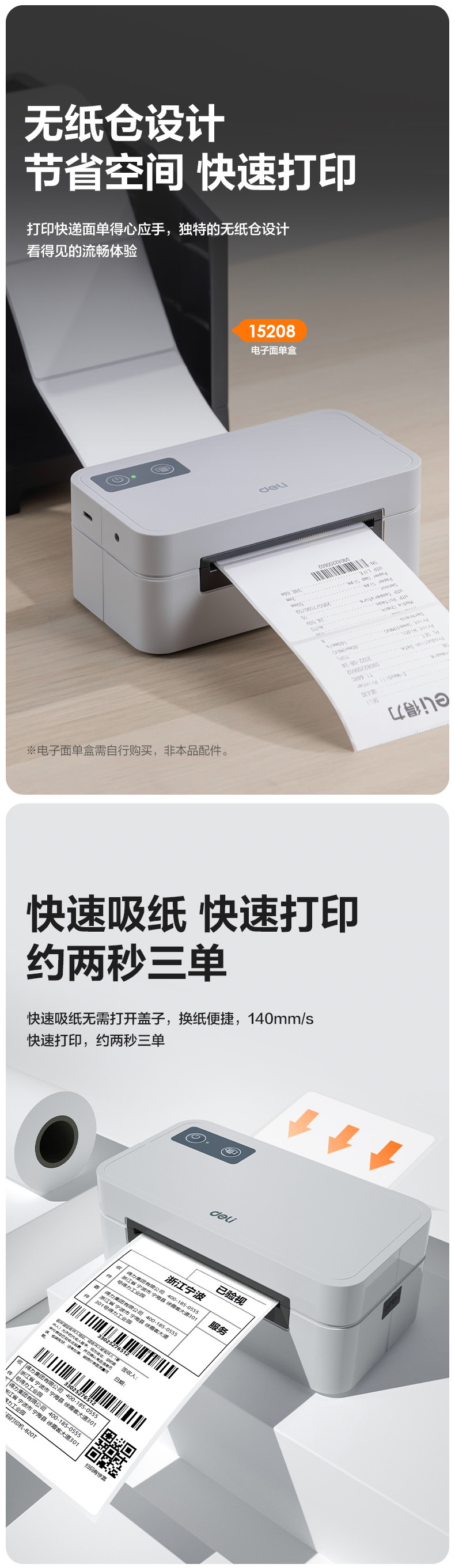 델리 열 라벨 프린터 익스프레스 단일 전자 표면 단일 프린터 종이없는 창고 프린터 GE430스토어 가기