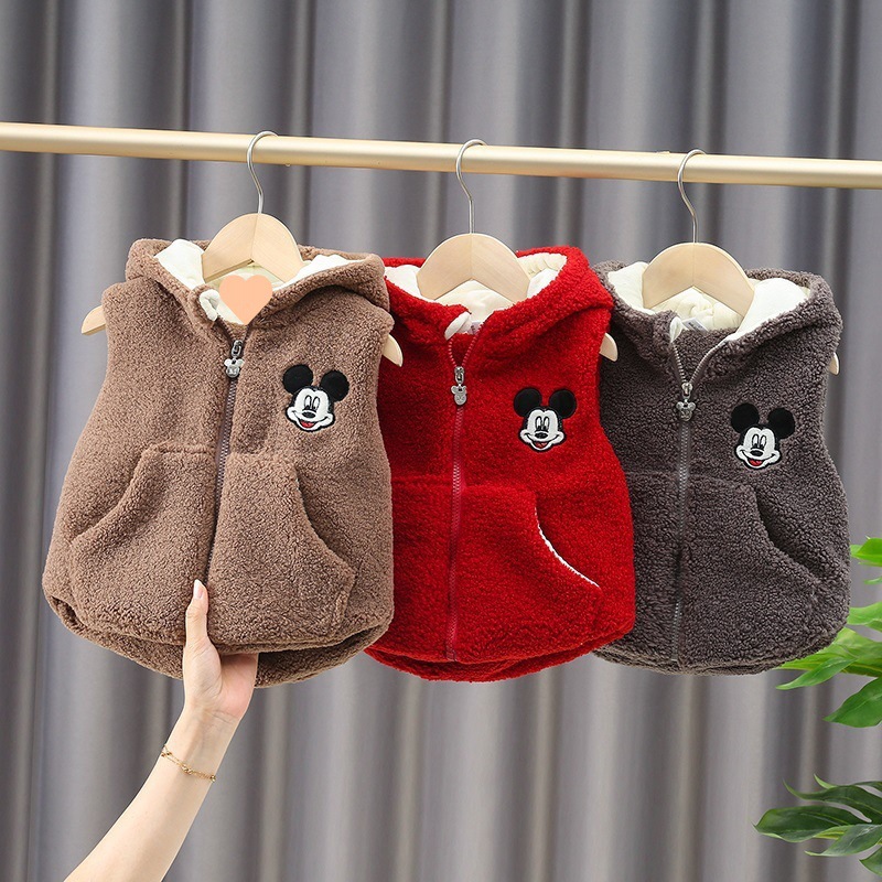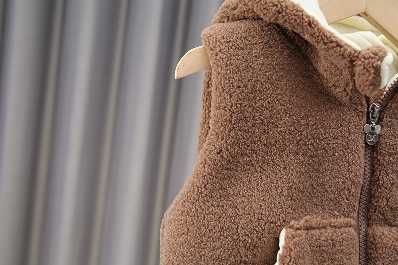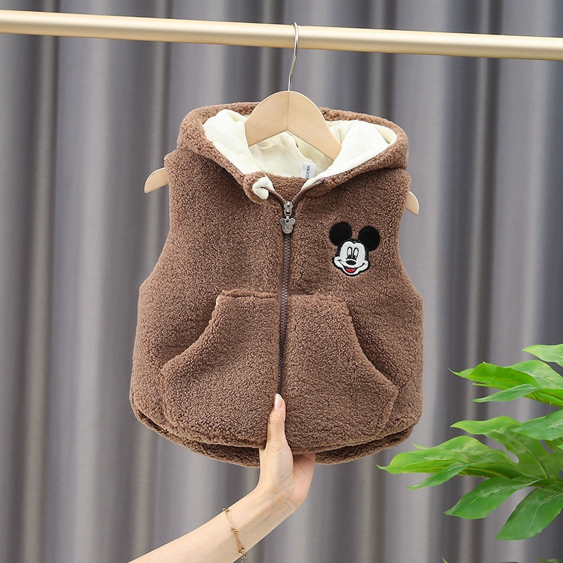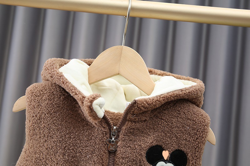 어린이 조끼 가을과 겨울 2023 새로운 아기 서양 스타일 모자 두꺼운 조끼 아기 슈퍼 귀여운 만화 조끼스토어 가기