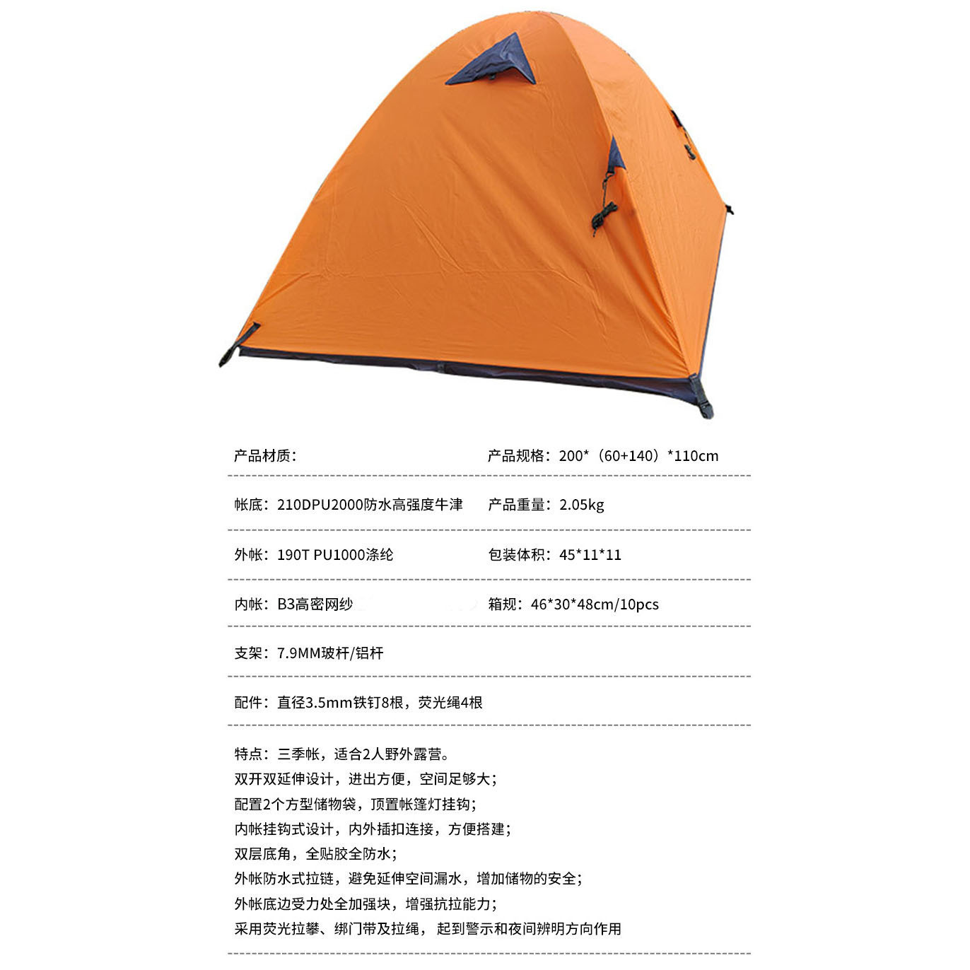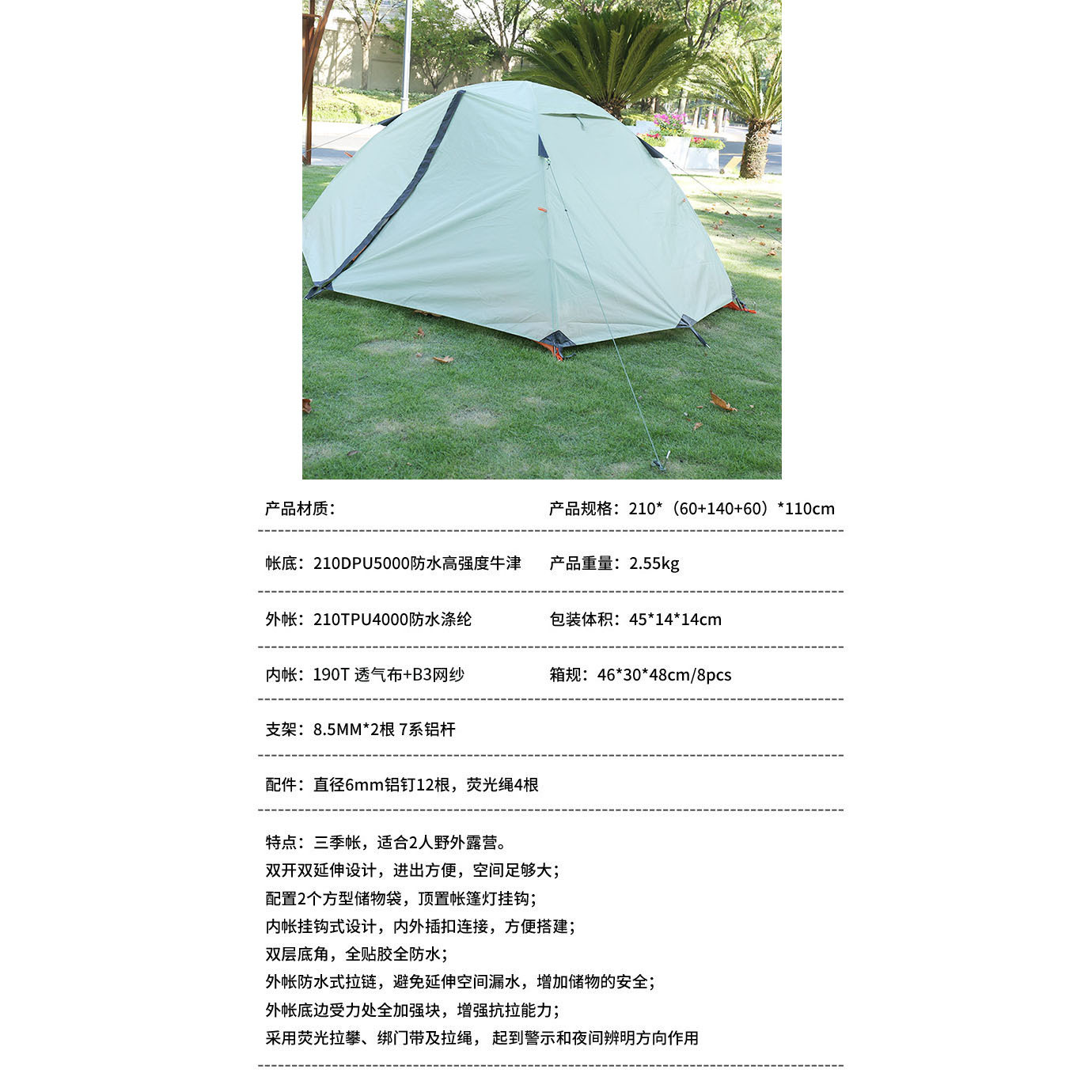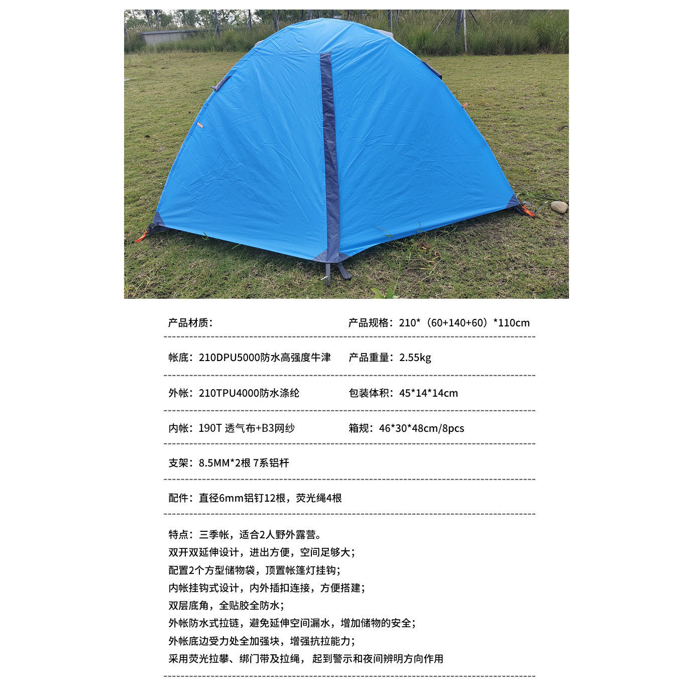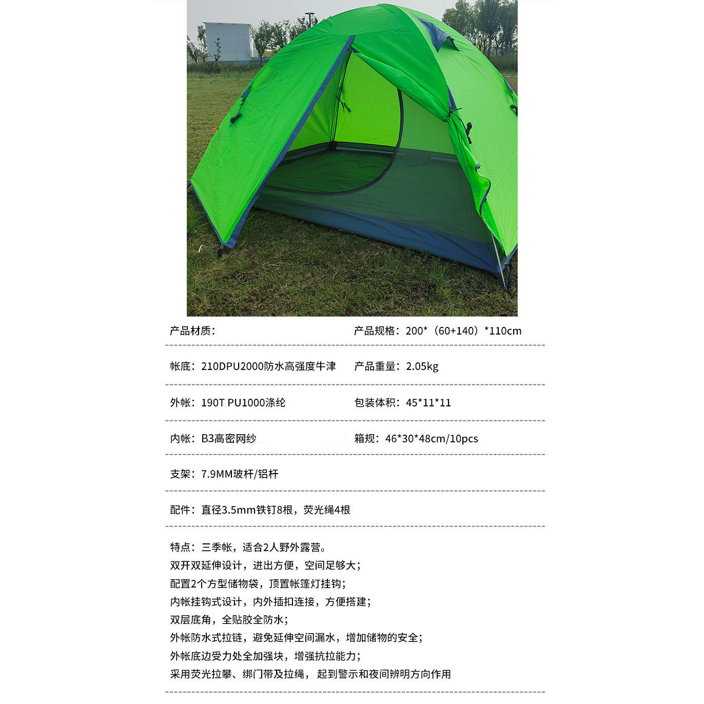 더블 더블 알루미늄 극 텐트 필드 2 명 방풍 비바람 방수 가족 캠핑 캠핑 3 시즌 계정 제조 업체