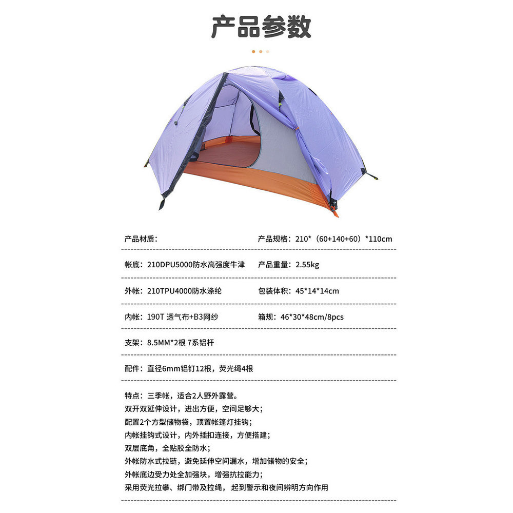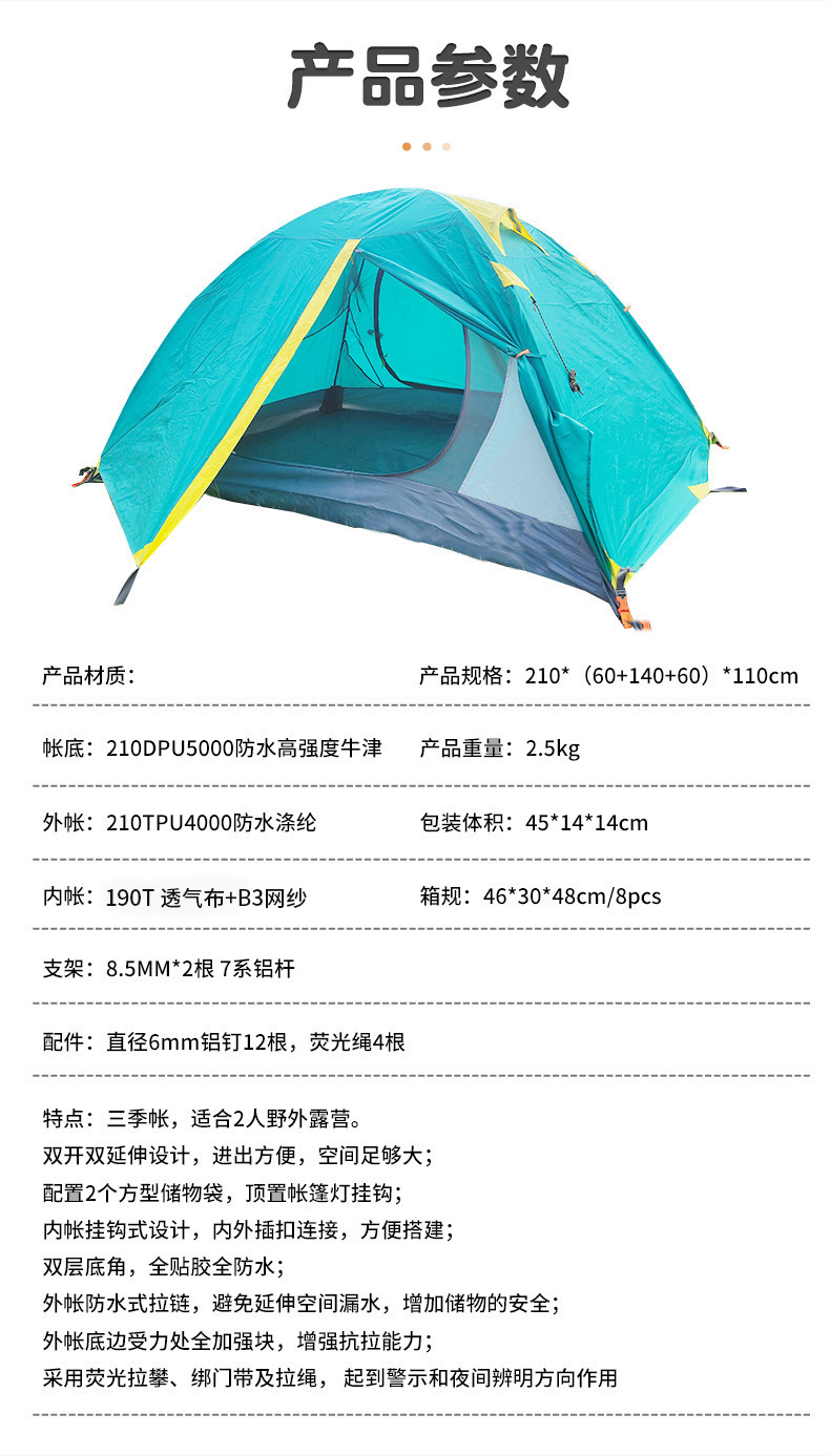 더블 더블 알루미늄 극 텐트 필드 2 명 방풍 비바람 방수 가족 캠핑 캠핑 3 시즌 계정 제조 업체스토어 가기