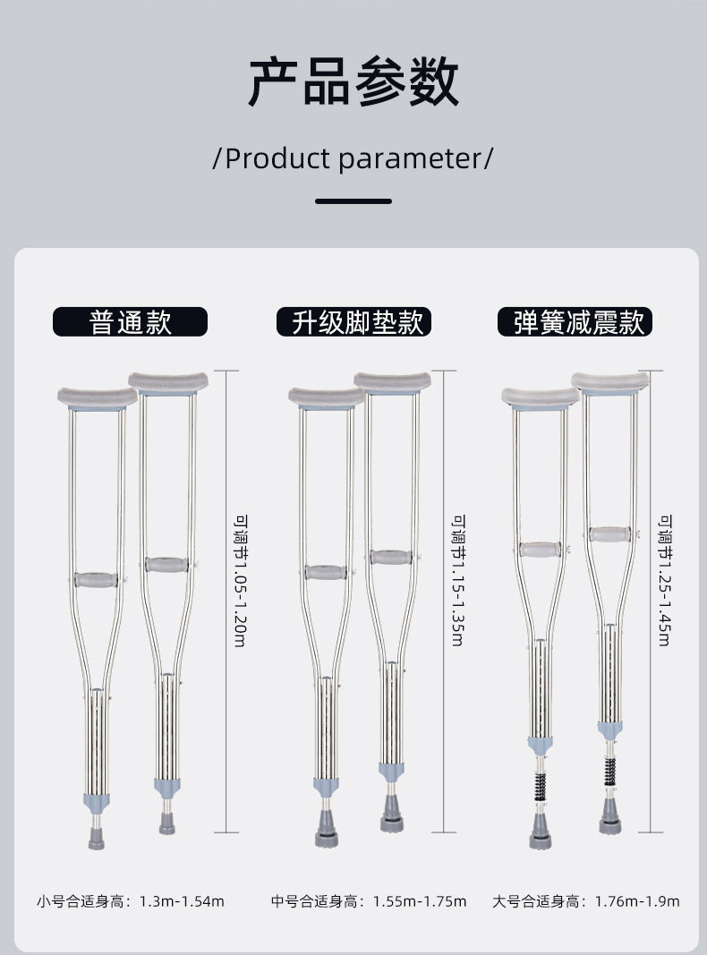 의료용 목발, 겨드랑이 목발, 이중 목발, 목발 골절, 청소년 및 노인을위한 재활, 미끄럼 방지, 가볍고 조절 가능