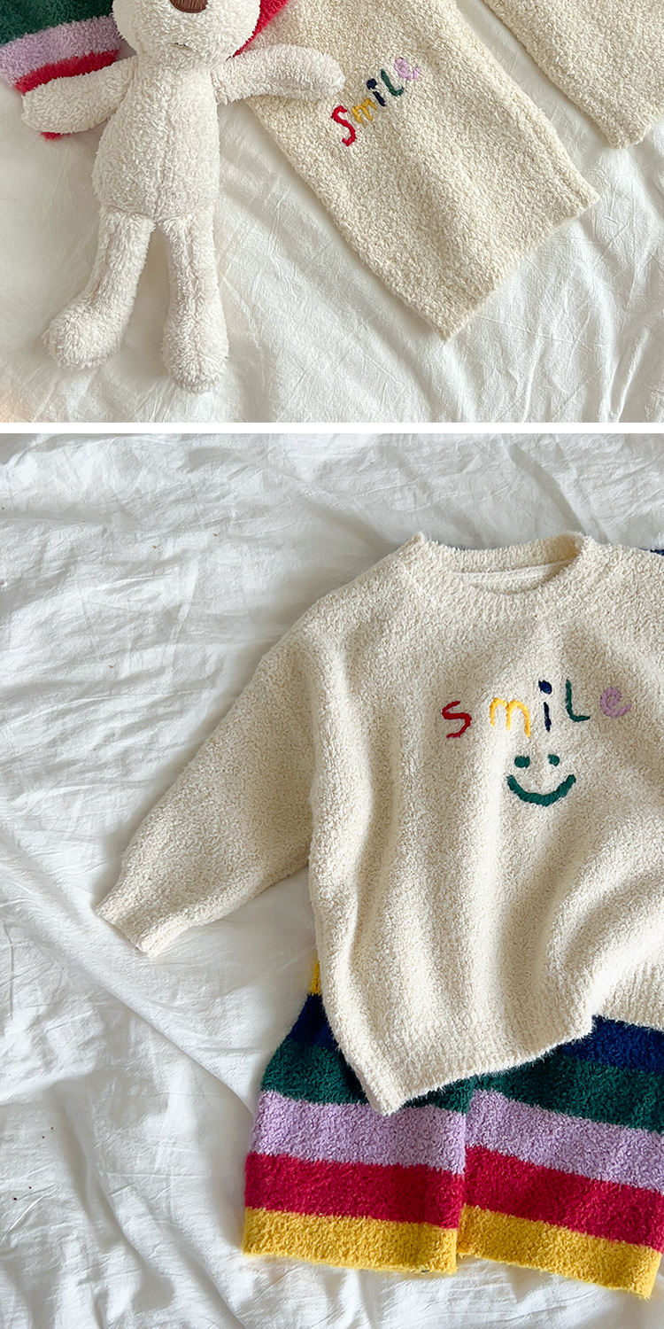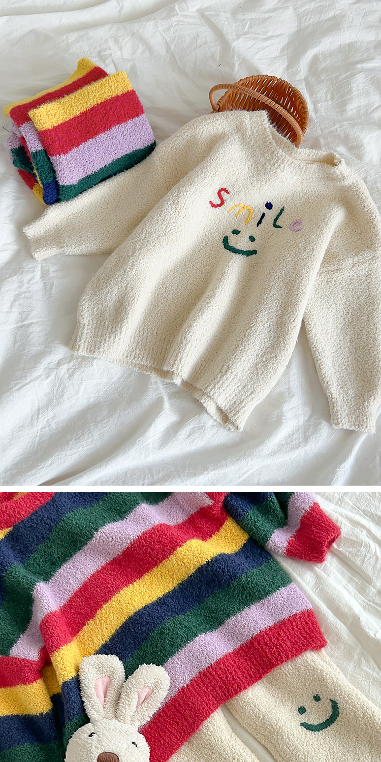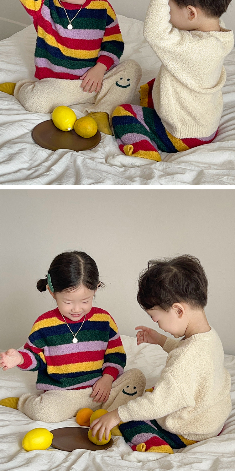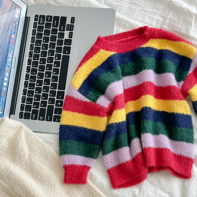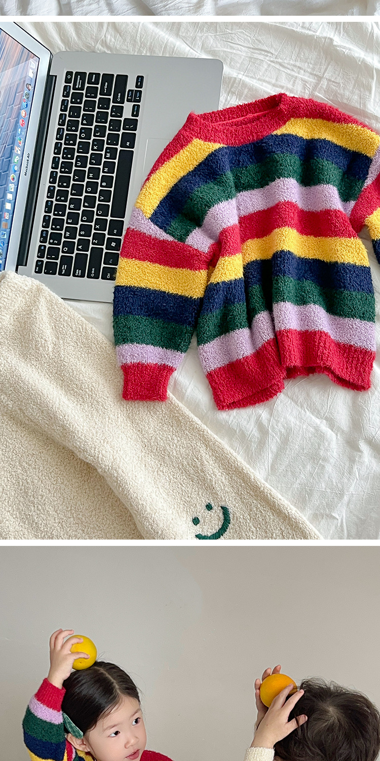어린이 반 벨벳 잠옷 세트 소년 레인보우 스트립 가정 옷 따뜻한 두꺼운 산호 벨벳 여아 겨울 가정 옷