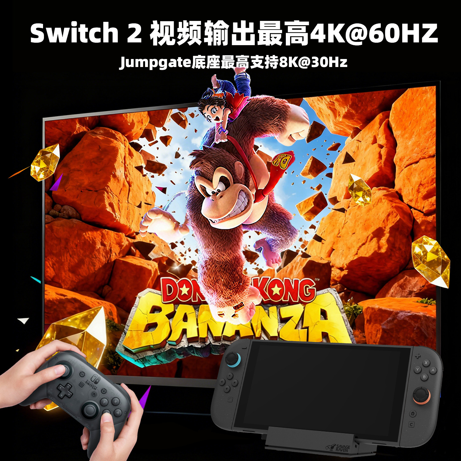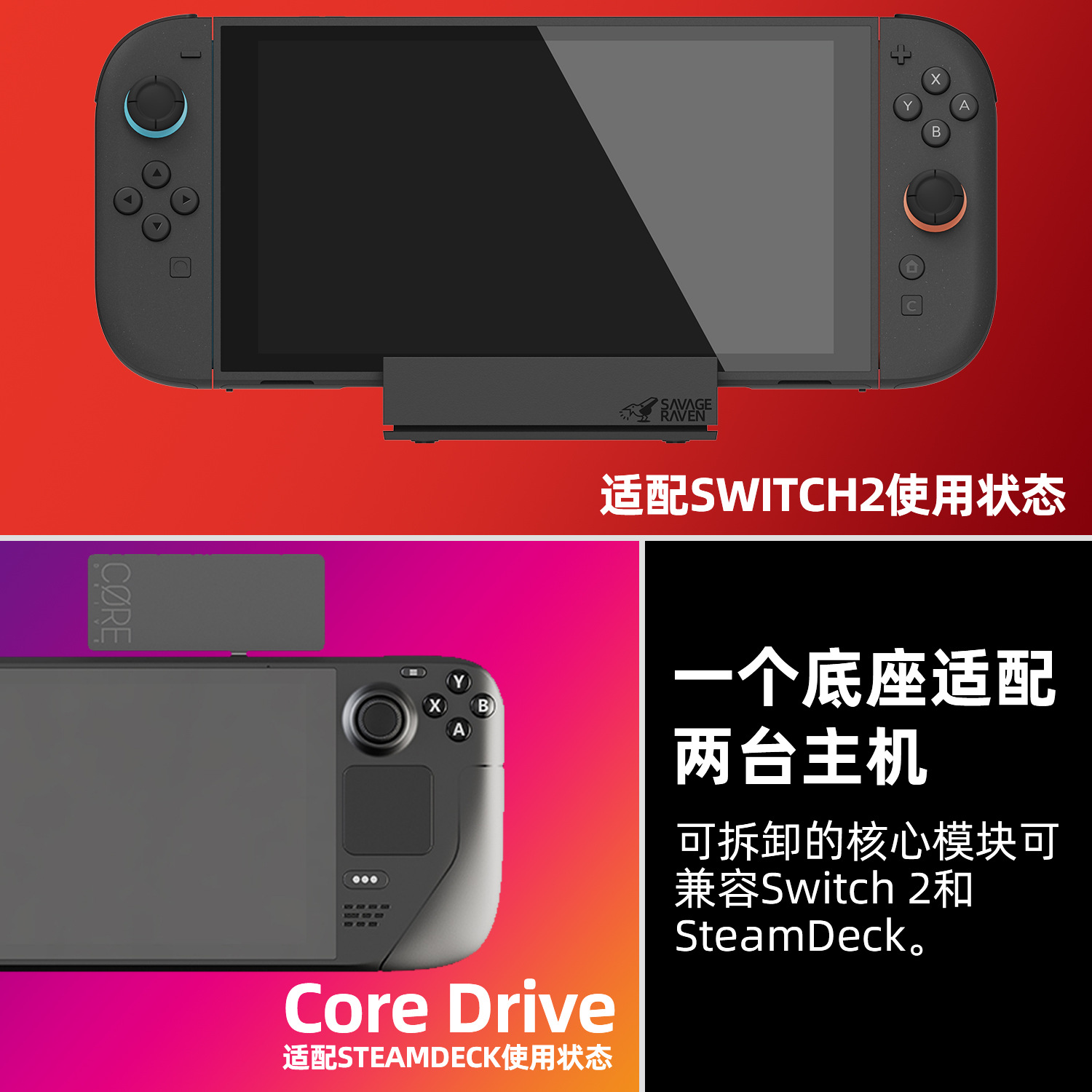 Skull & Co. Switch 2 휴대용 도킹 스테이션 사바지 레이븐 SD 스크린 USB 확장 도크 호환스토어 가기