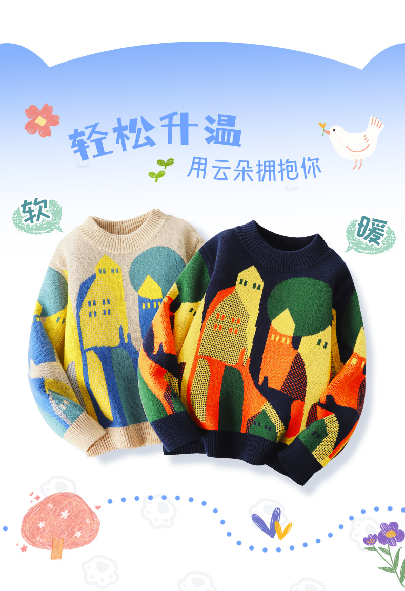 남아용 스웨터 신상 순면 풀오버 남아 스웨터 아동용 한국 스타일 스웨터 중대형 아동용 가을 겨울용 플리스 상의스토어 가기