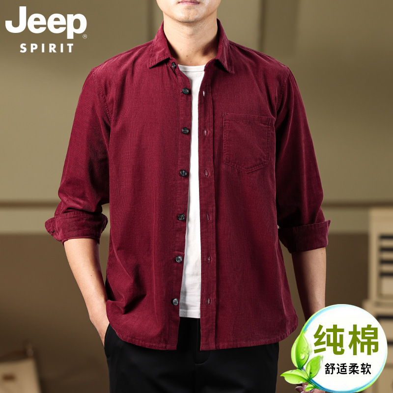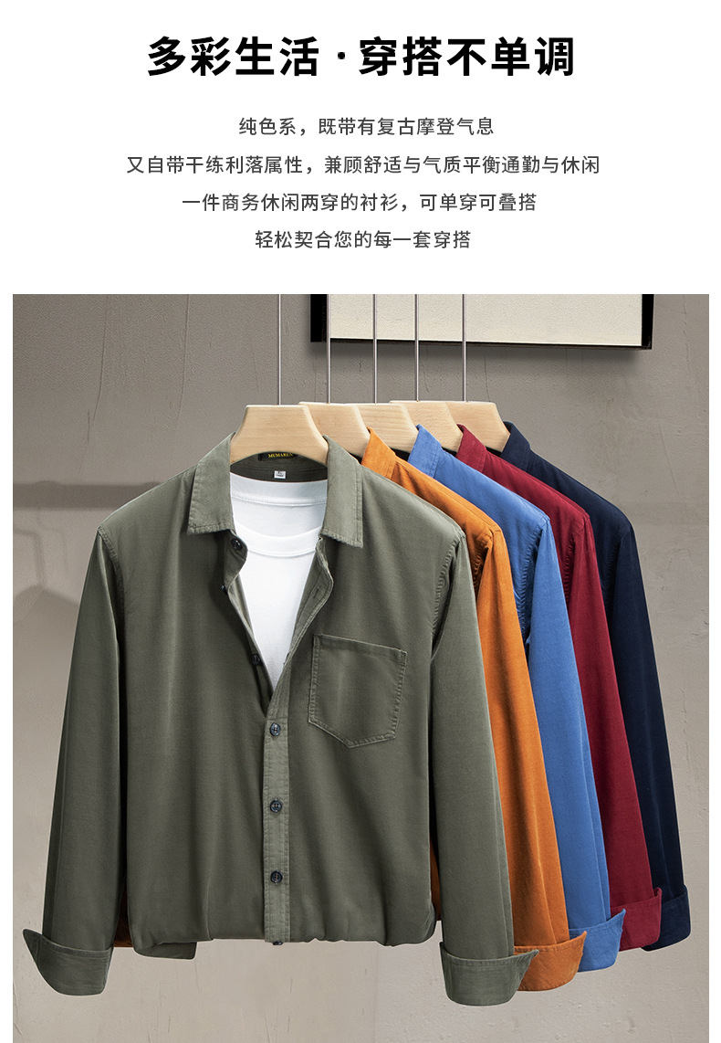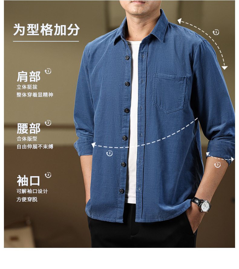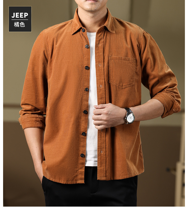2024 뉴 코듀로이 셔츠 남성 가을과 겨울 긴 소매 느슨한 옷깃 아빠 코튼 작업복 재킷스토어 가기