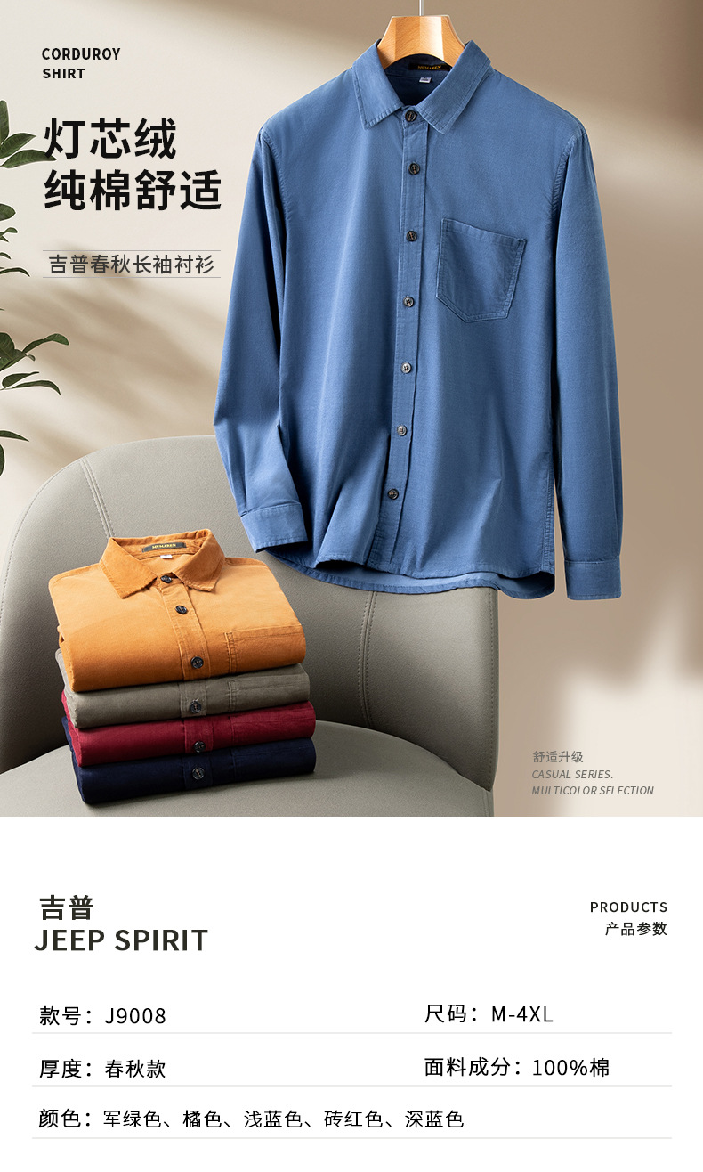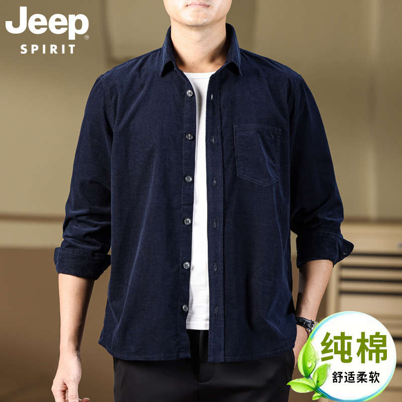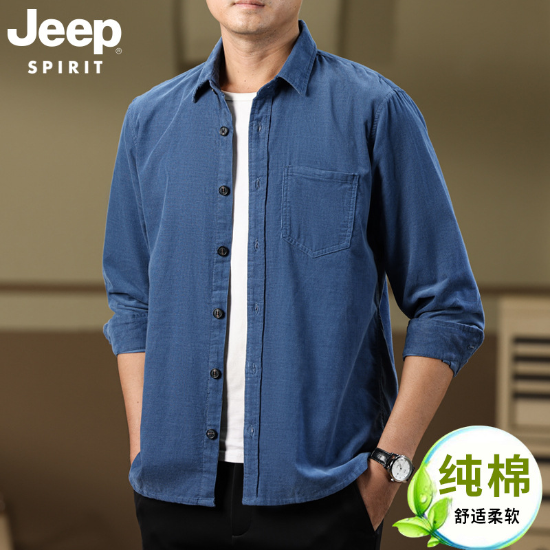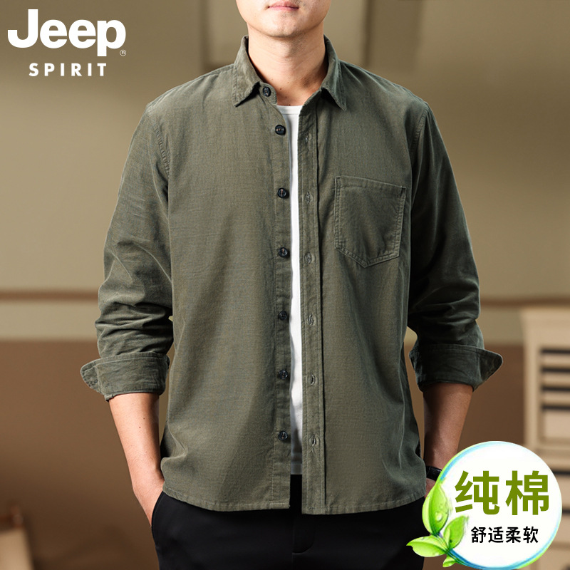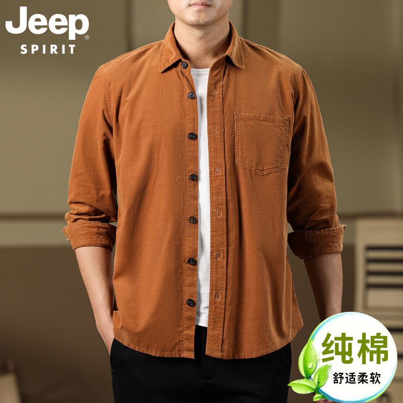 2024 뉴 코듀로이 셔츠 남성 가을과 겨울 긴 소매 느슨한 옷깃 아빠 코튼 작업복 재킷스토어 가기