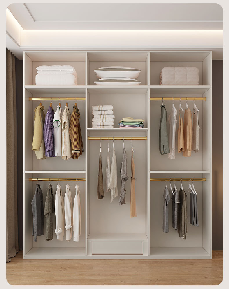 크림 스타일 옷장, 가정용 침실 맞춤형 수납장, 소형 아파트 옷장, 천장까지 닿는 원도어 럭셔리 옷장