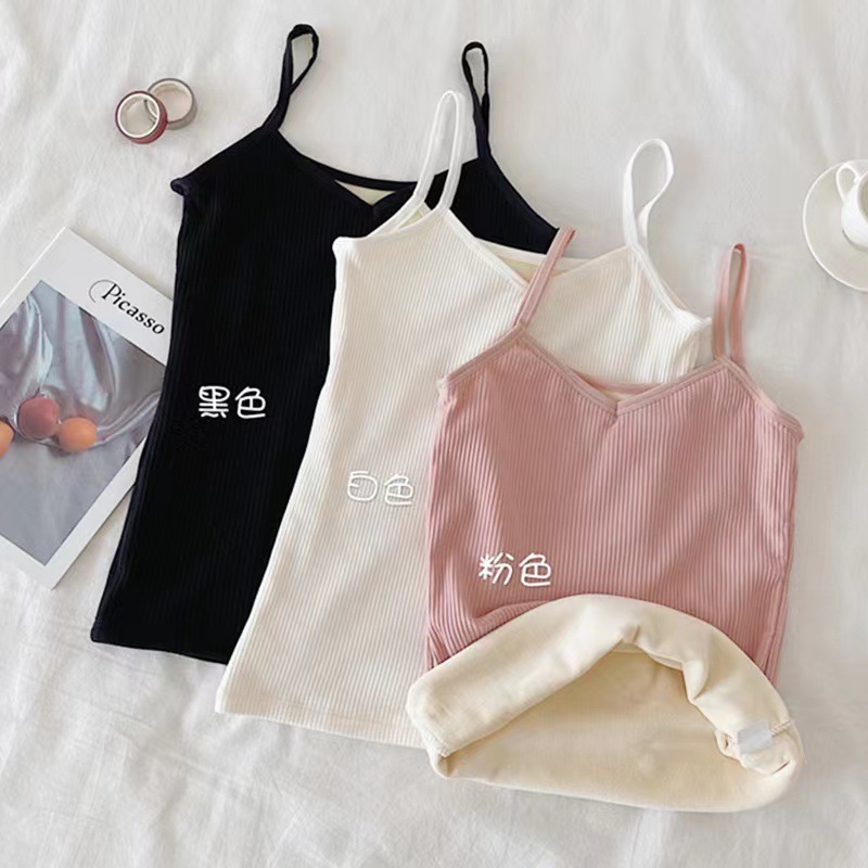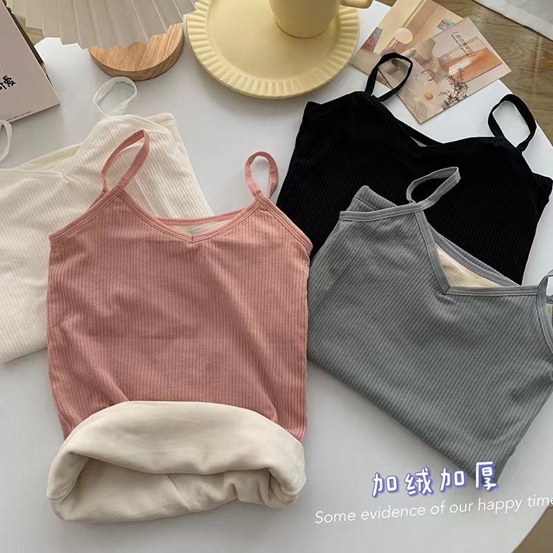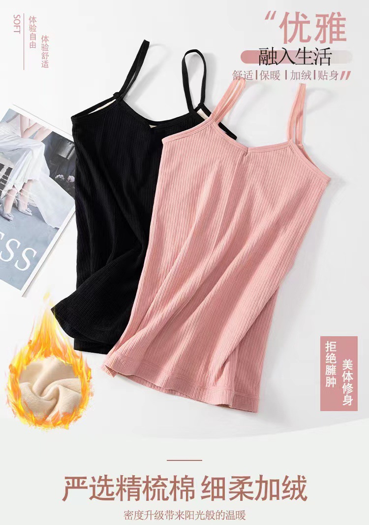 가을과 겨울 따뜻한 기모 캐미솔 두꺼운 슬림핏 베이스 셔츠 내부 난방 탑 방한 속옷 여성 조끼