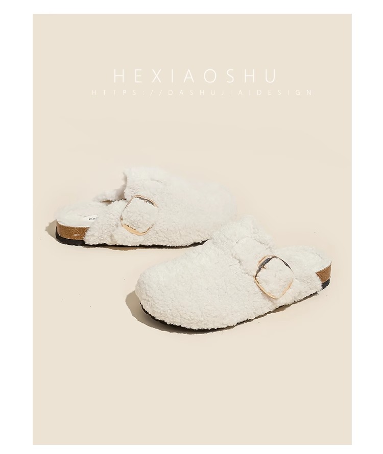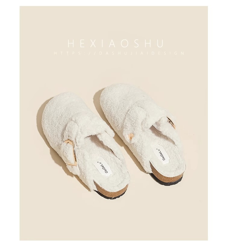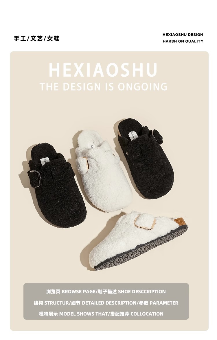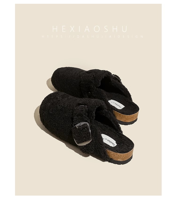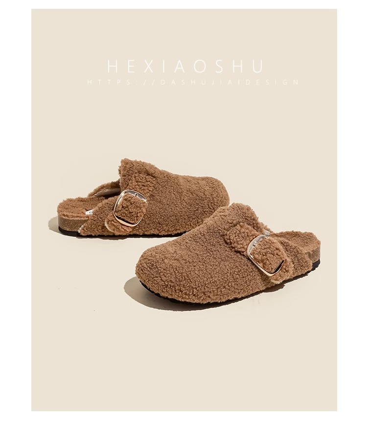여성용 양털 보켄 모피 신발, 여성용 바오터우 하프 슬리퍼, 2025 가을 겨울 신상 벨트 버클 면화스토어 가기