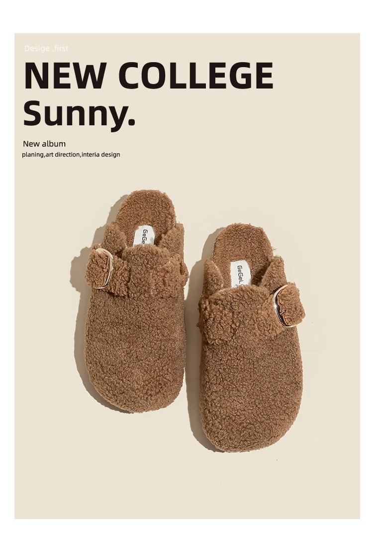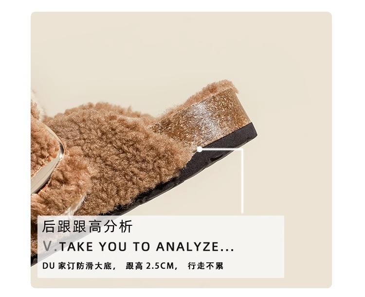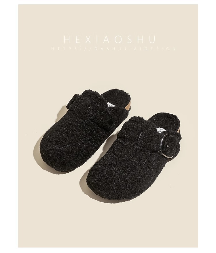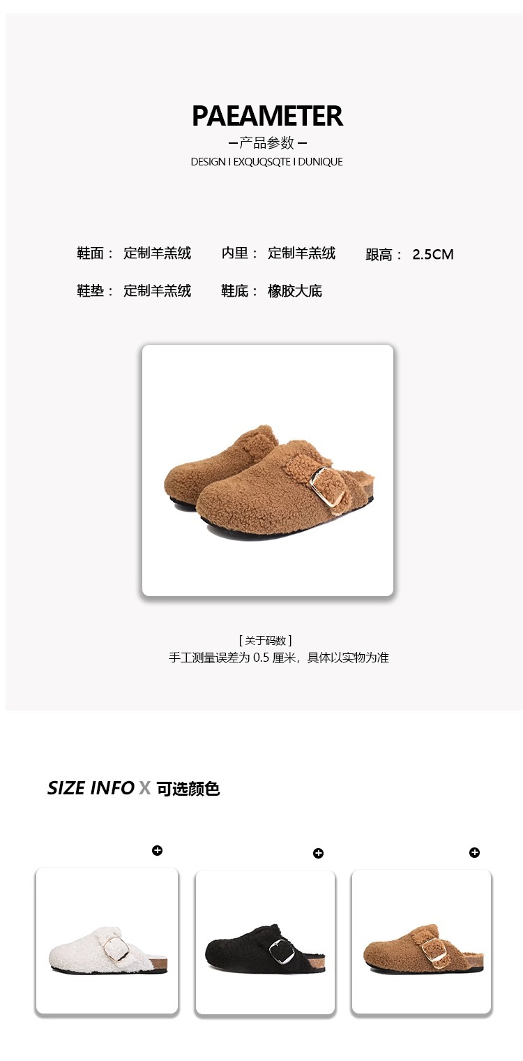 여성용 양털 보켄 모피 신발, 여성용 바오터우 하프 슬리퍼, 2025 가을 겨울 신상 벨트 버클 면화스토어 가기