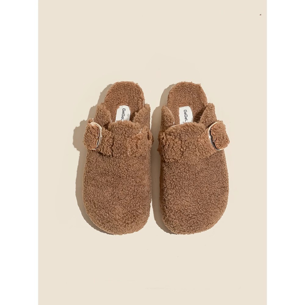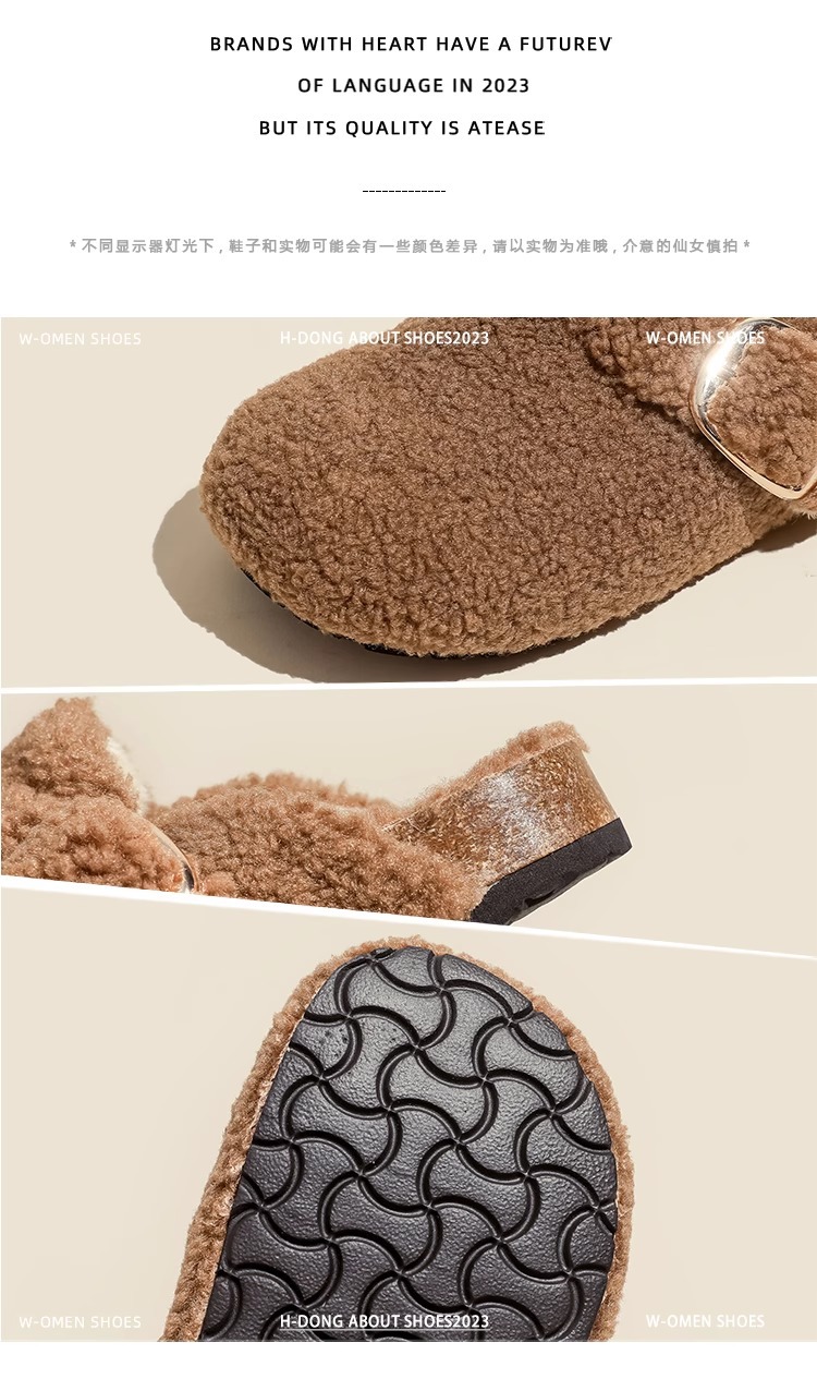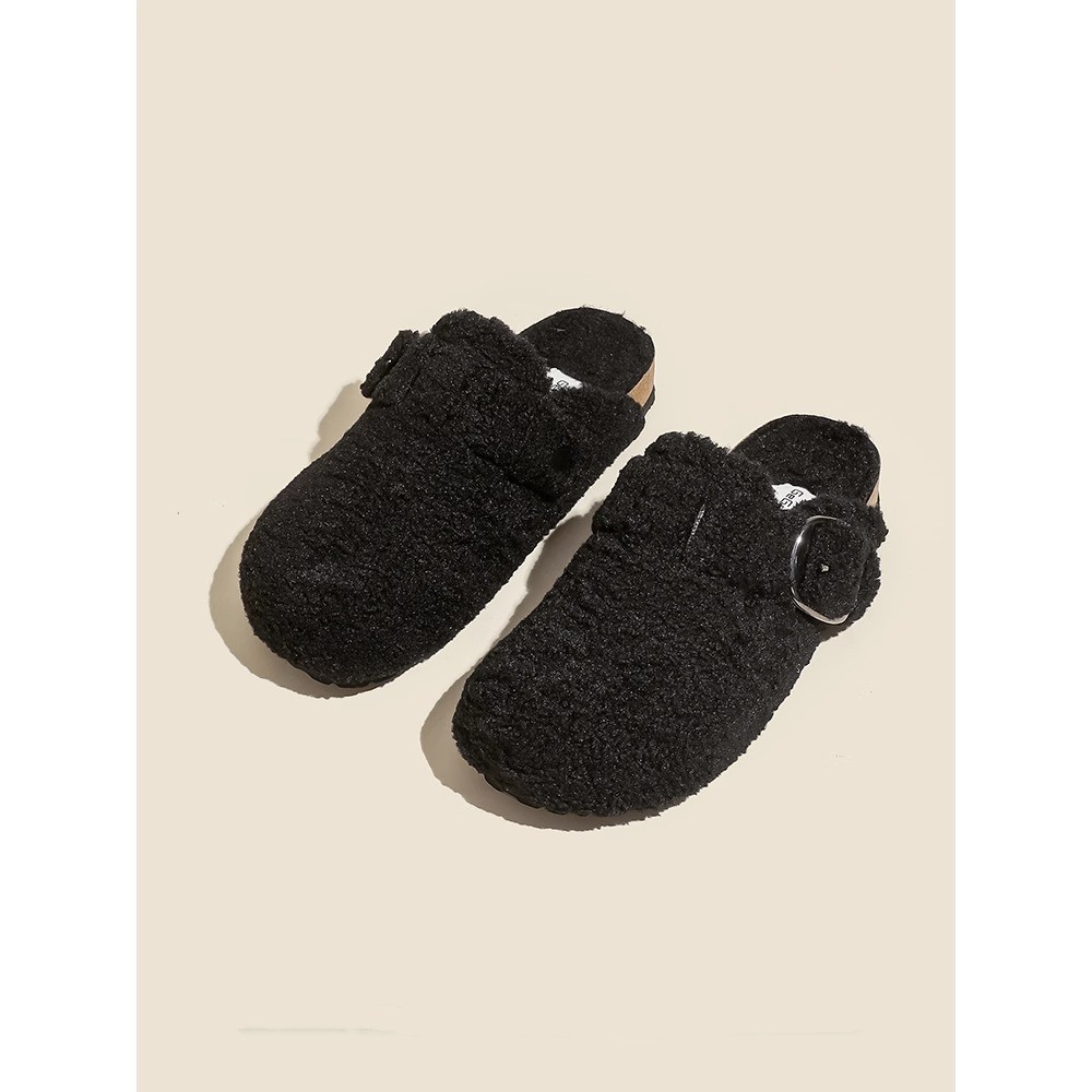 여성용 양털 보켄 모피 신발, 여성용 바오터우 하프 슬리퍼, 2025 가을 겨울 신상 벨트 버클 면화